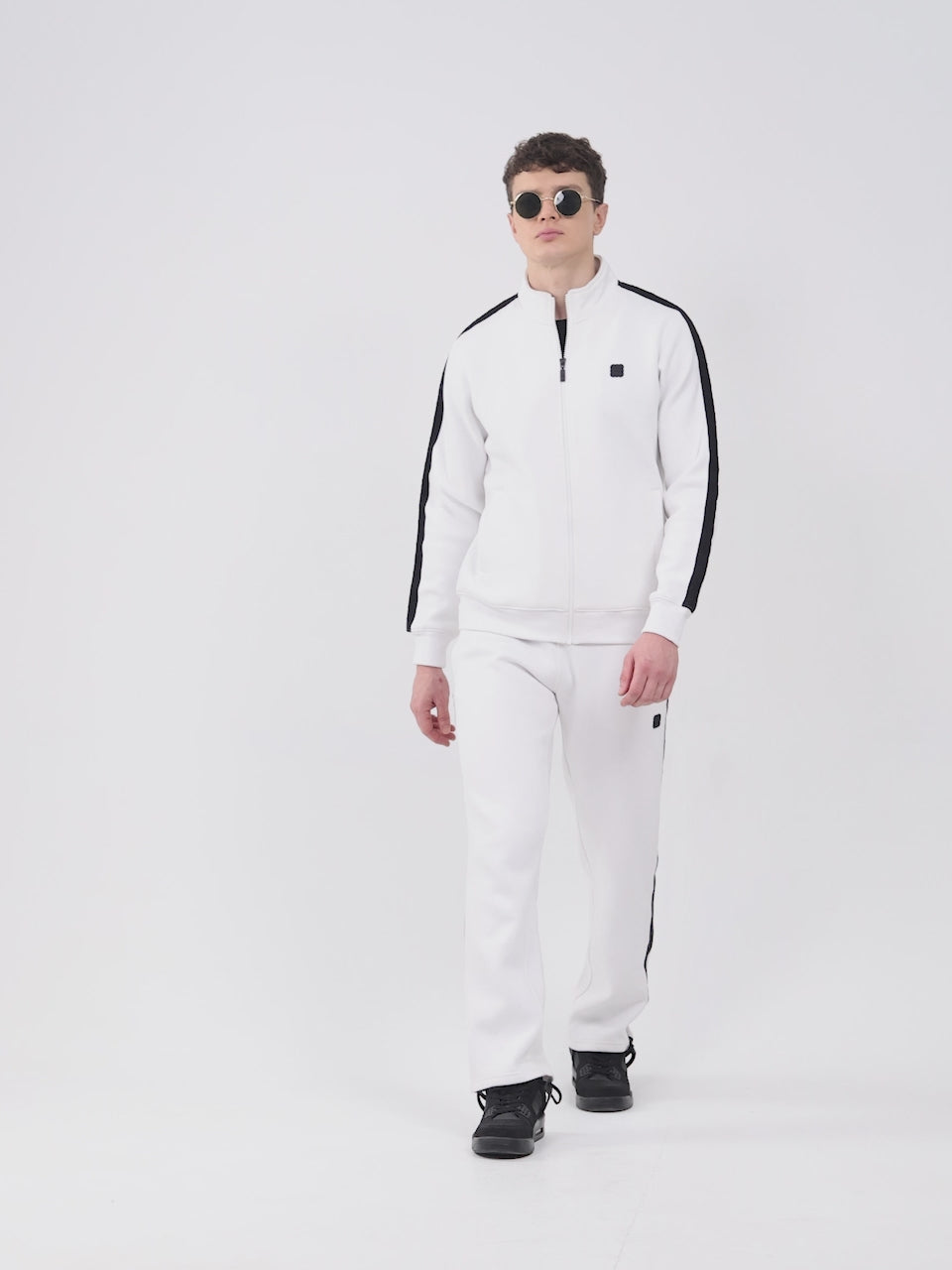 - Men White Solid Round Neck Full Sleeve Winter Tracksuit