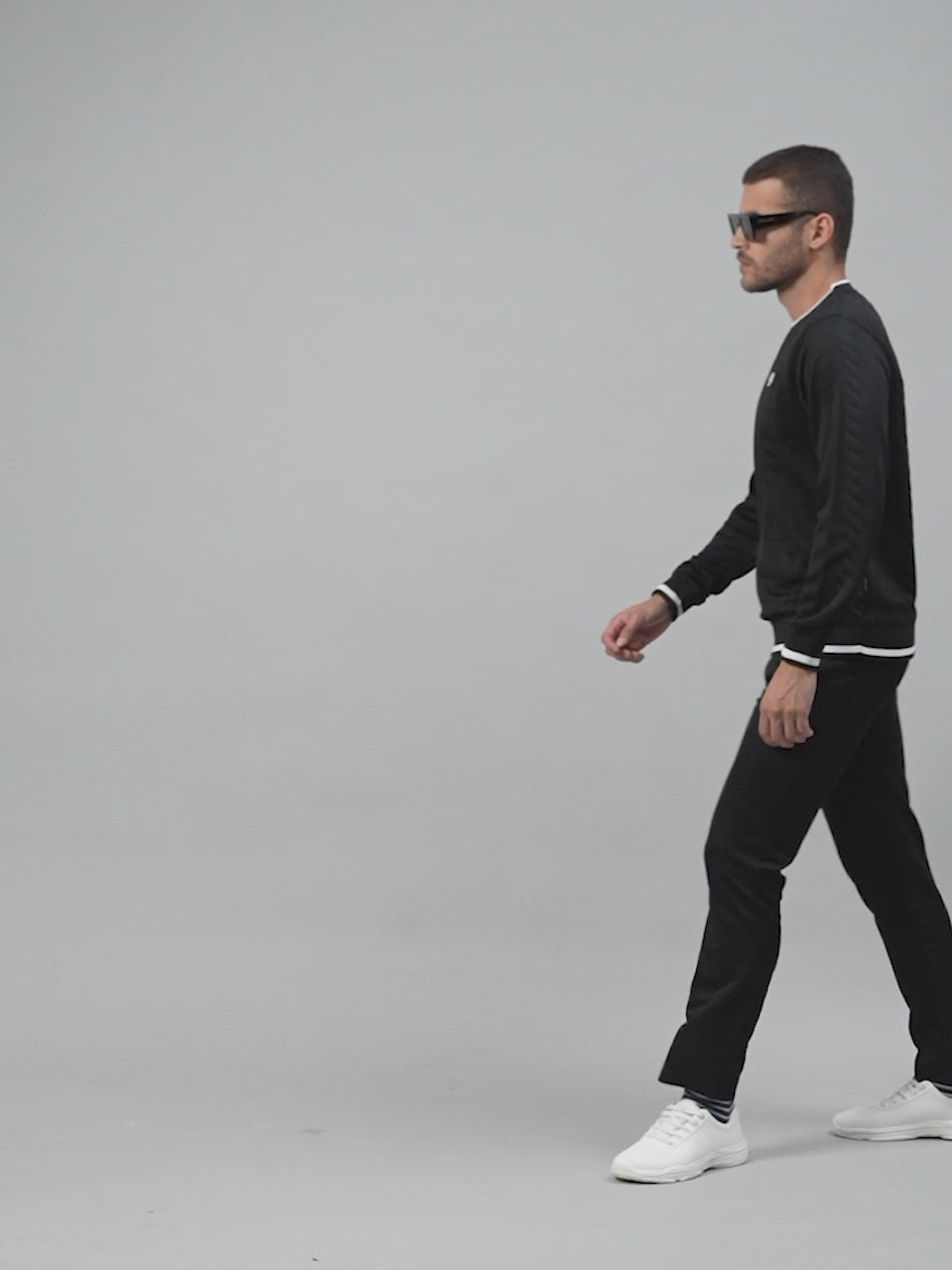 - Men Black Self Design Round Neck Sleeveless Winter Tracksuit