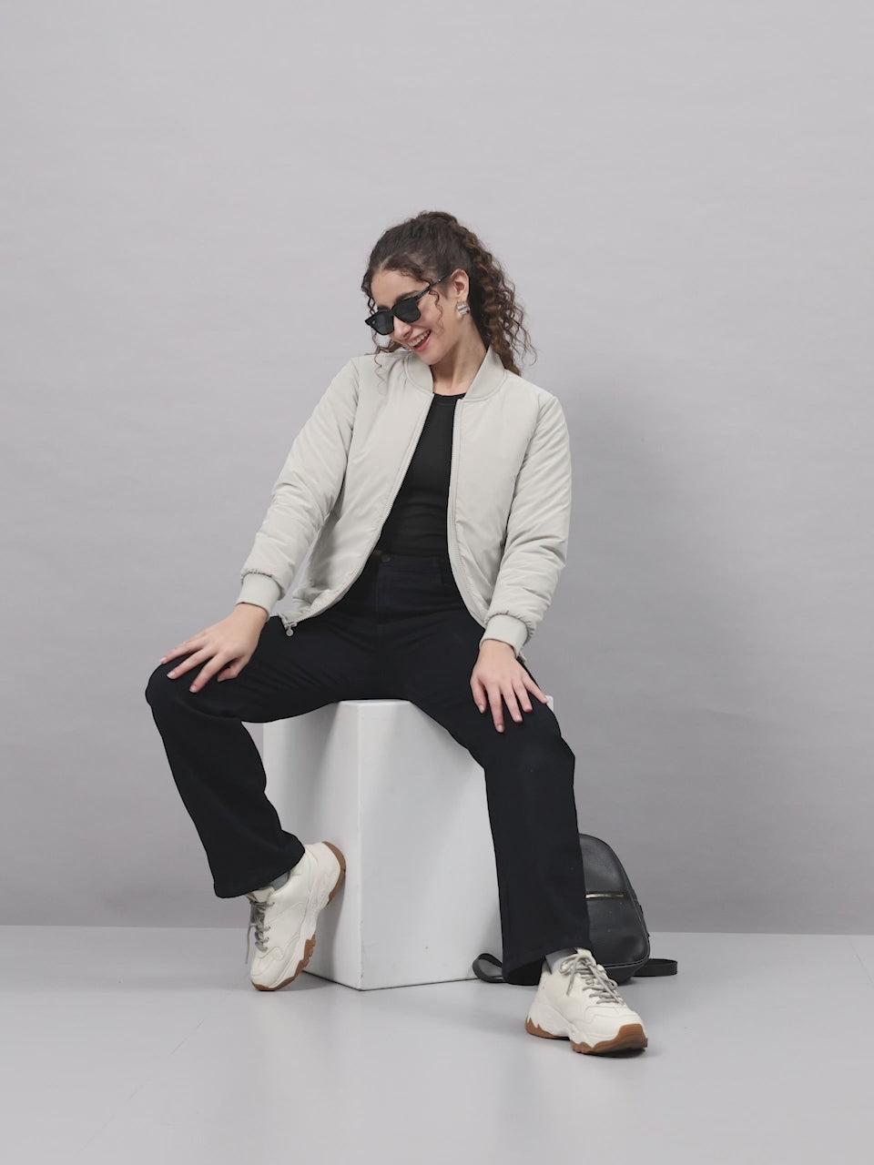 - Women Beige Solid Collar Full Sleeve Jacket