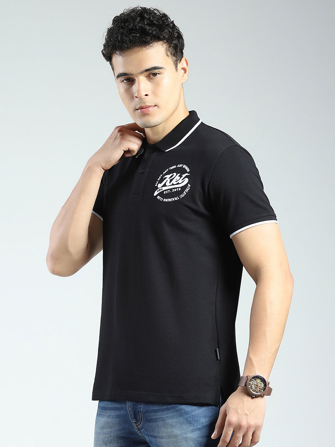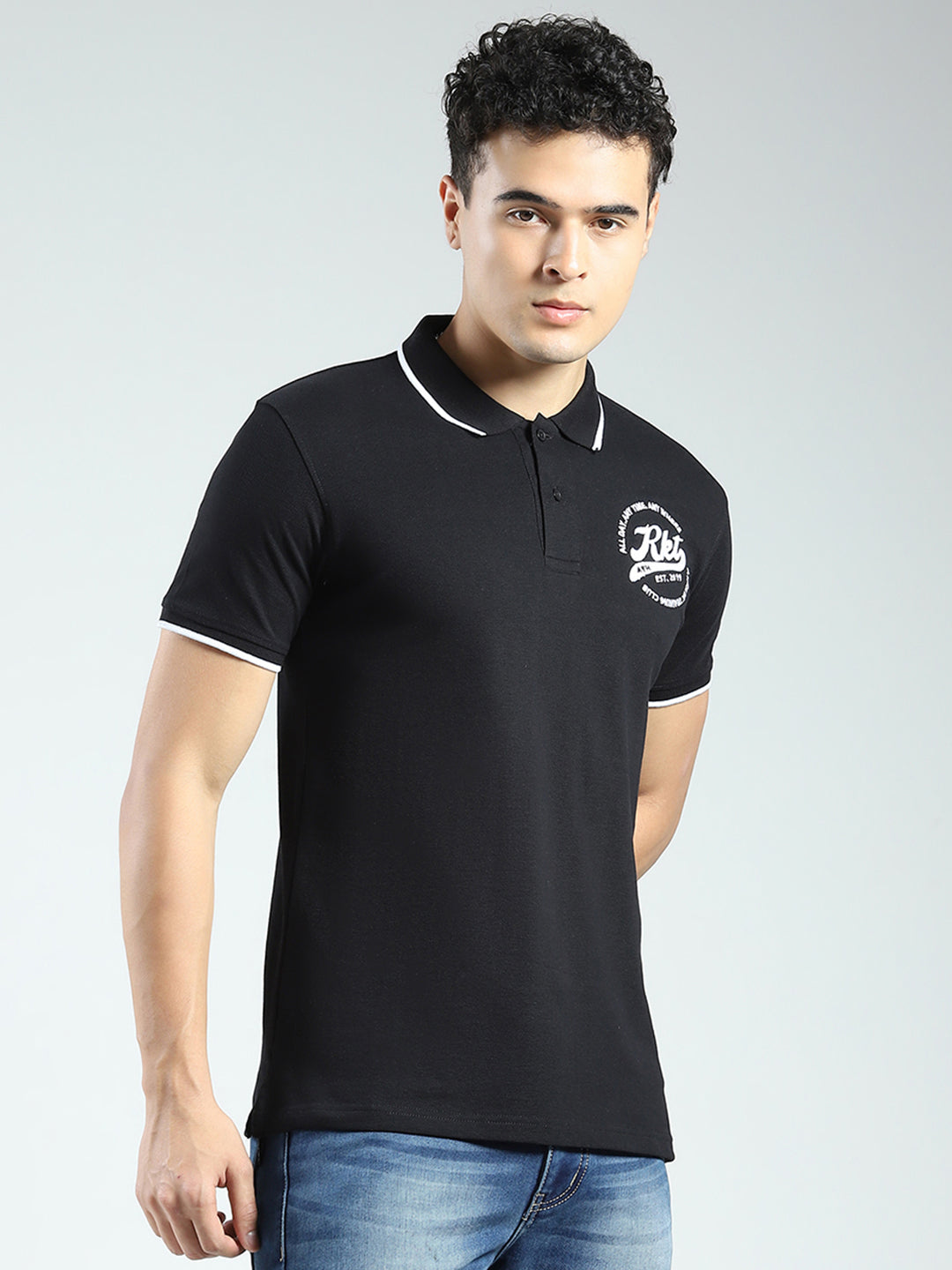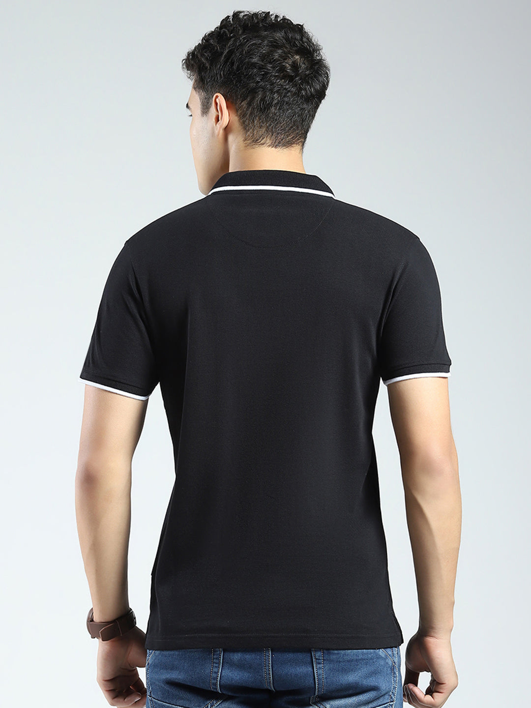 - Men Black Solid Collar Half Sleeve T-Shirt