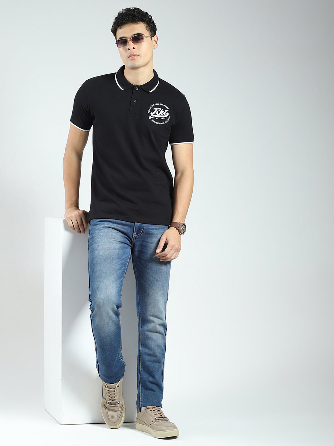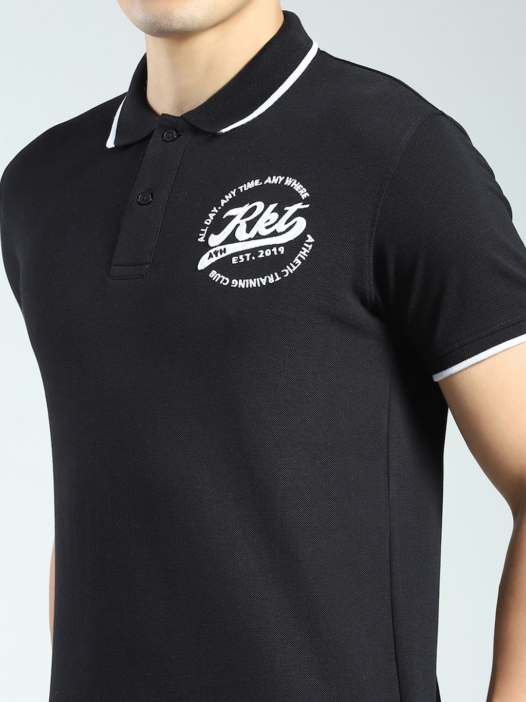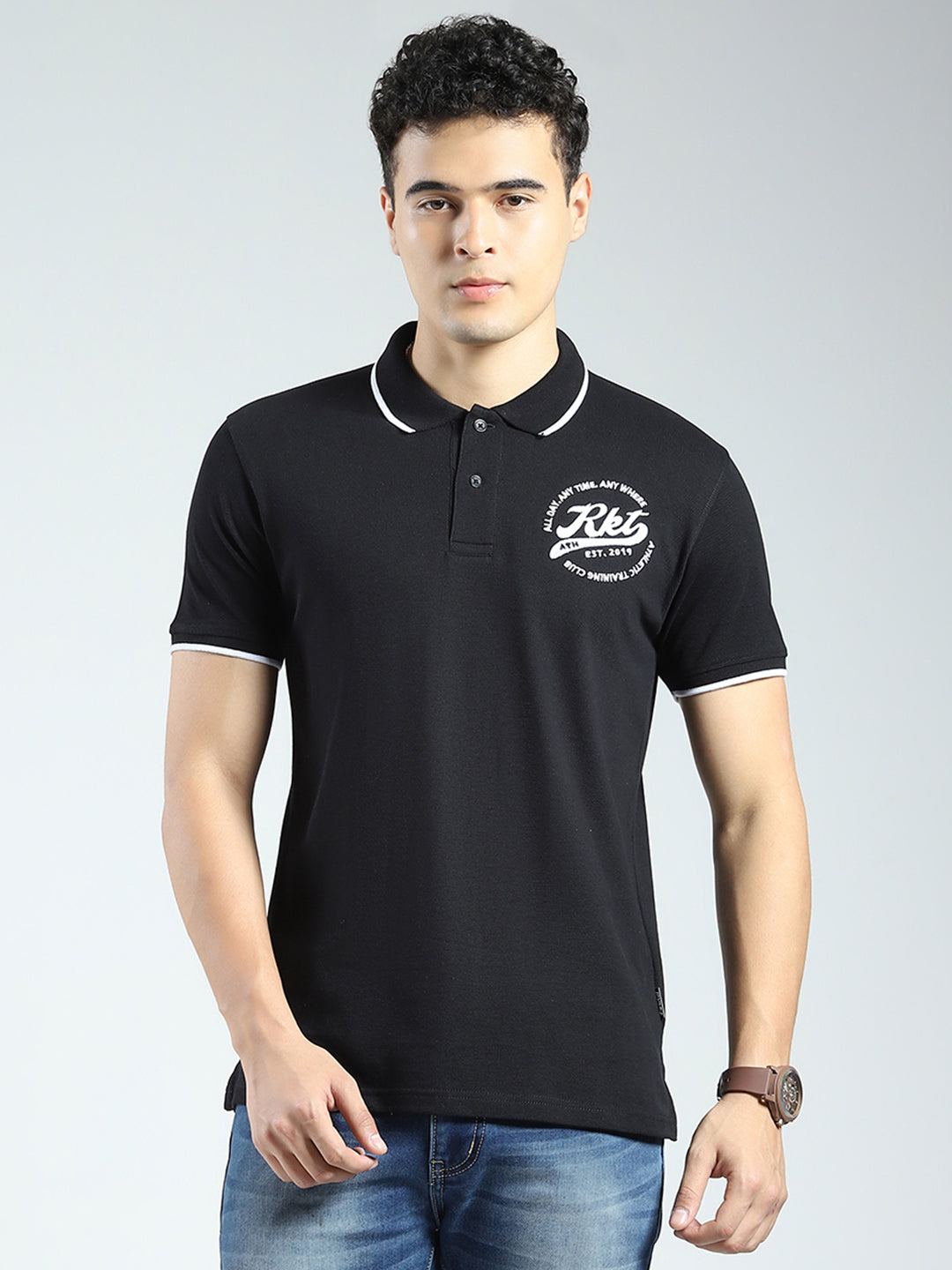 - Men Black Solid Collar Half Sleeve T-Shirt