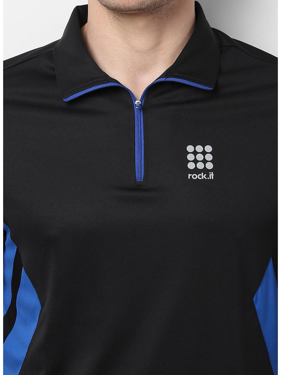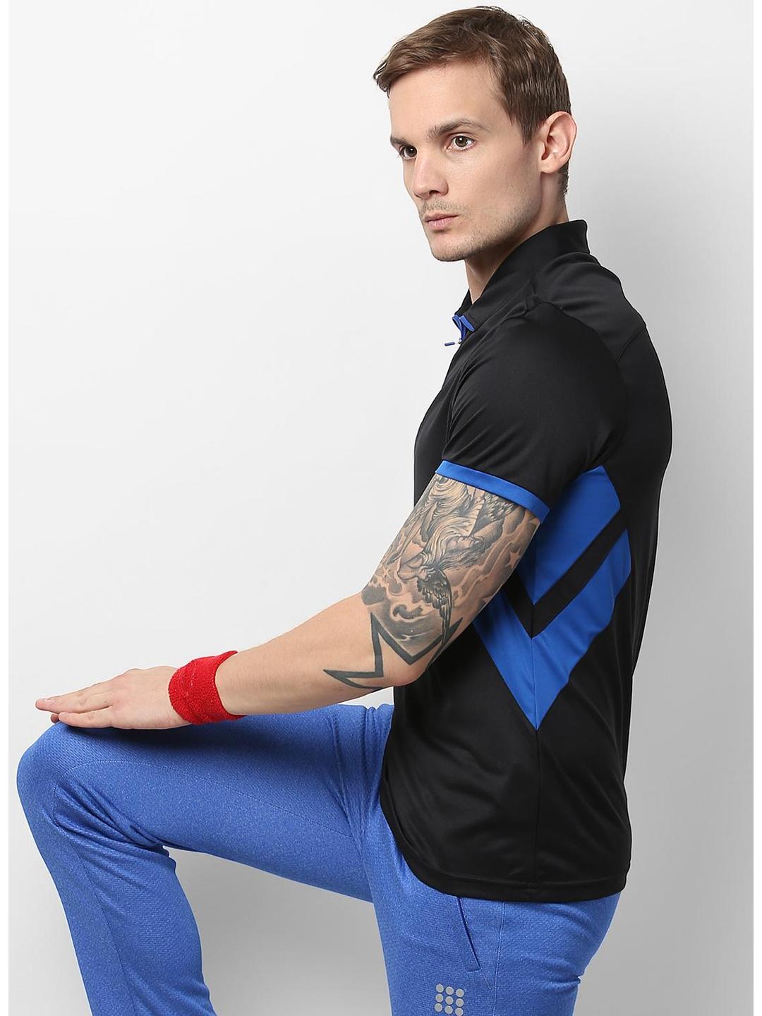 - Men Black Blue Collar Smart Fit T-Shirt