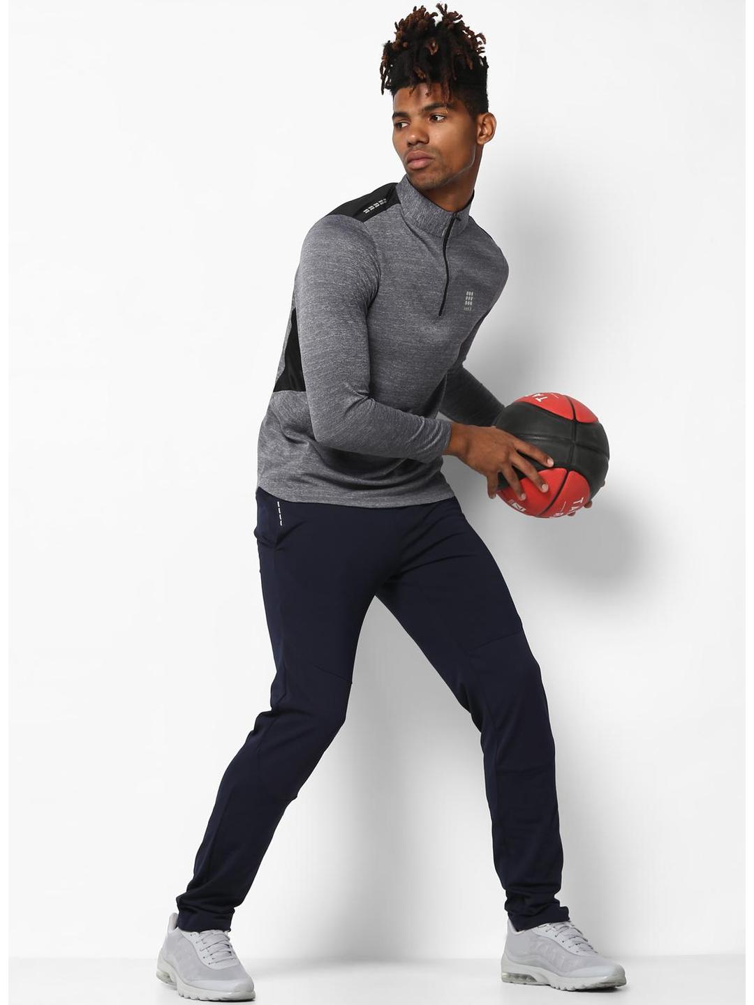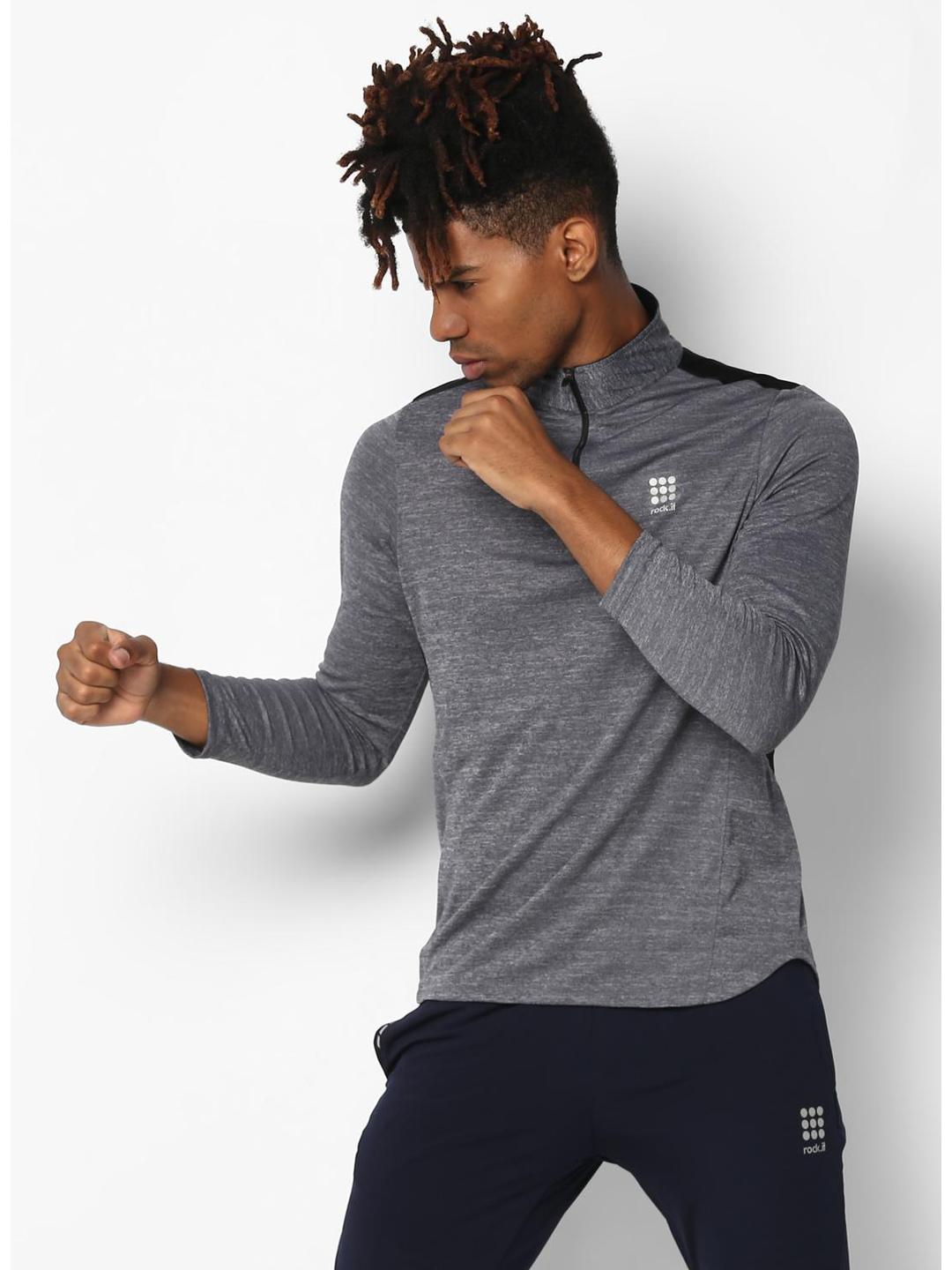 - Men Grey Black Collar Smart Fit T-Shirt