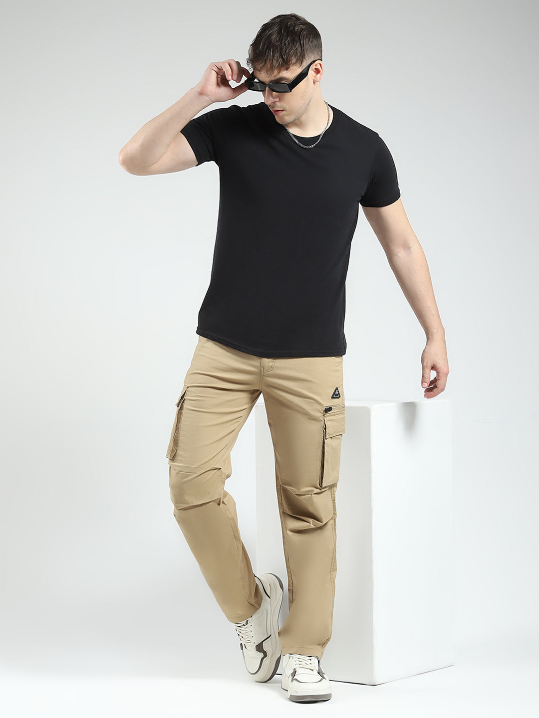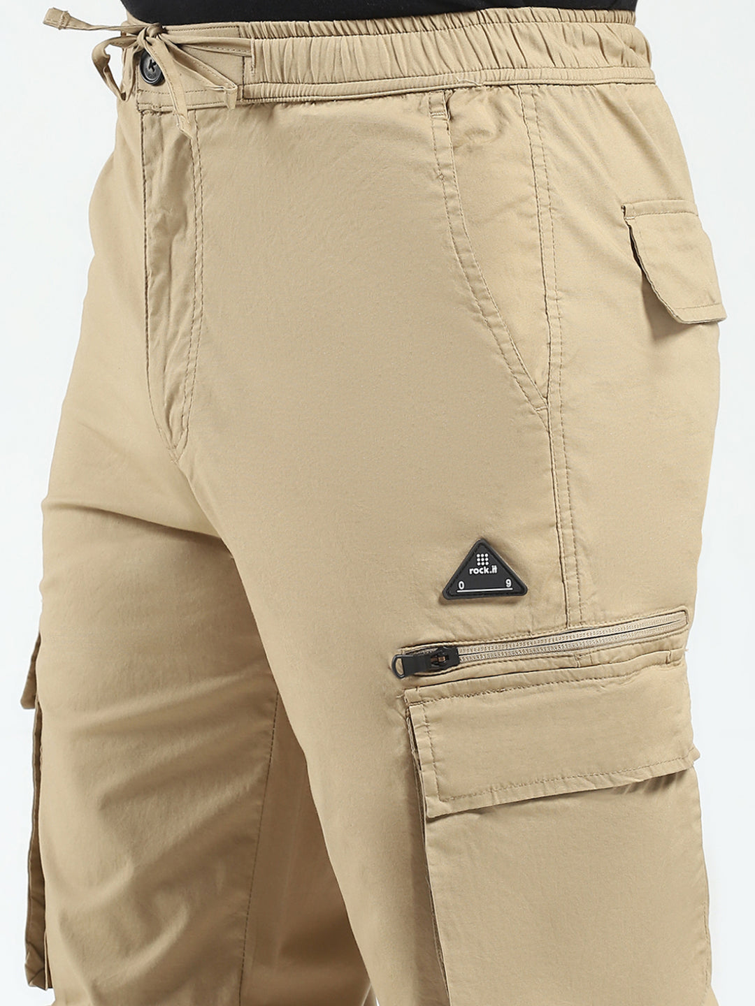 Men Khaki Solid Regular Fit Cargo