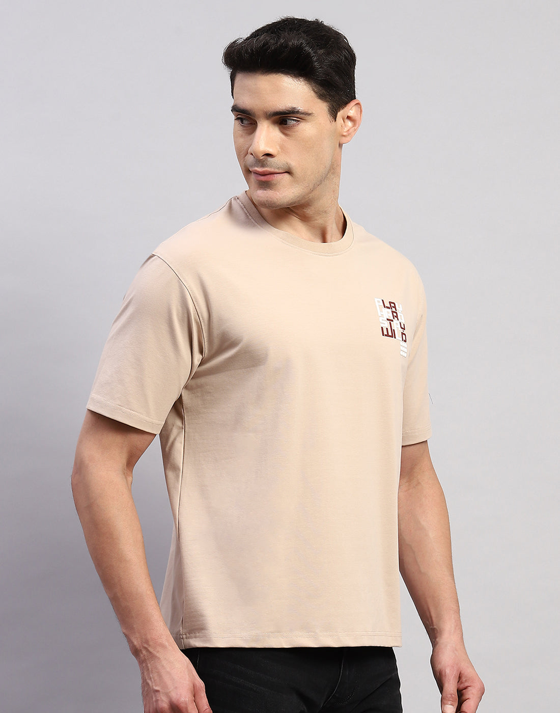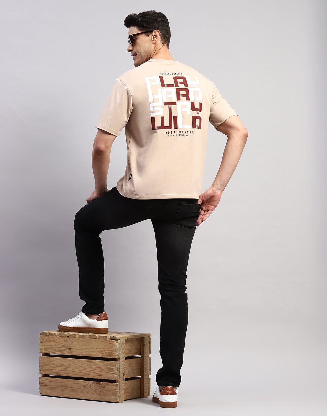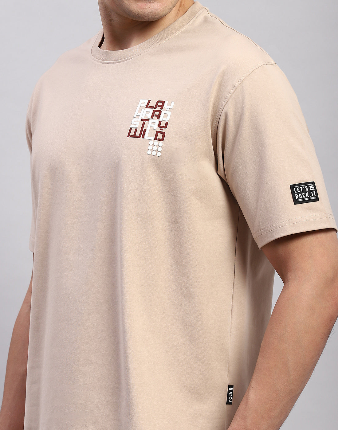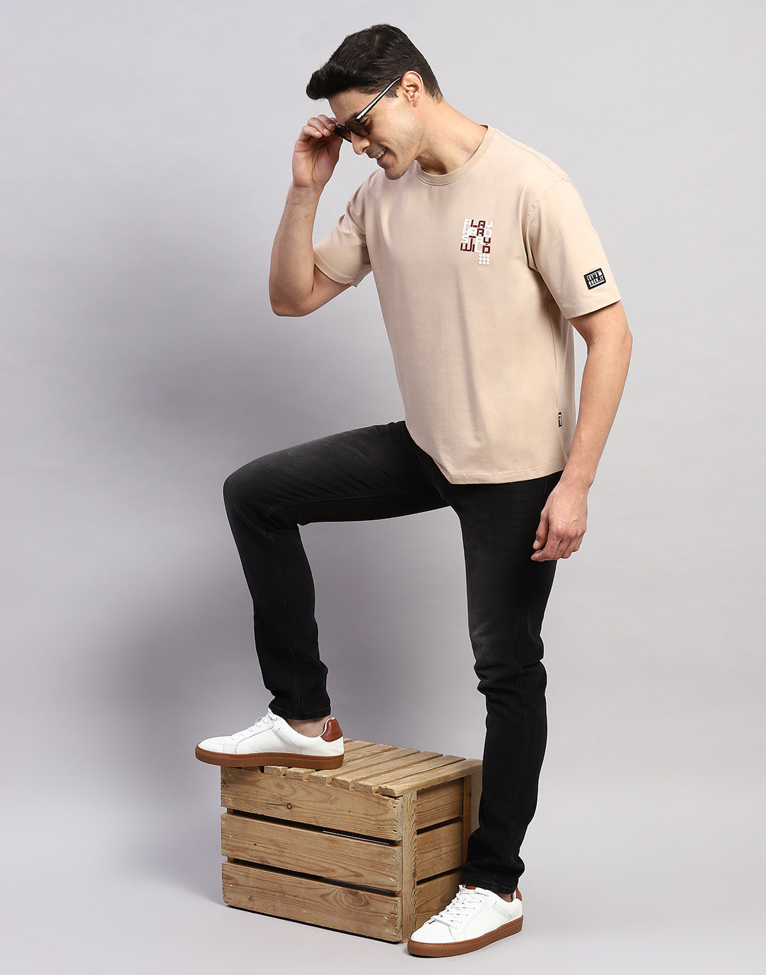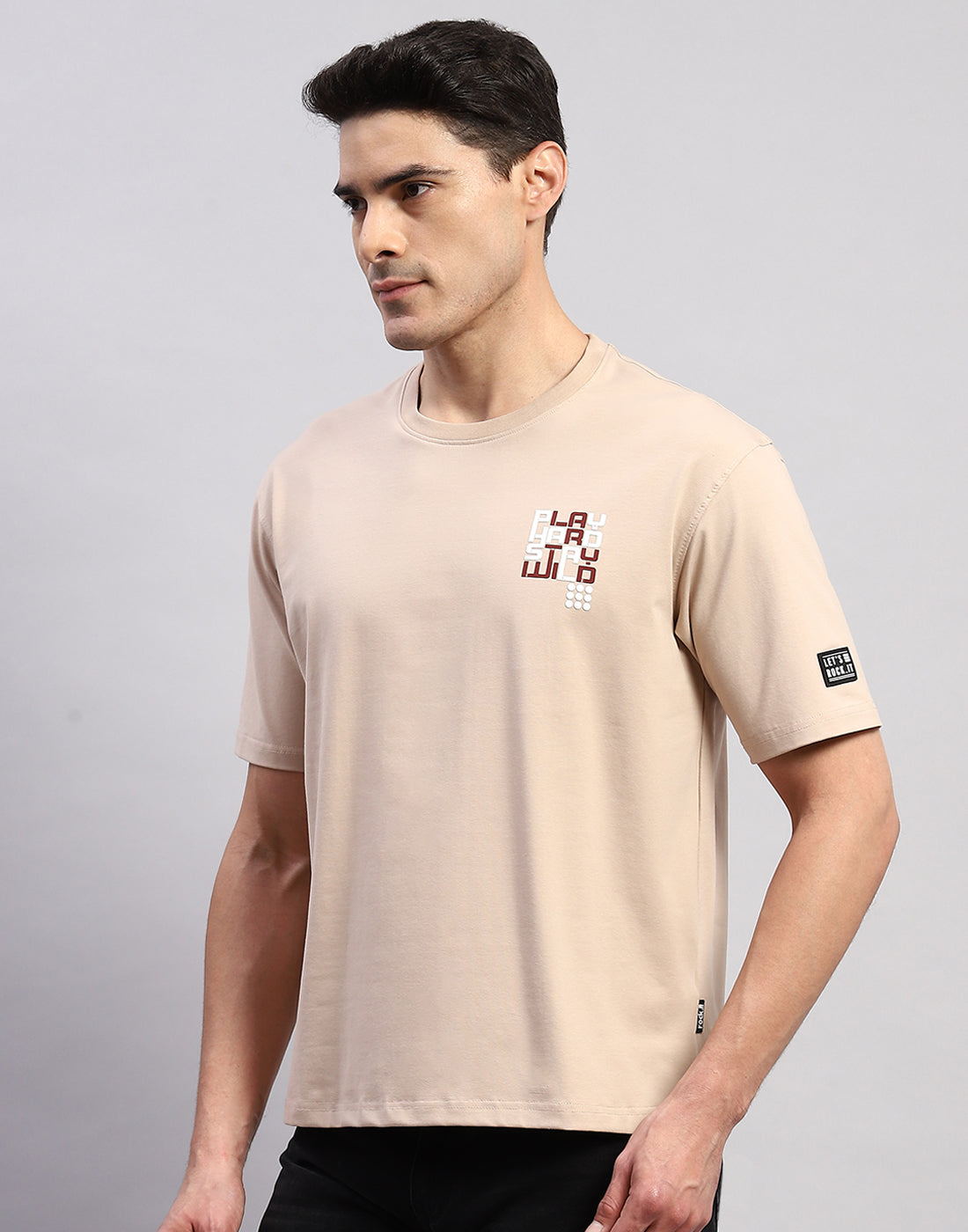 Men Beige Printed Round Neck Half Sleeve T-Shirt