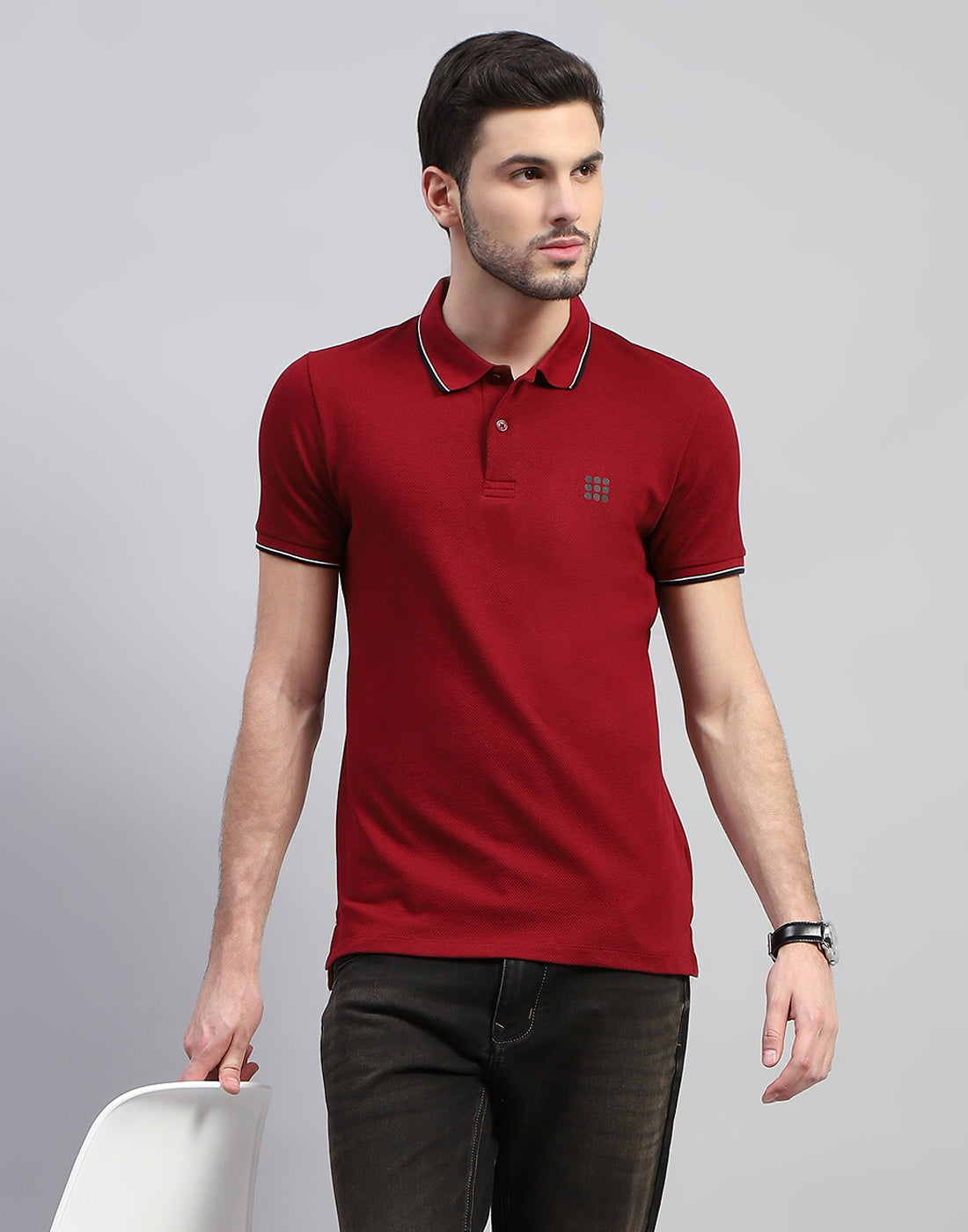- Men Maroon Solid Polo Collar Half Sleeve T-Shirt
