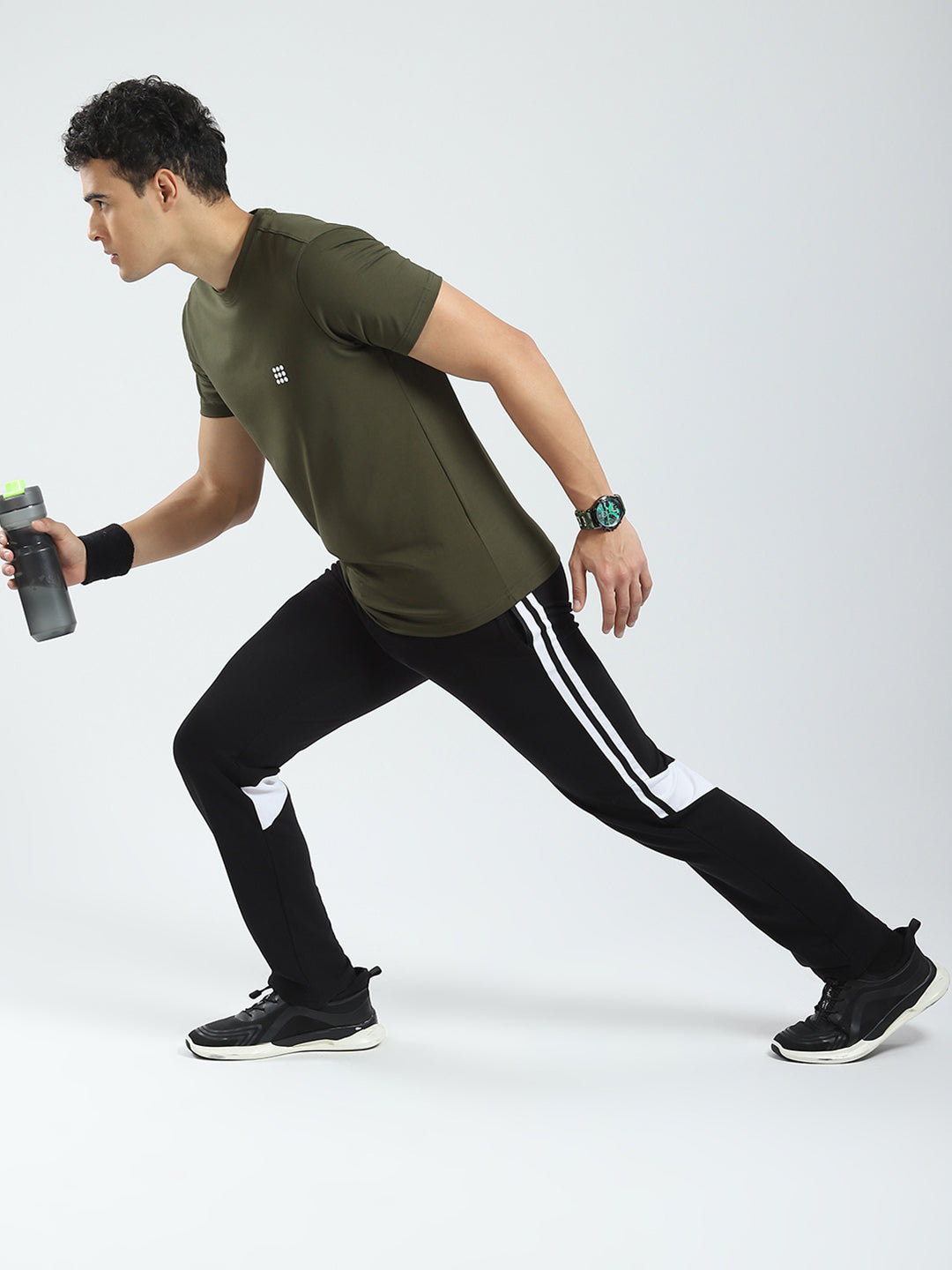 - Men Olive Solid Round Neck Half Sleeve T-Shirt