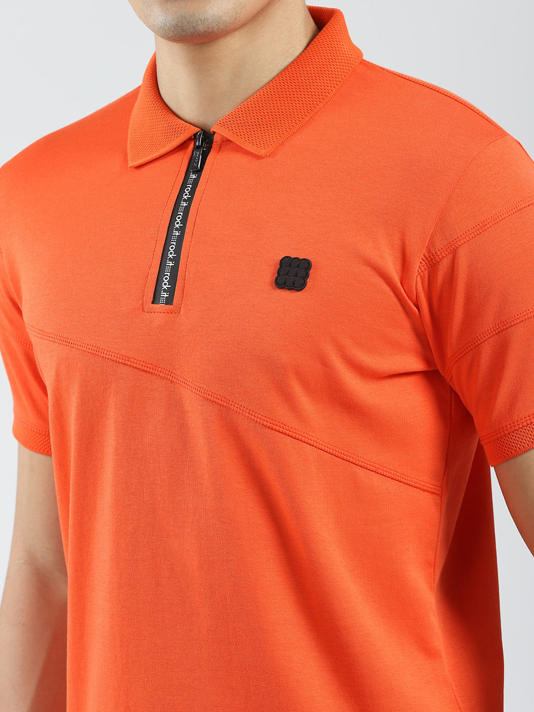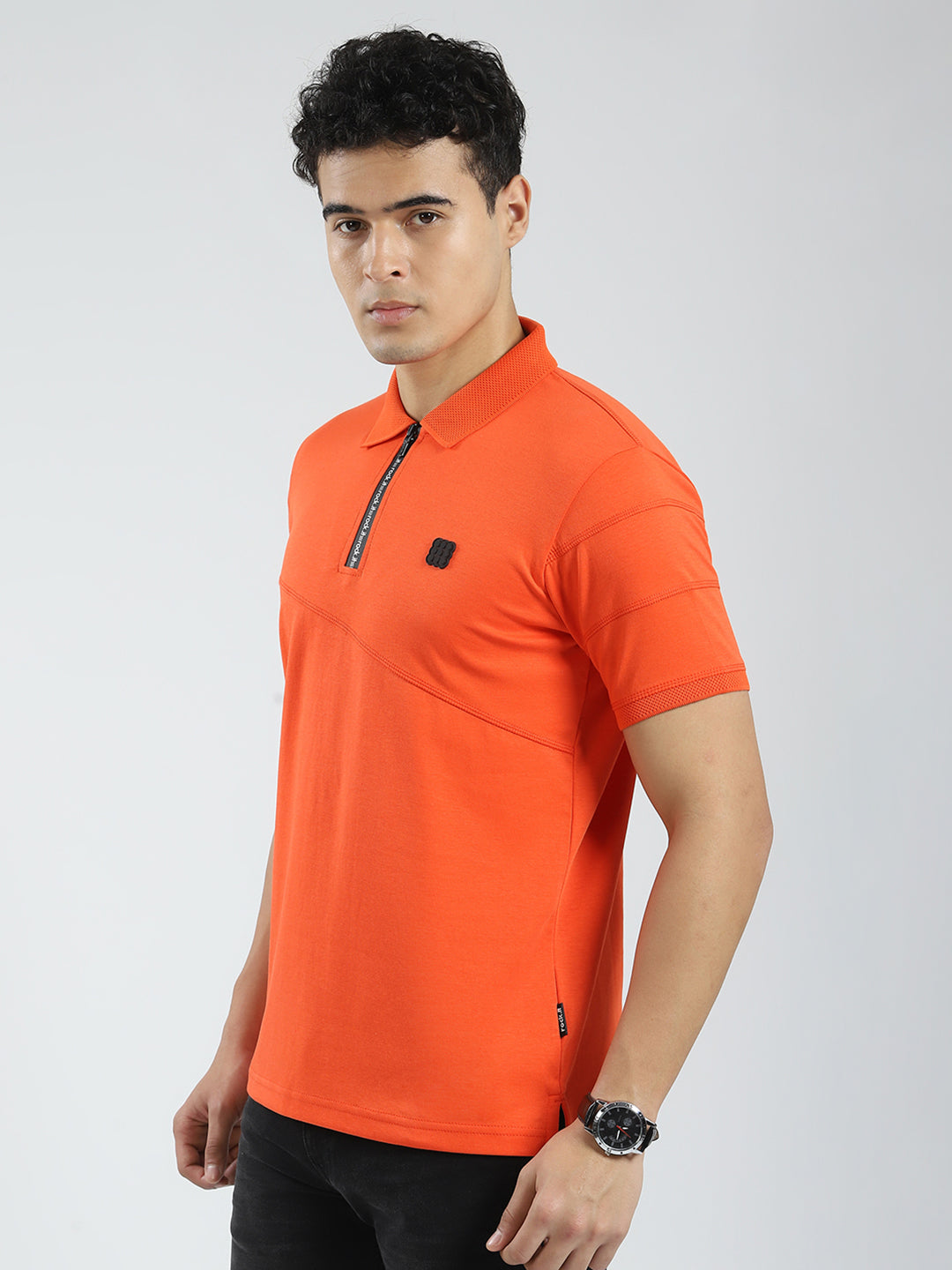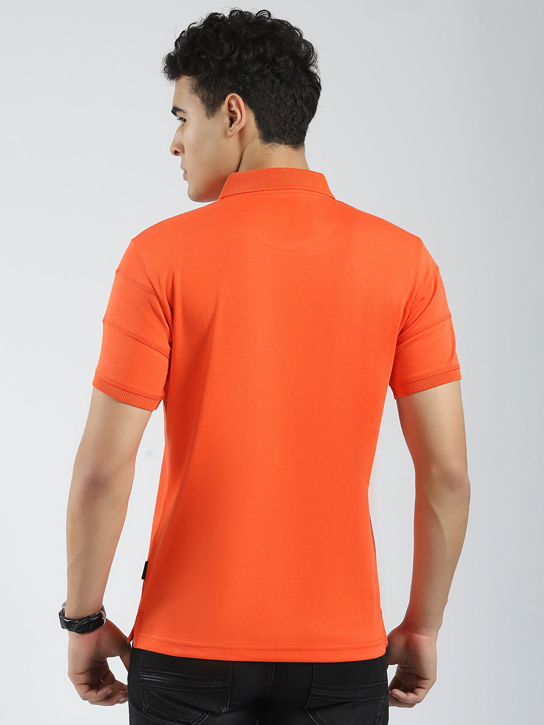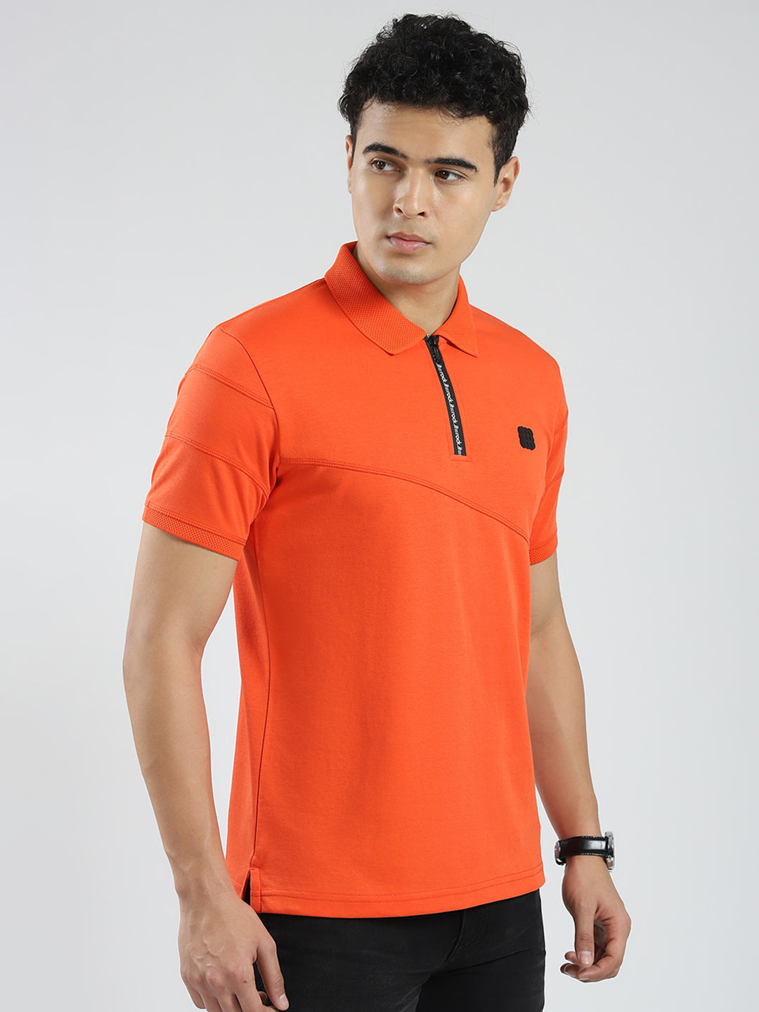 - Men Orange Solid Collar Half Sleeve T-Shirt