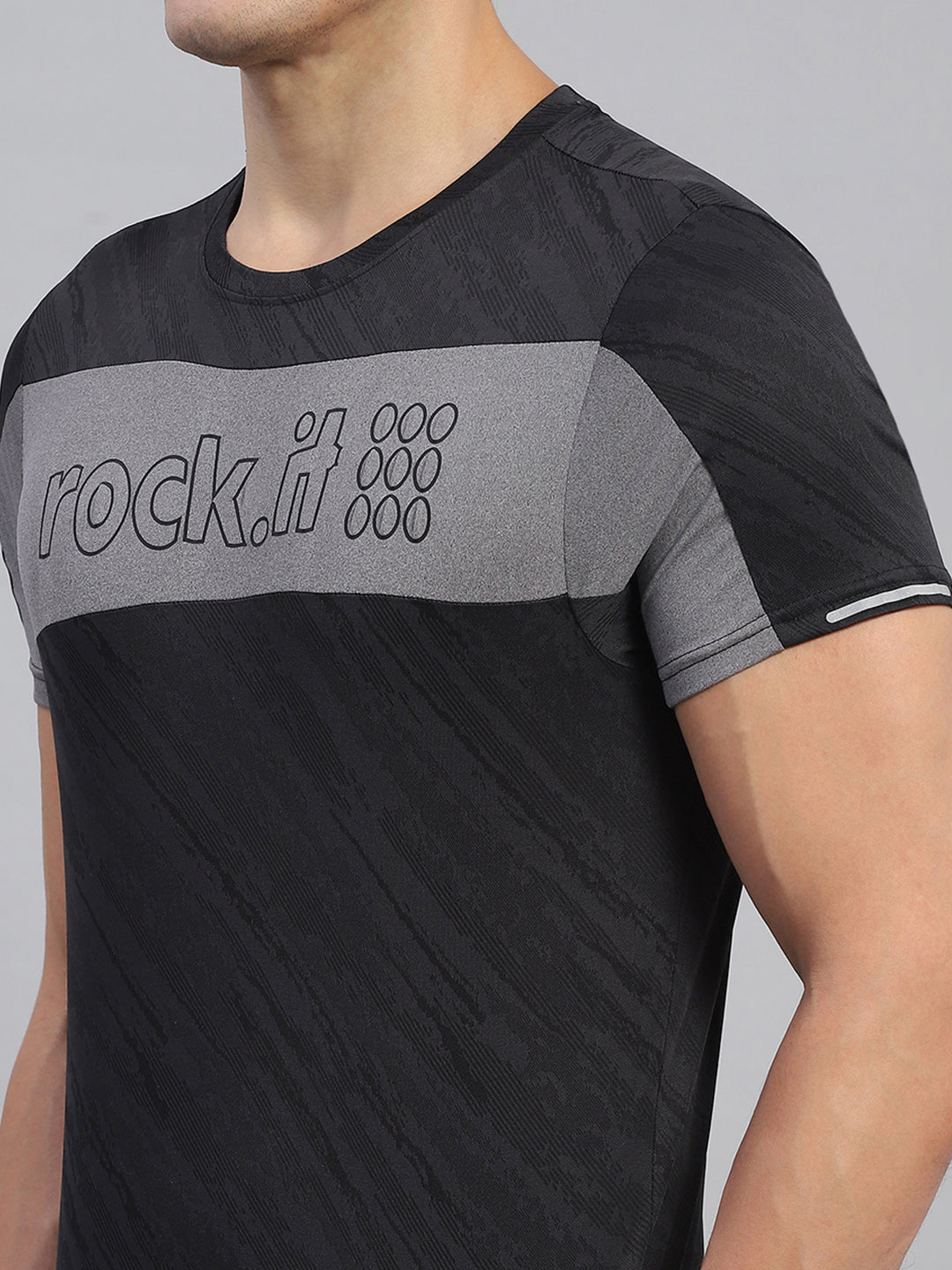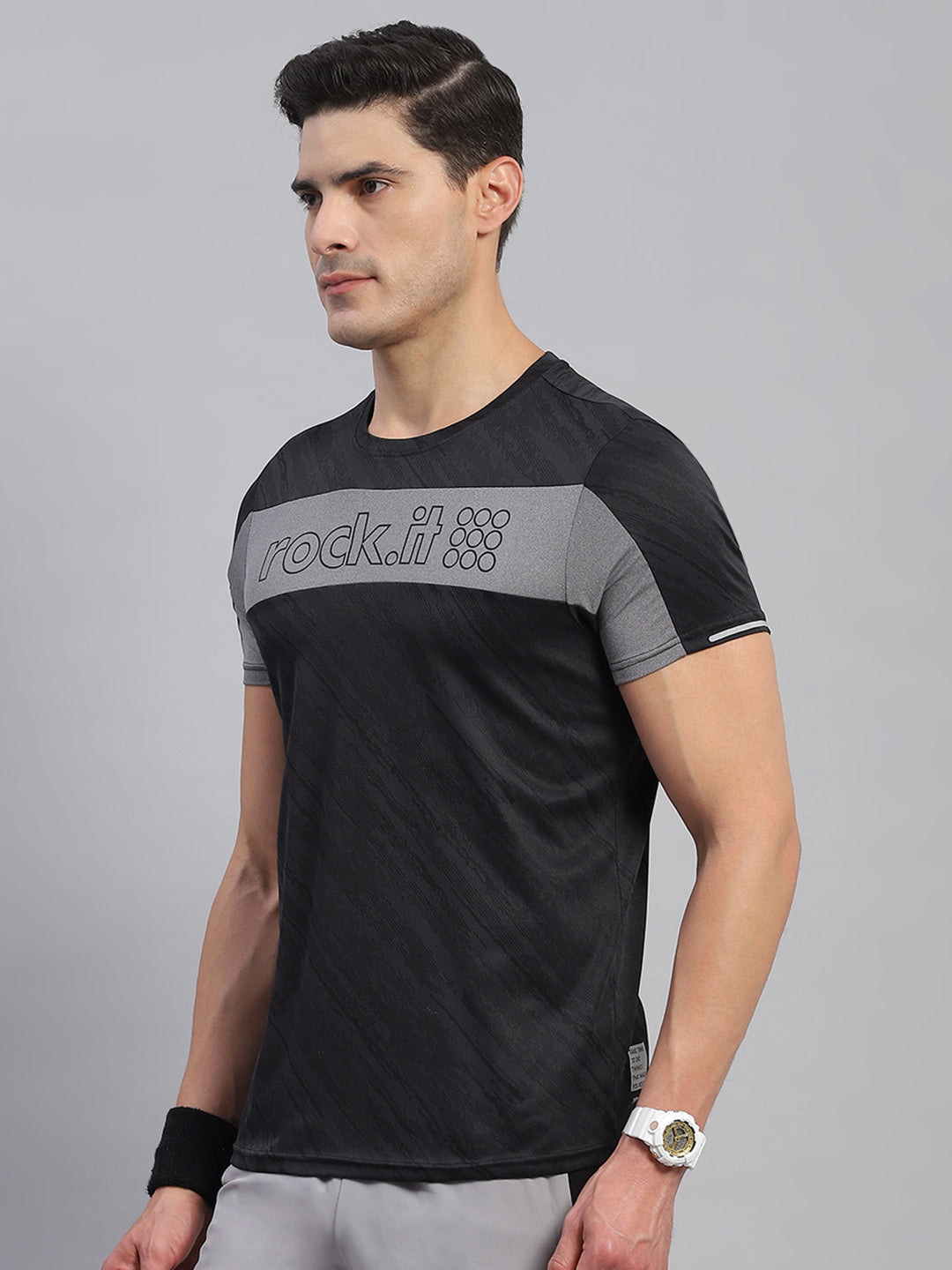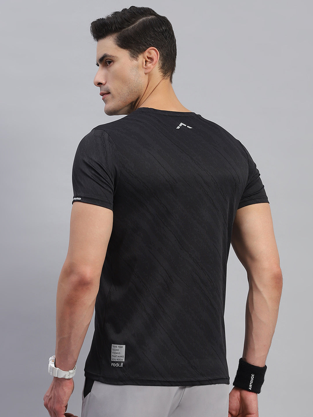- Men Black Self Design Round Neck Half Sleeve T-Shirt