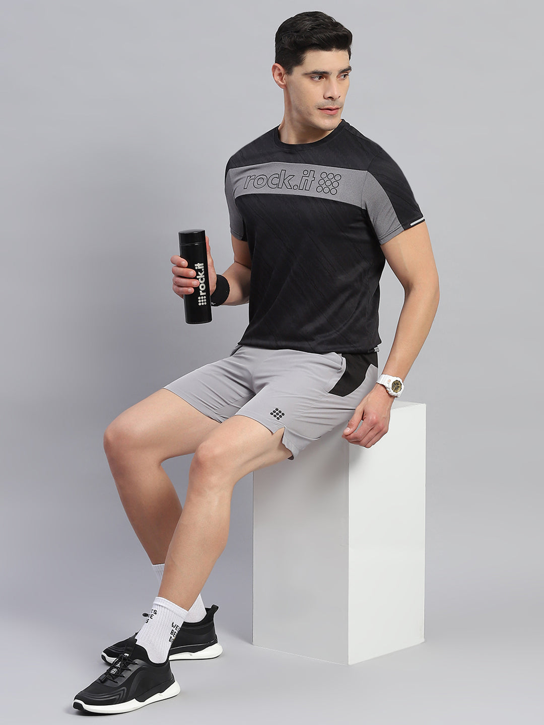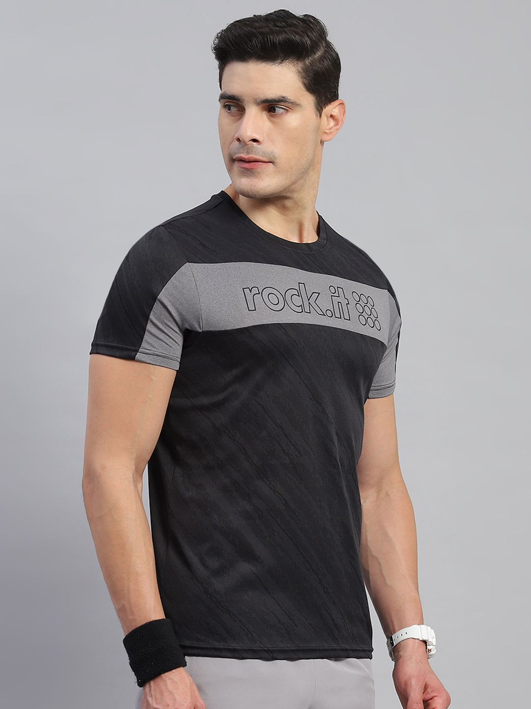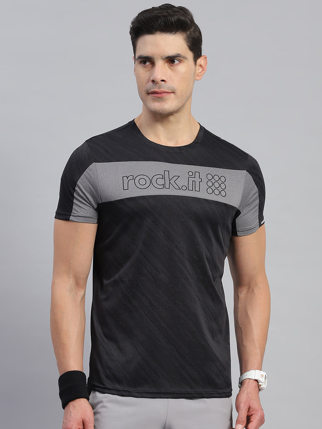 - Men Black Self Design Round Neck Half Sleeve T-Shirt
