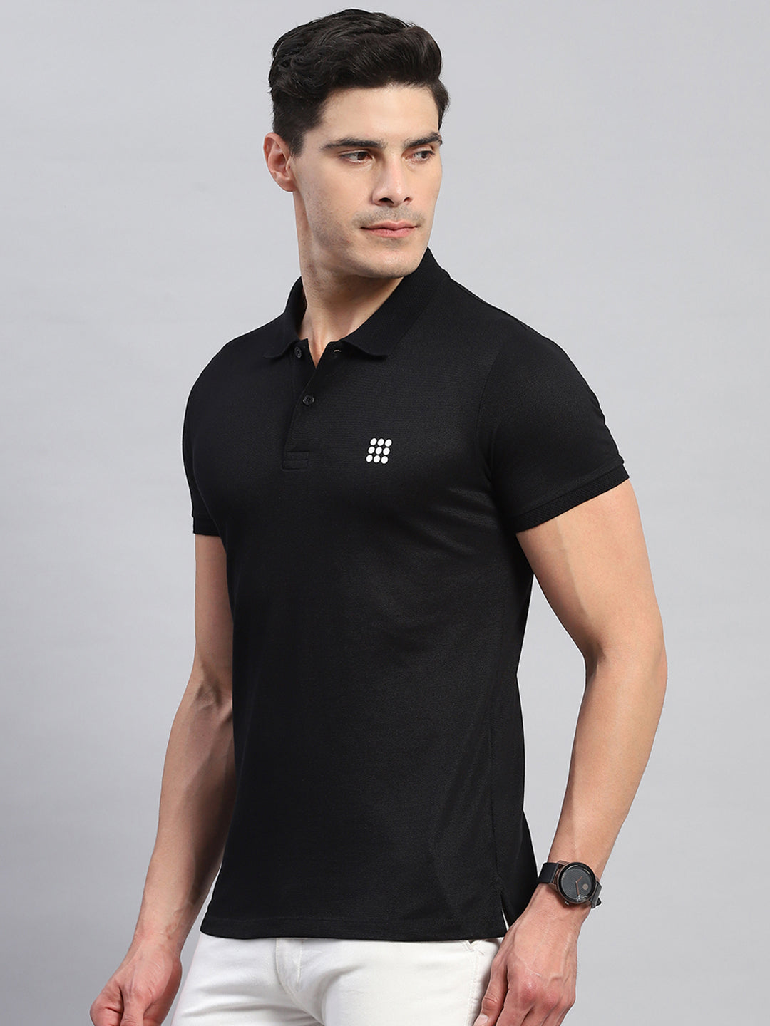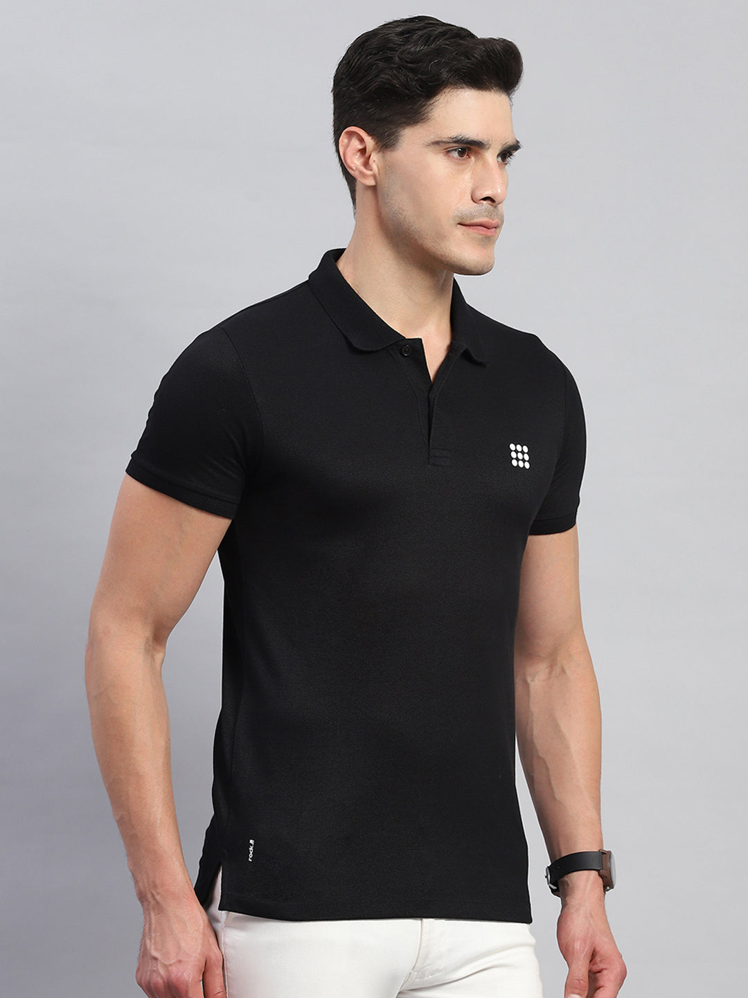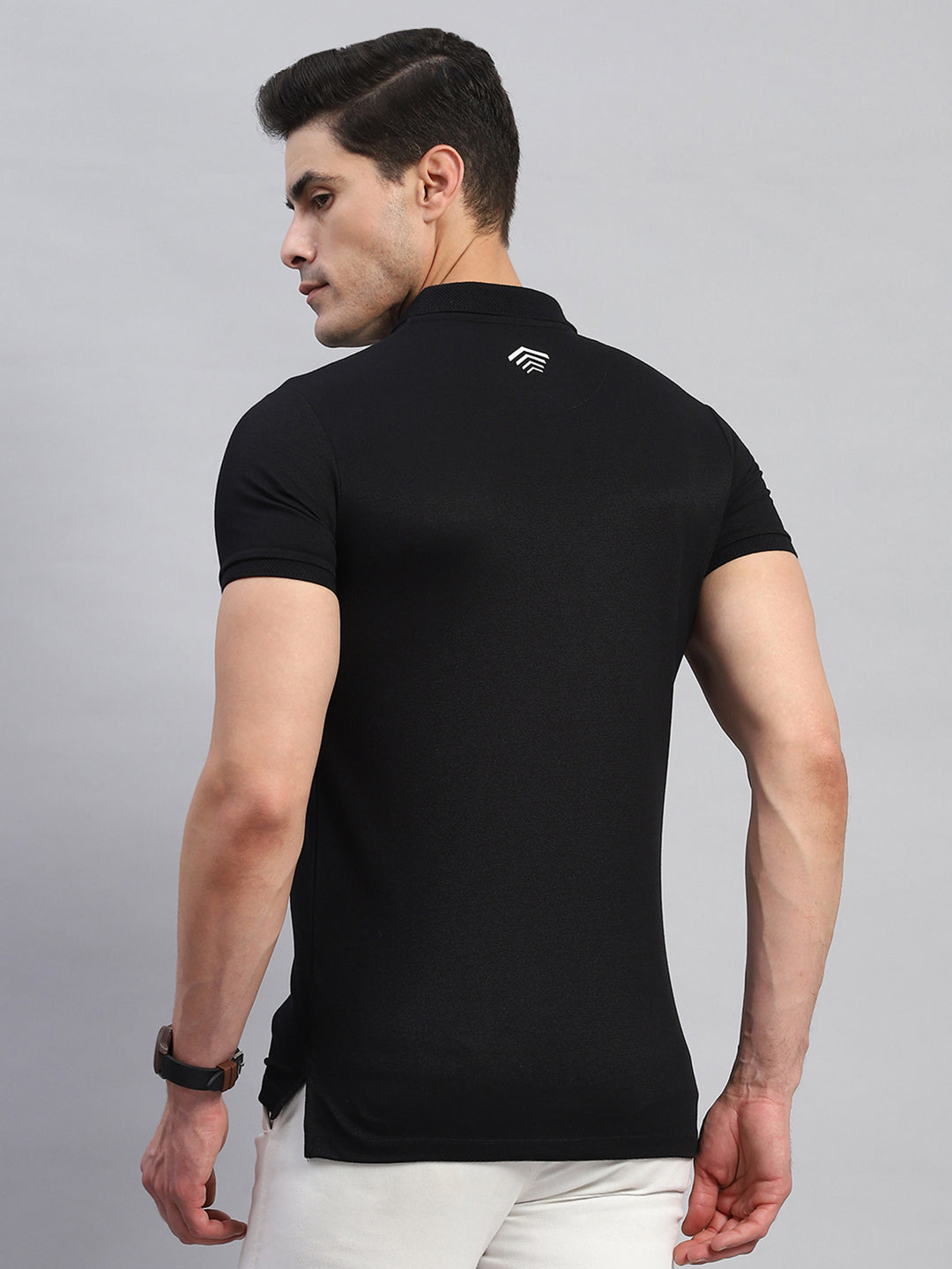 - Men Black Solid Collar Half Sleeve T-Shirt