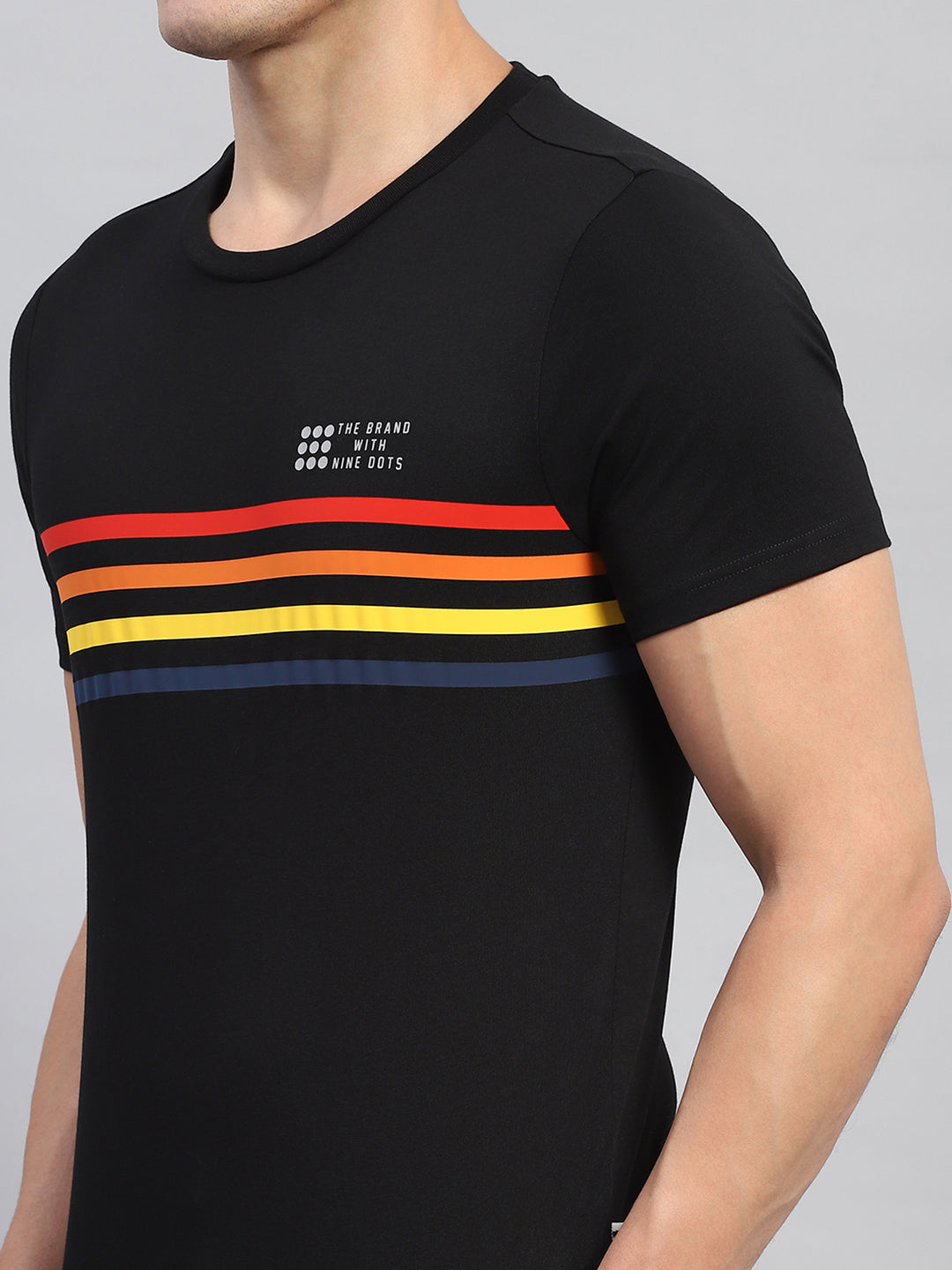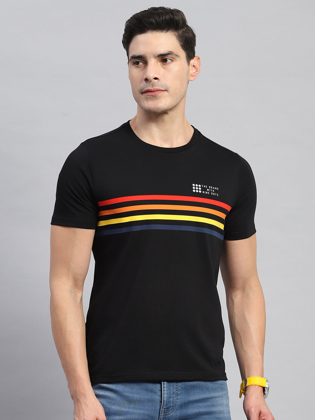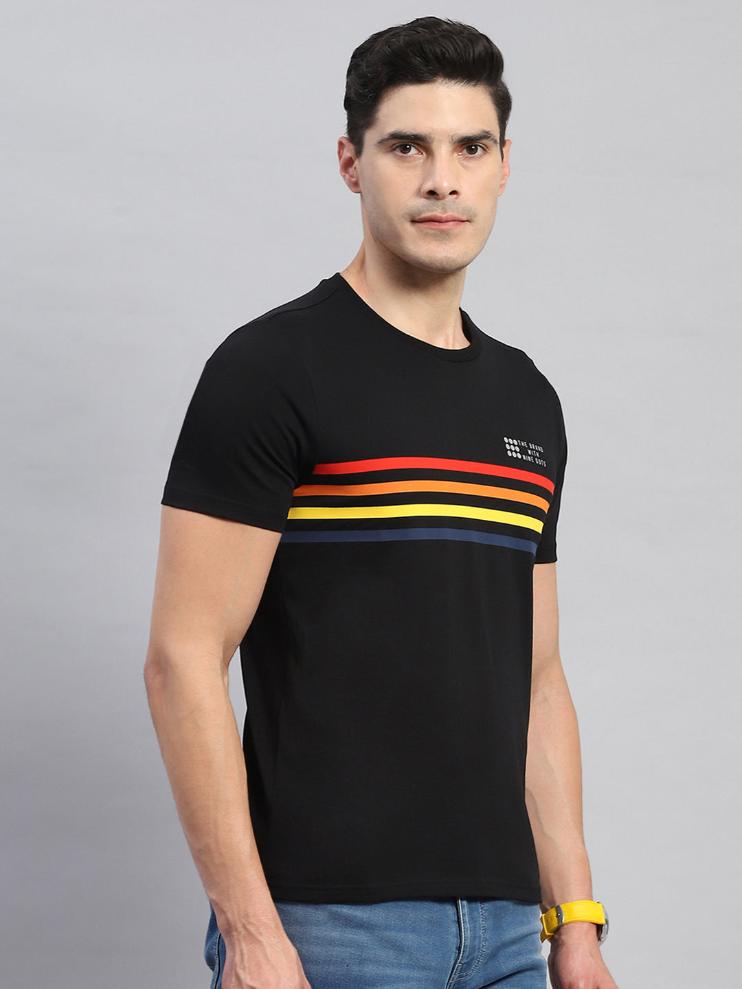 - Men Black Stripe Round Neck Half Sleeve T-Shirt