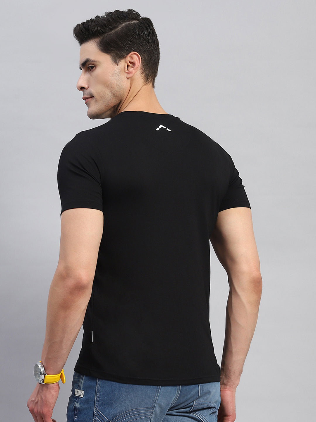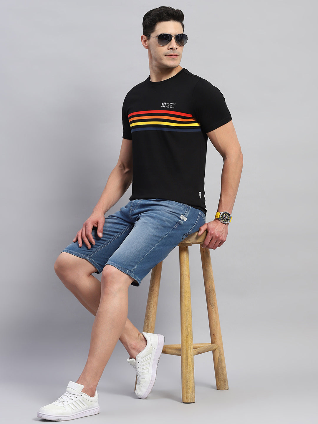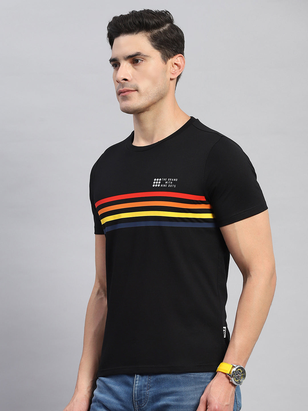 - Men Black Stripe Round Neck Half Sleeve T-Shirt