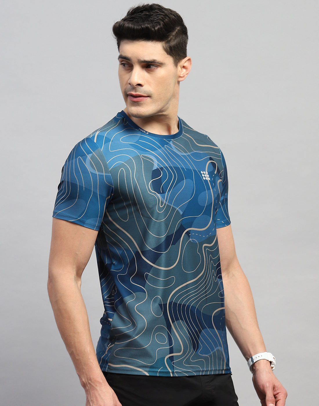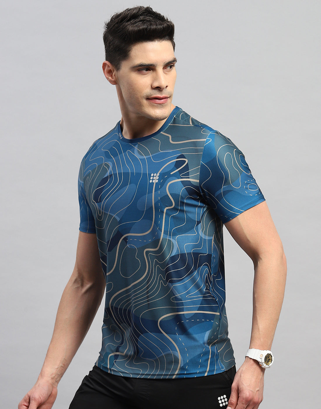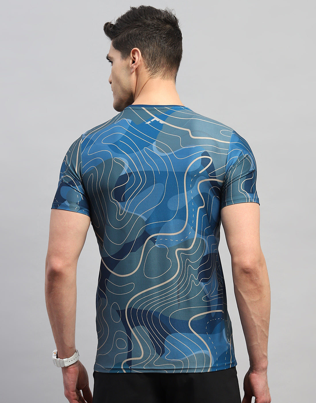 - Men Blue Printed Round Neck Half Sleeve T-Shirt