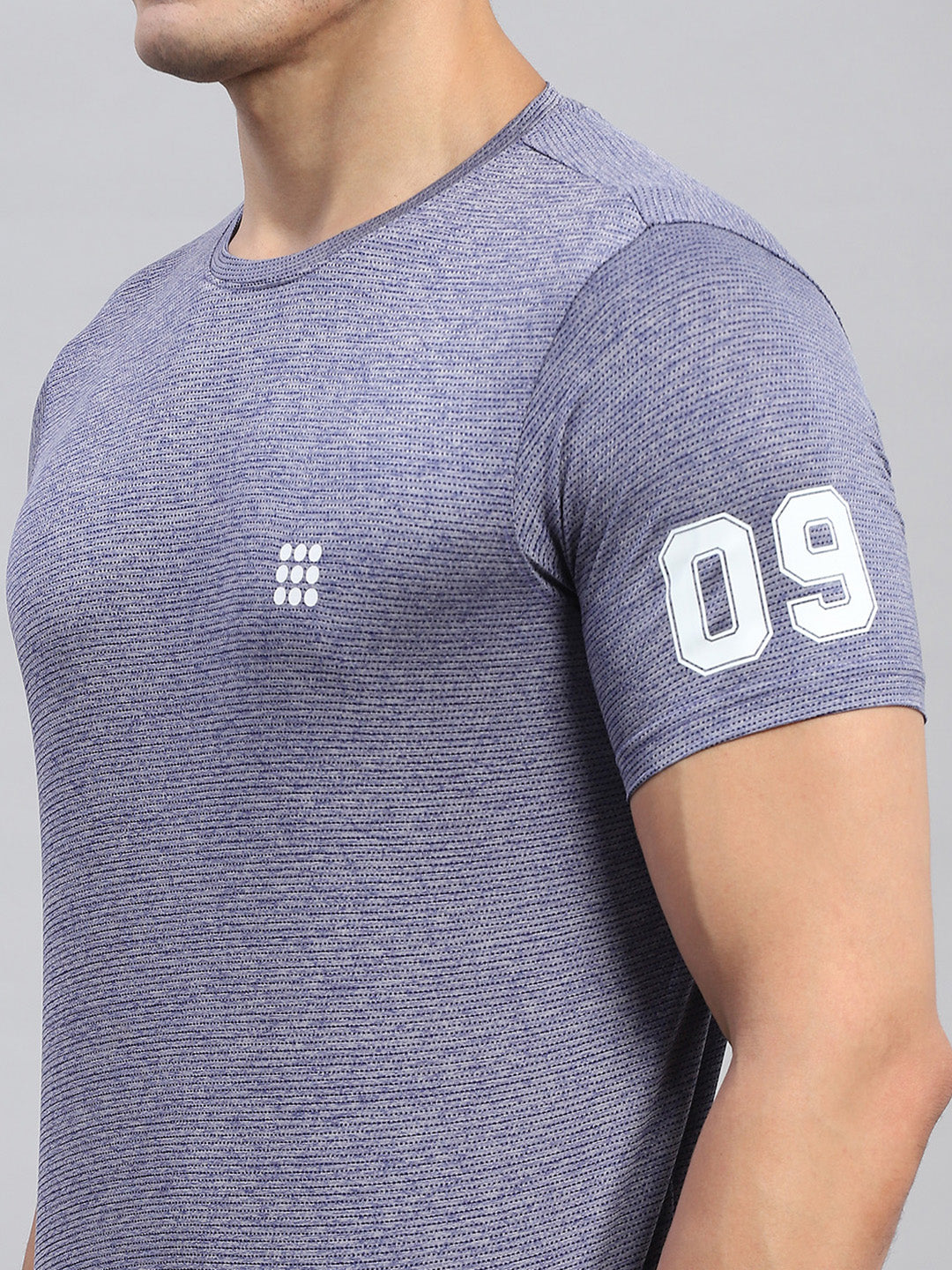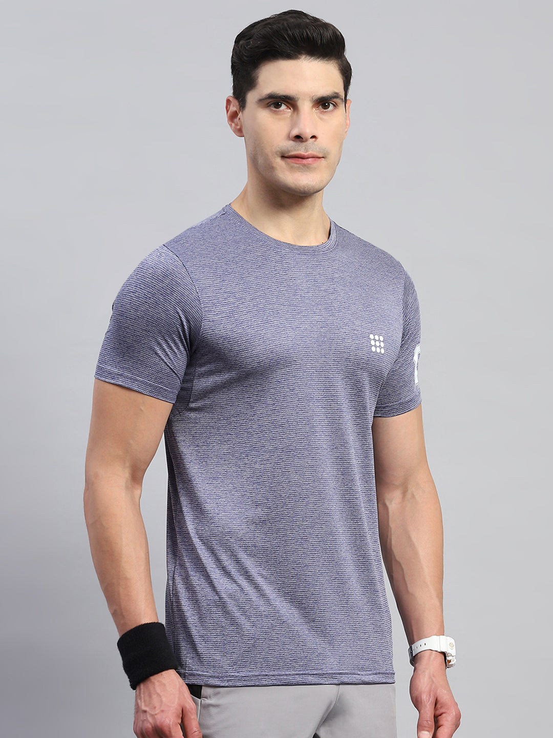 - Men Blue Self Design Round Neck Half Sleeve T-Shirt