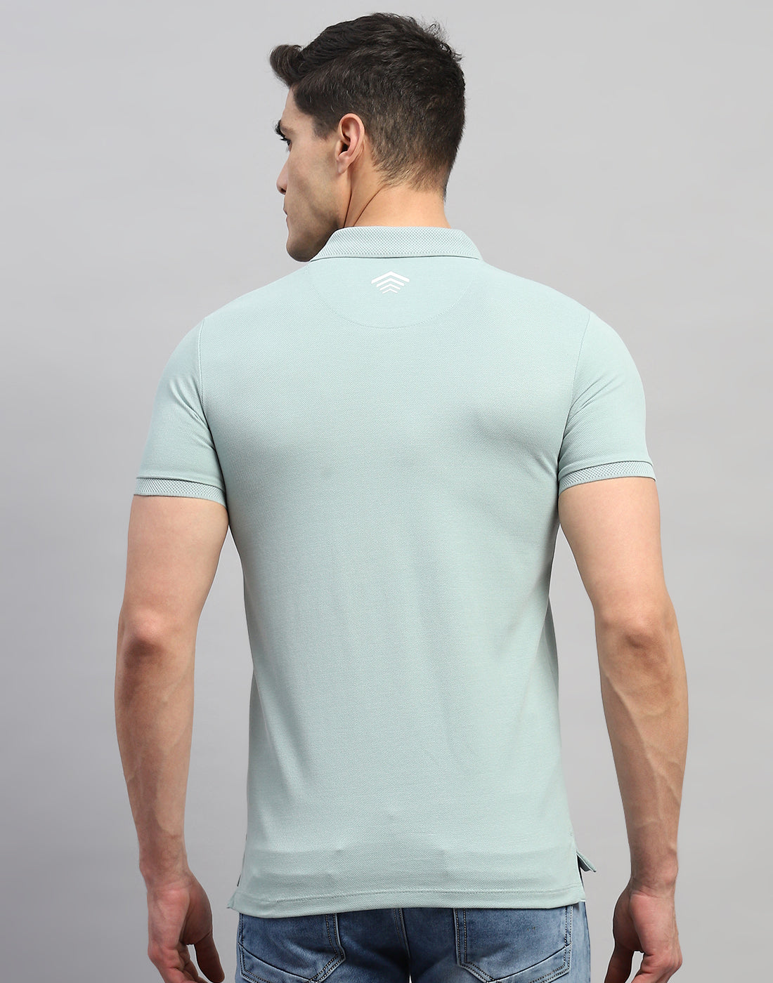 - Men Blue Solid Polo Collar Half Sleeve T-Shirt
