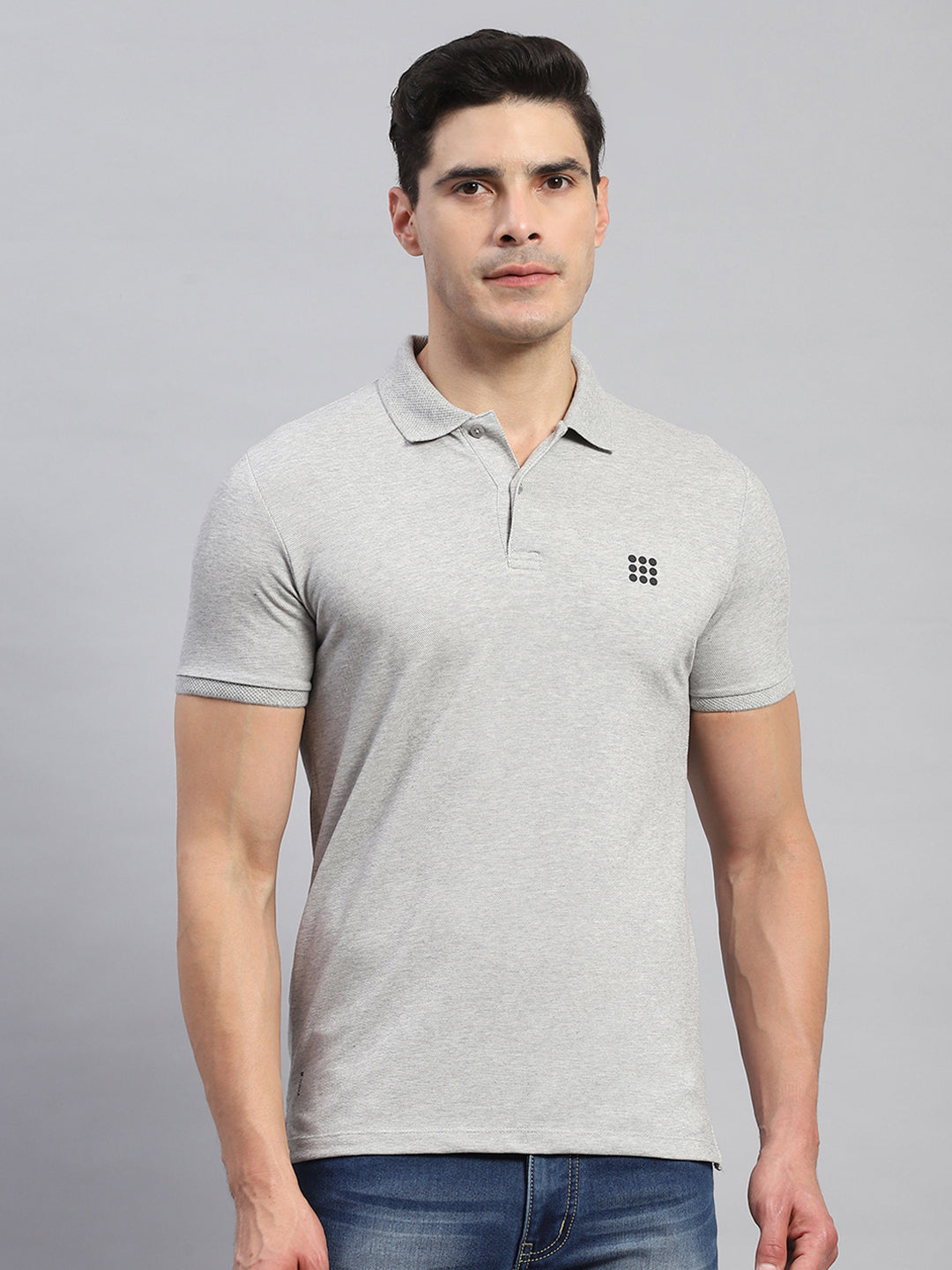 - Men Grey Solid Collar Half Sleeve T-Shirt