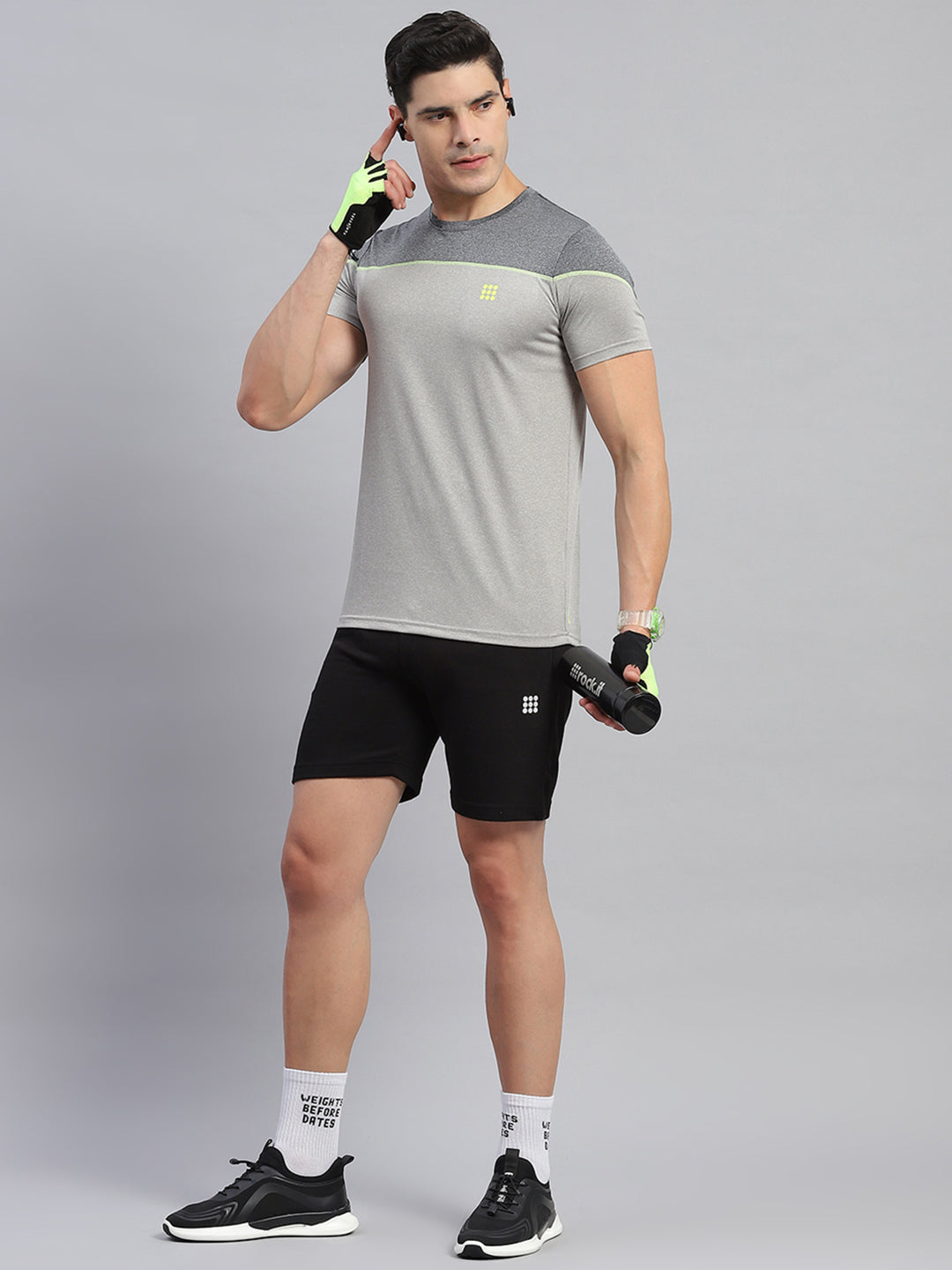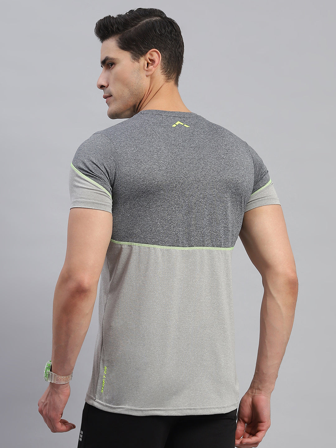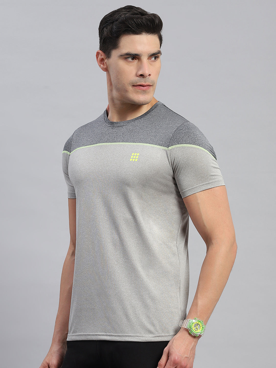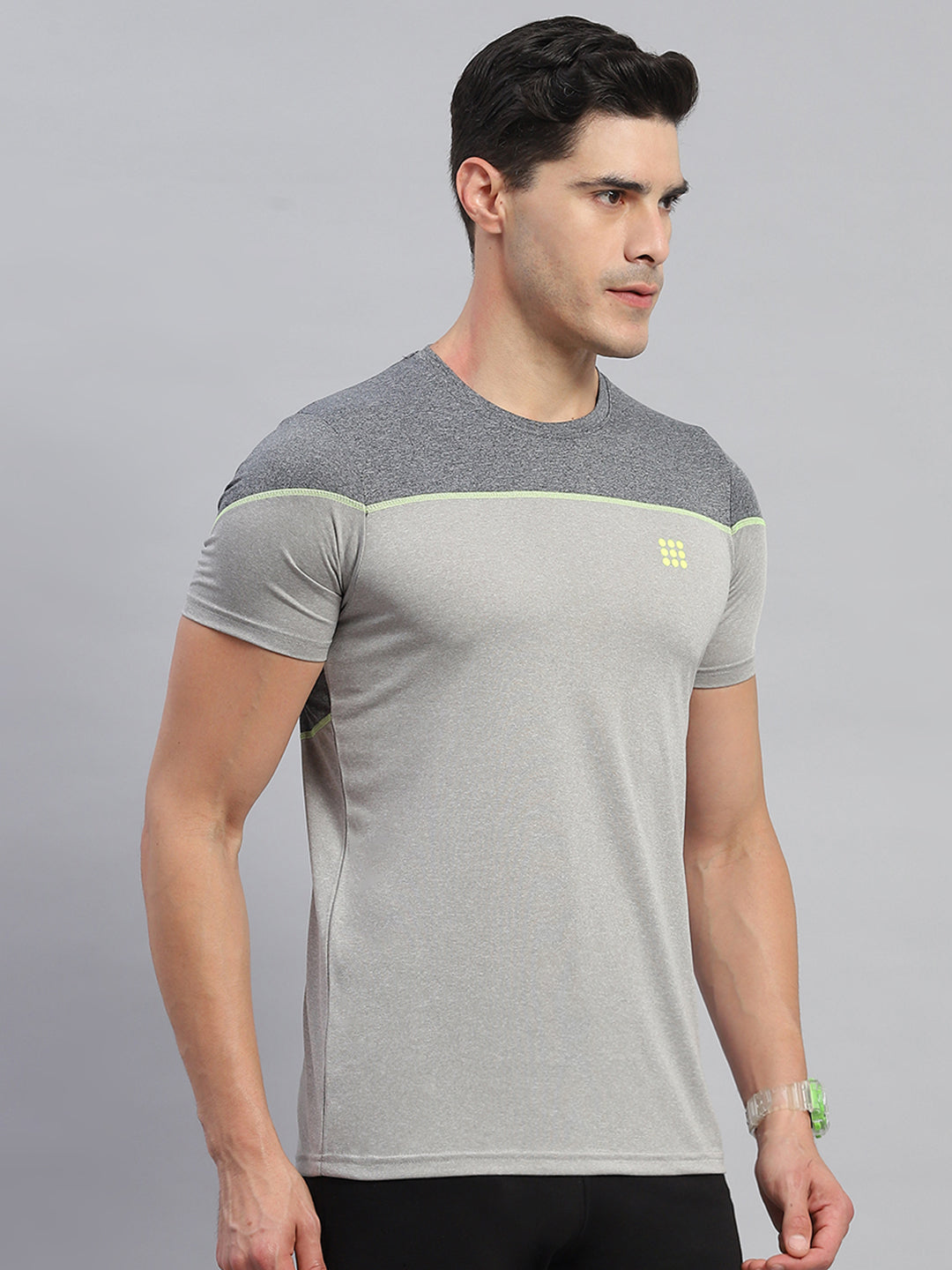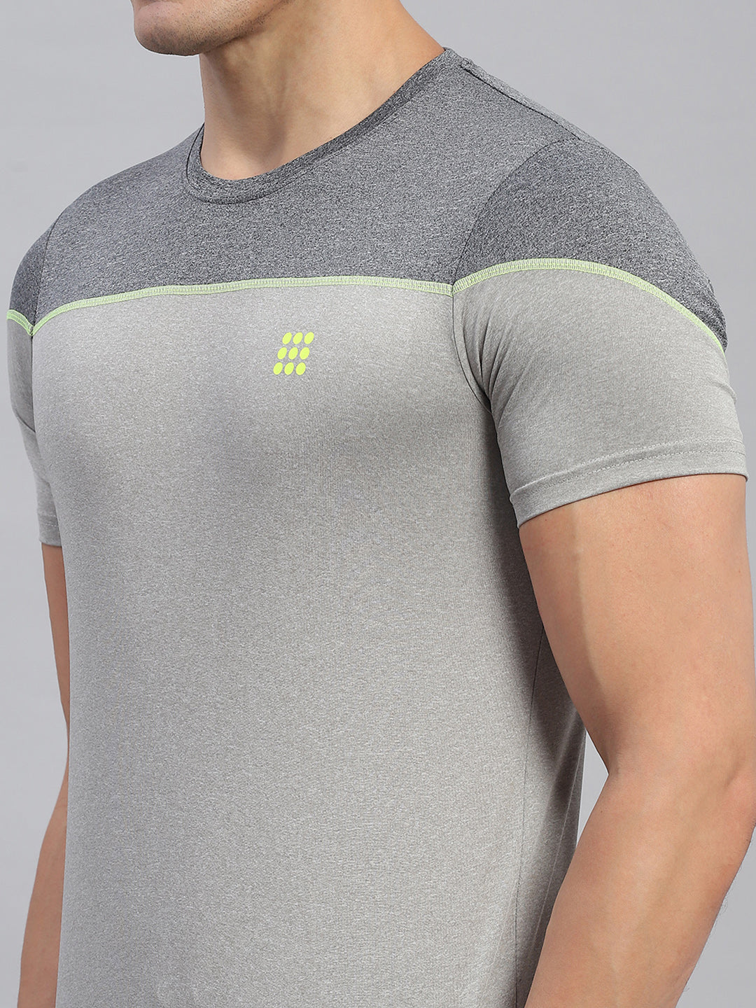 - Men Grey Solid Round Neck Half Sleeve T-Shirt