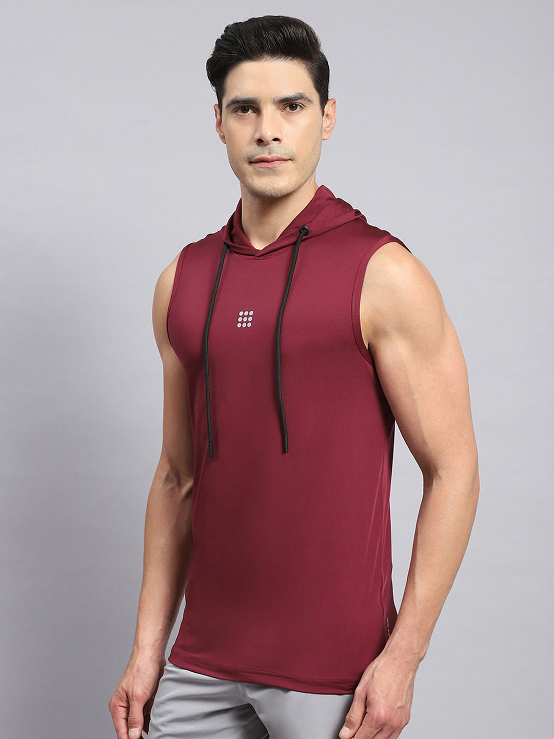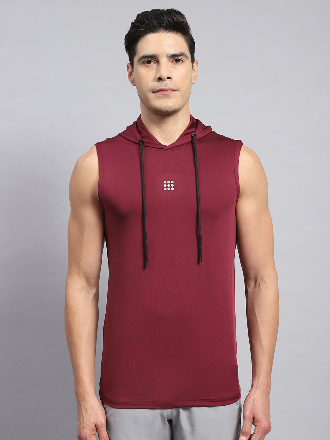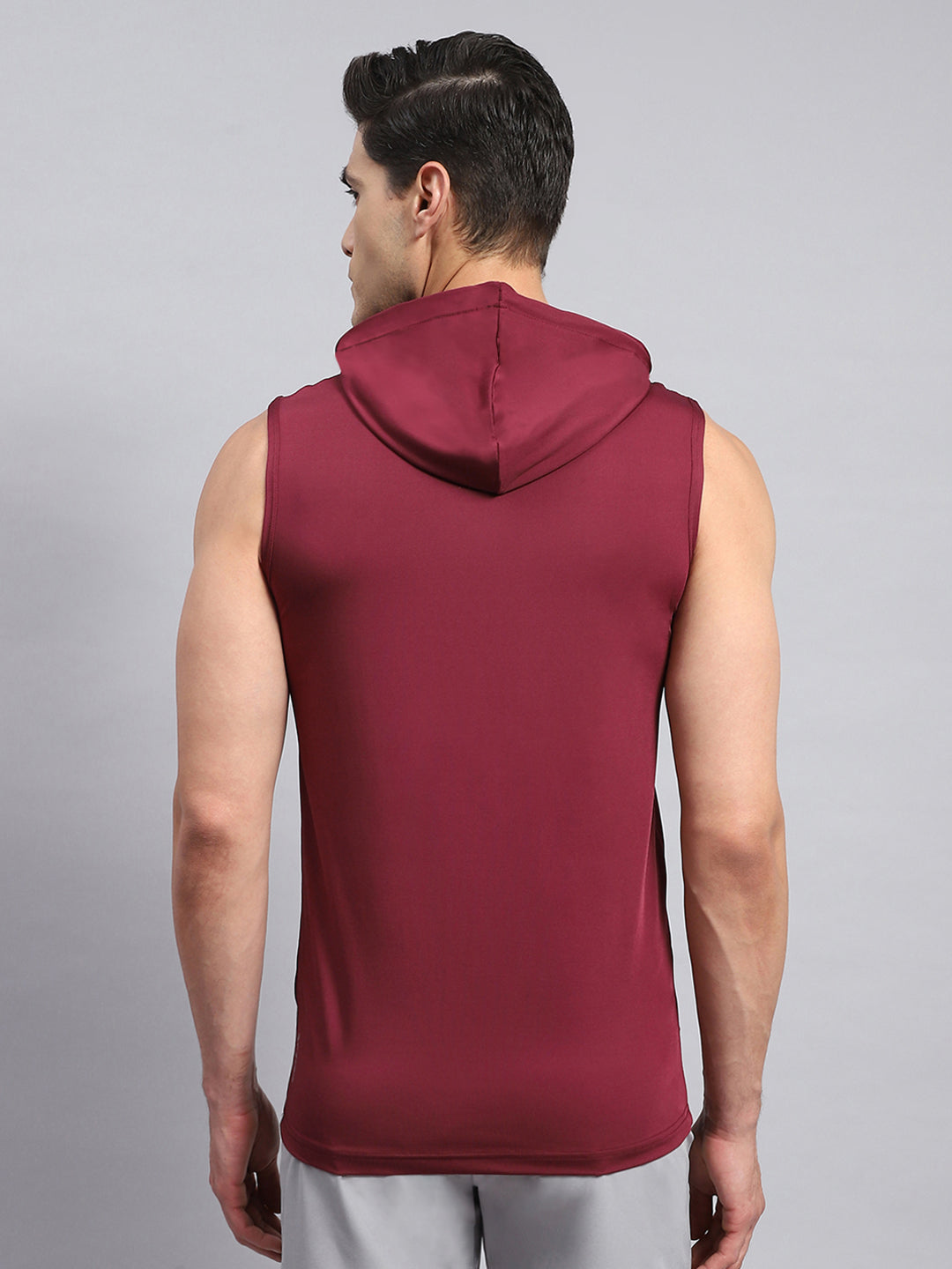 - Men Maroon Solid Round Neck Sleeveless T-Shirt