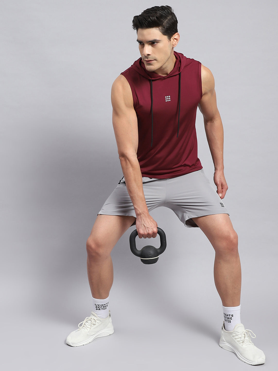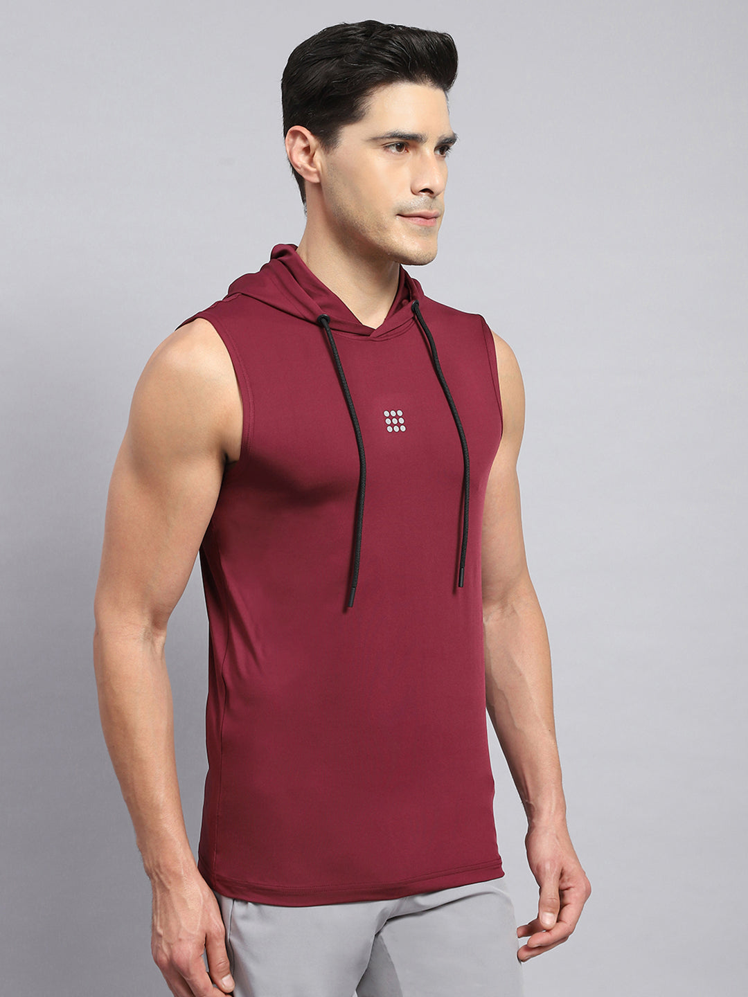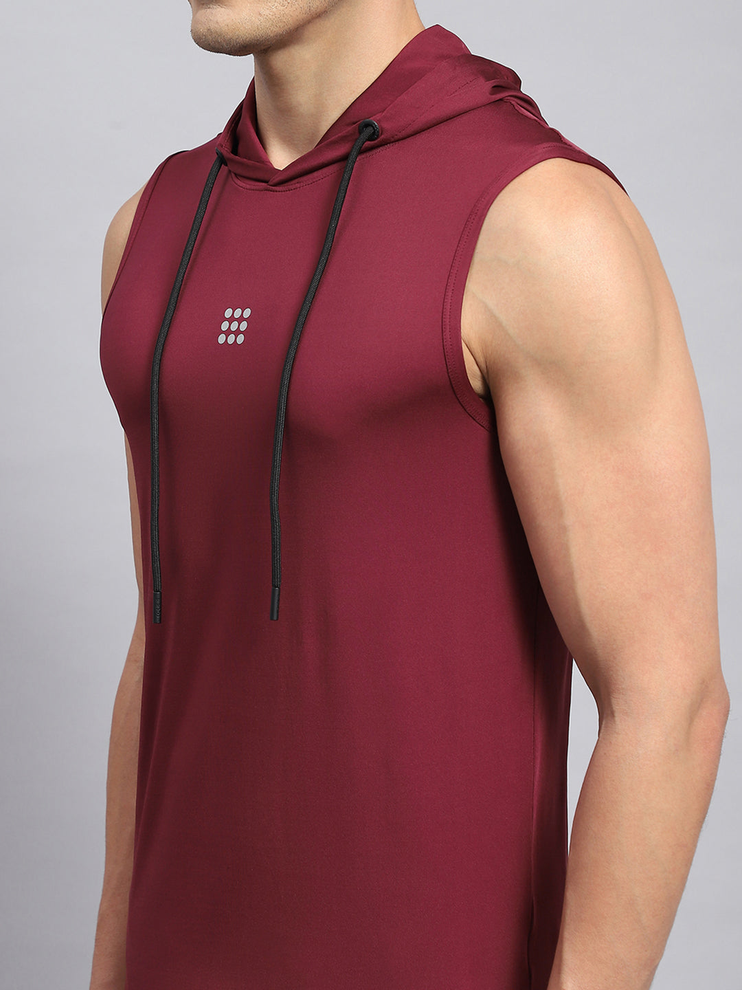 - Men Maroon Solid Round Neck Sleeveless T-Shirt