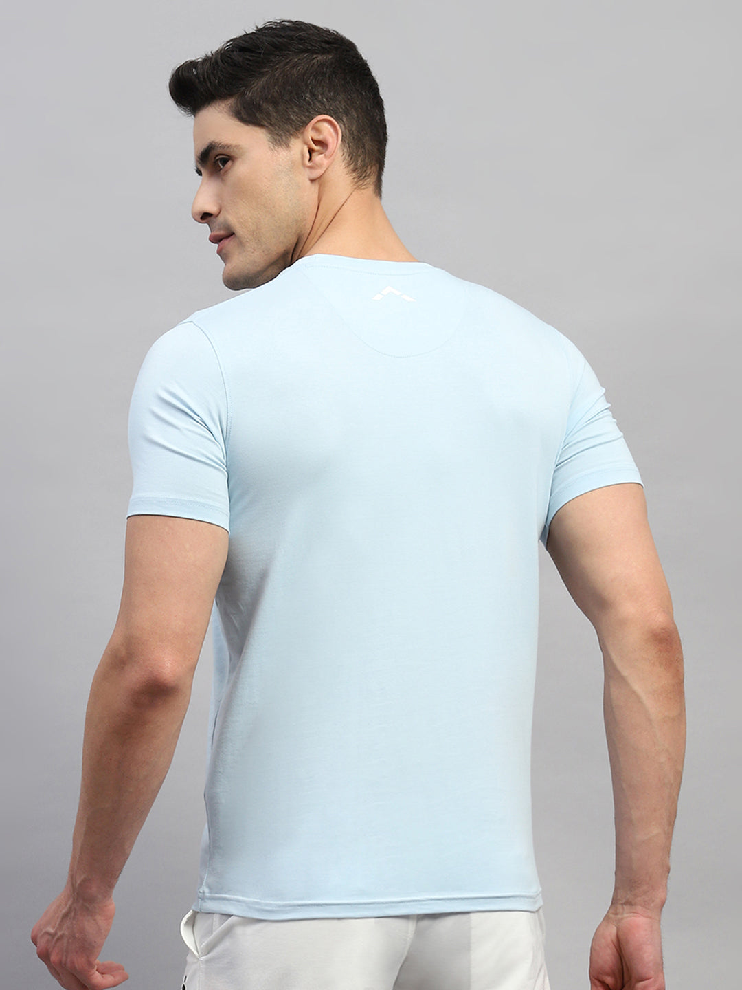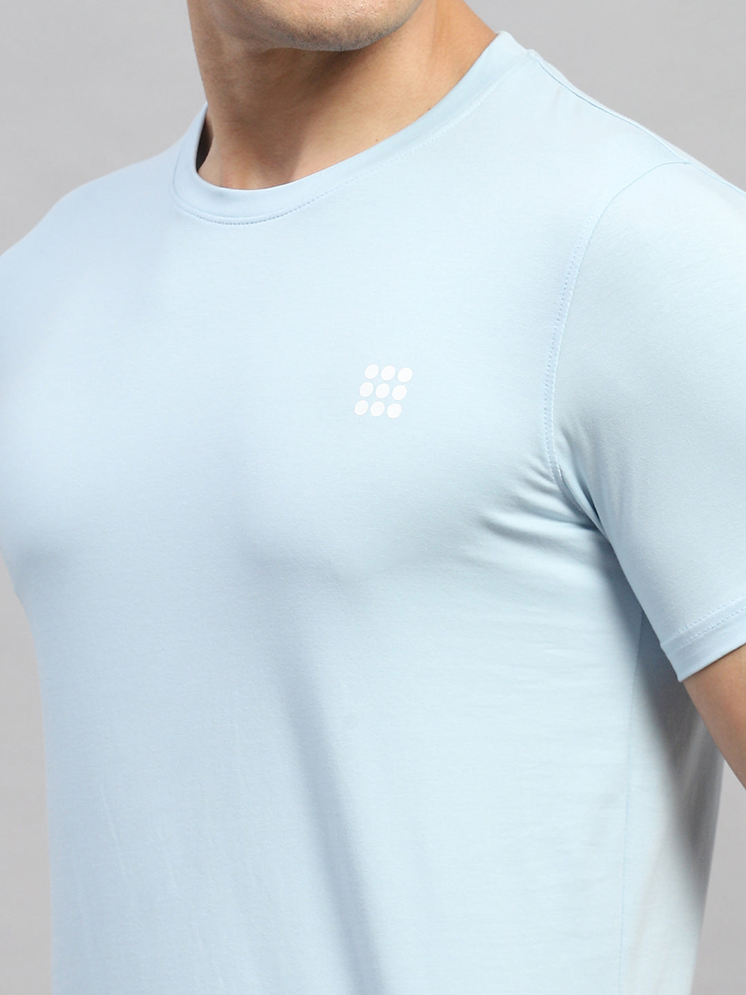 - Men Sky Blue Solid Round Neck Half Sleeve T-Shirt