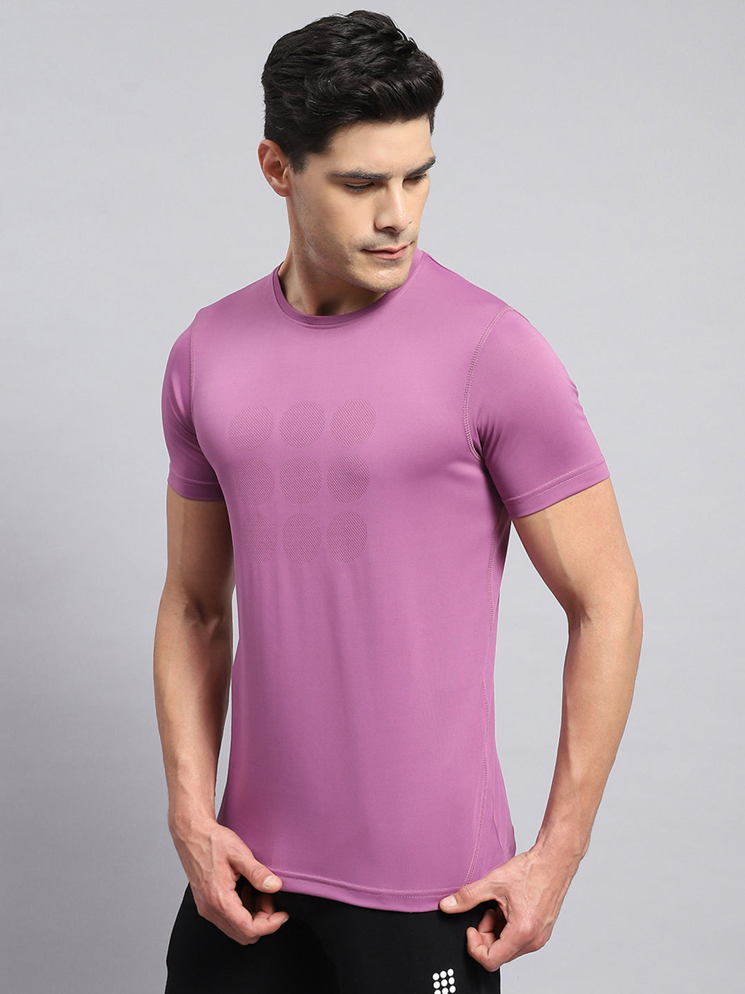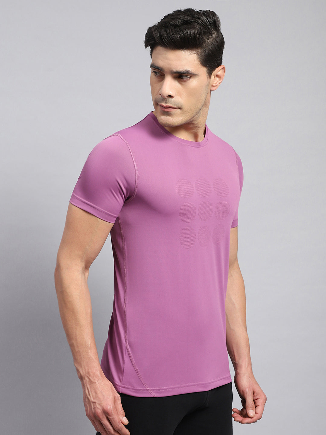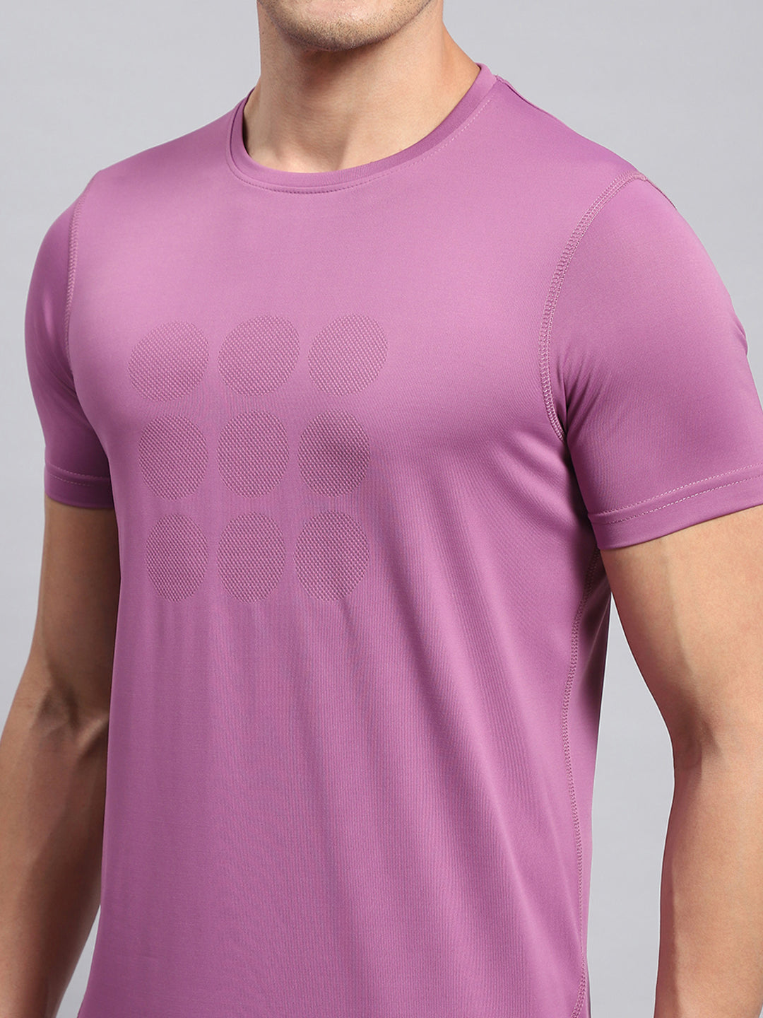 - Men Purple Self Design Round Neck Half Sleeve T-Shirt