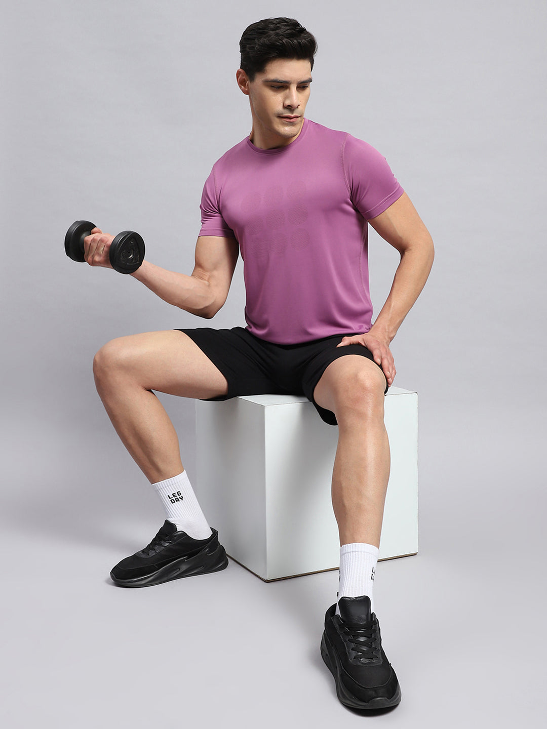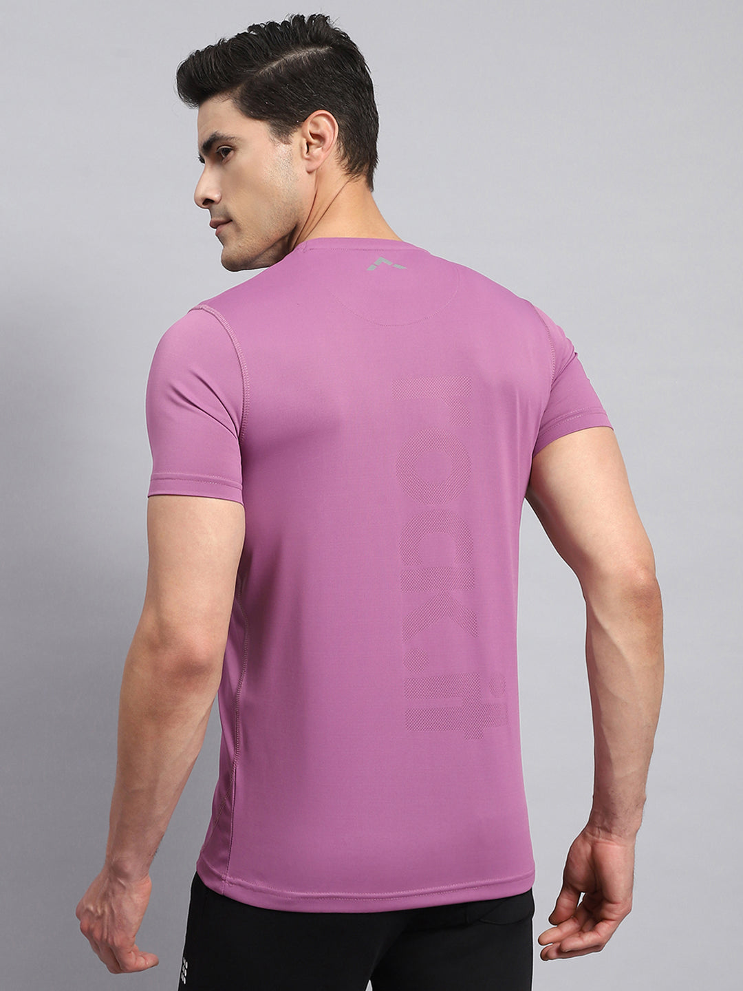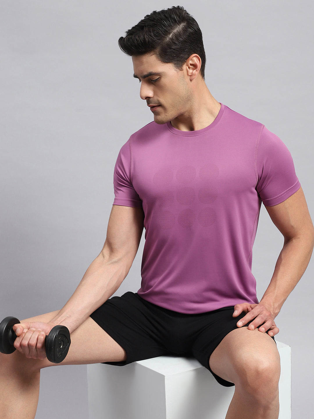 - Men Purple Self Design Round Neck Half Sleeve T-Shirt