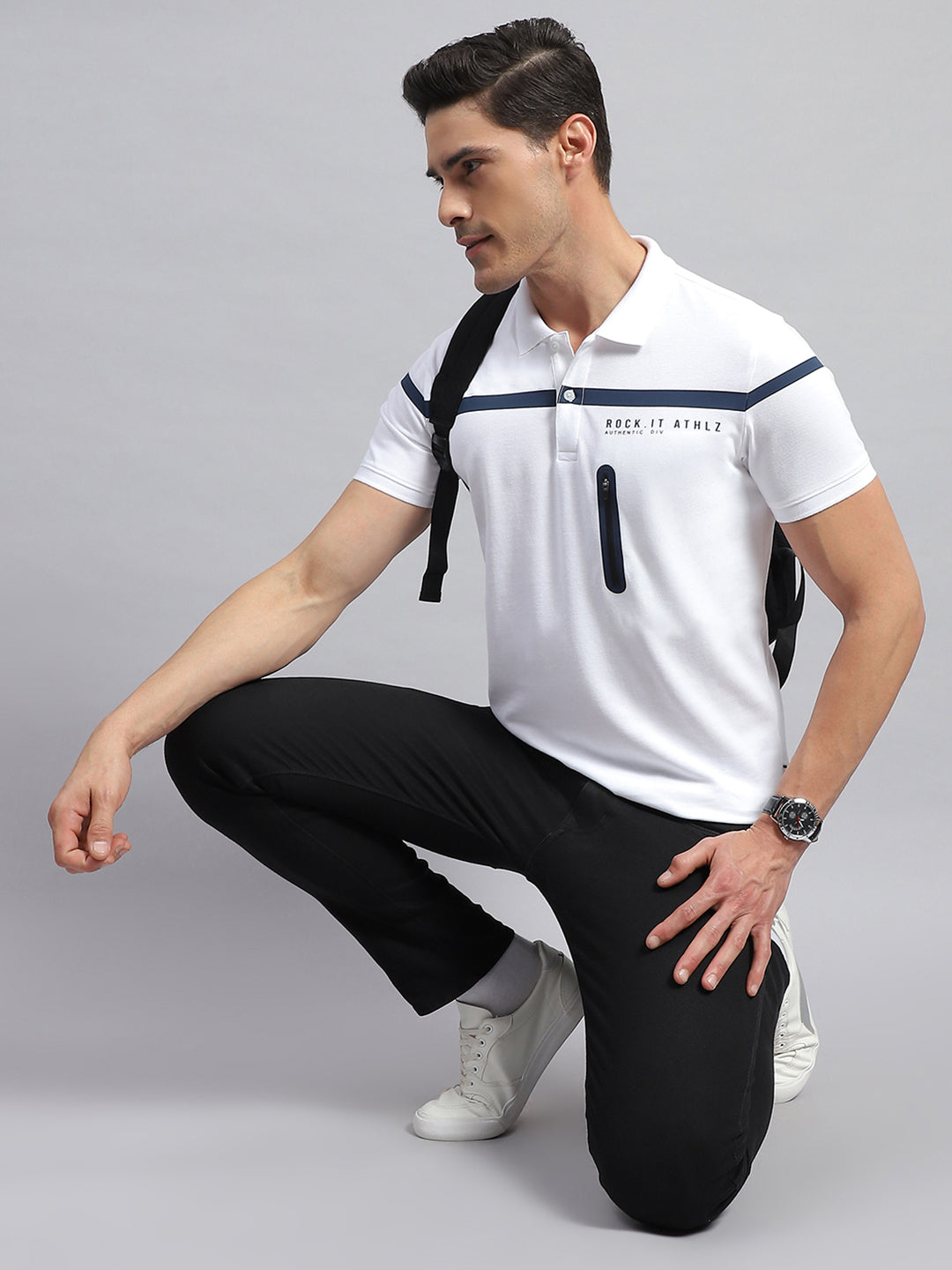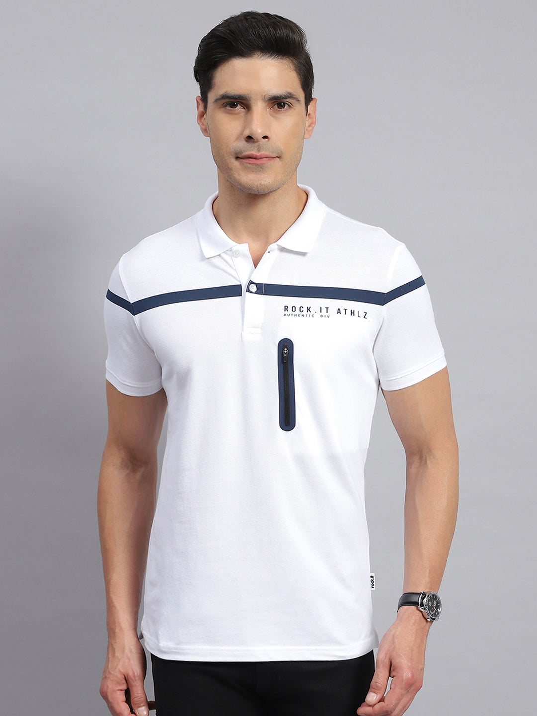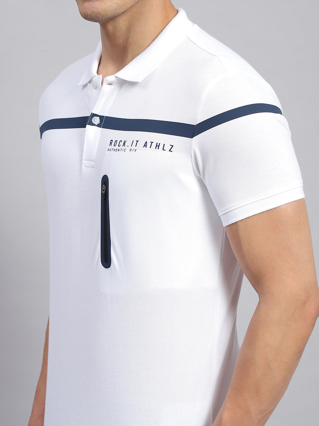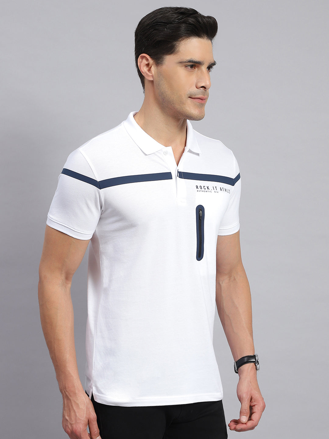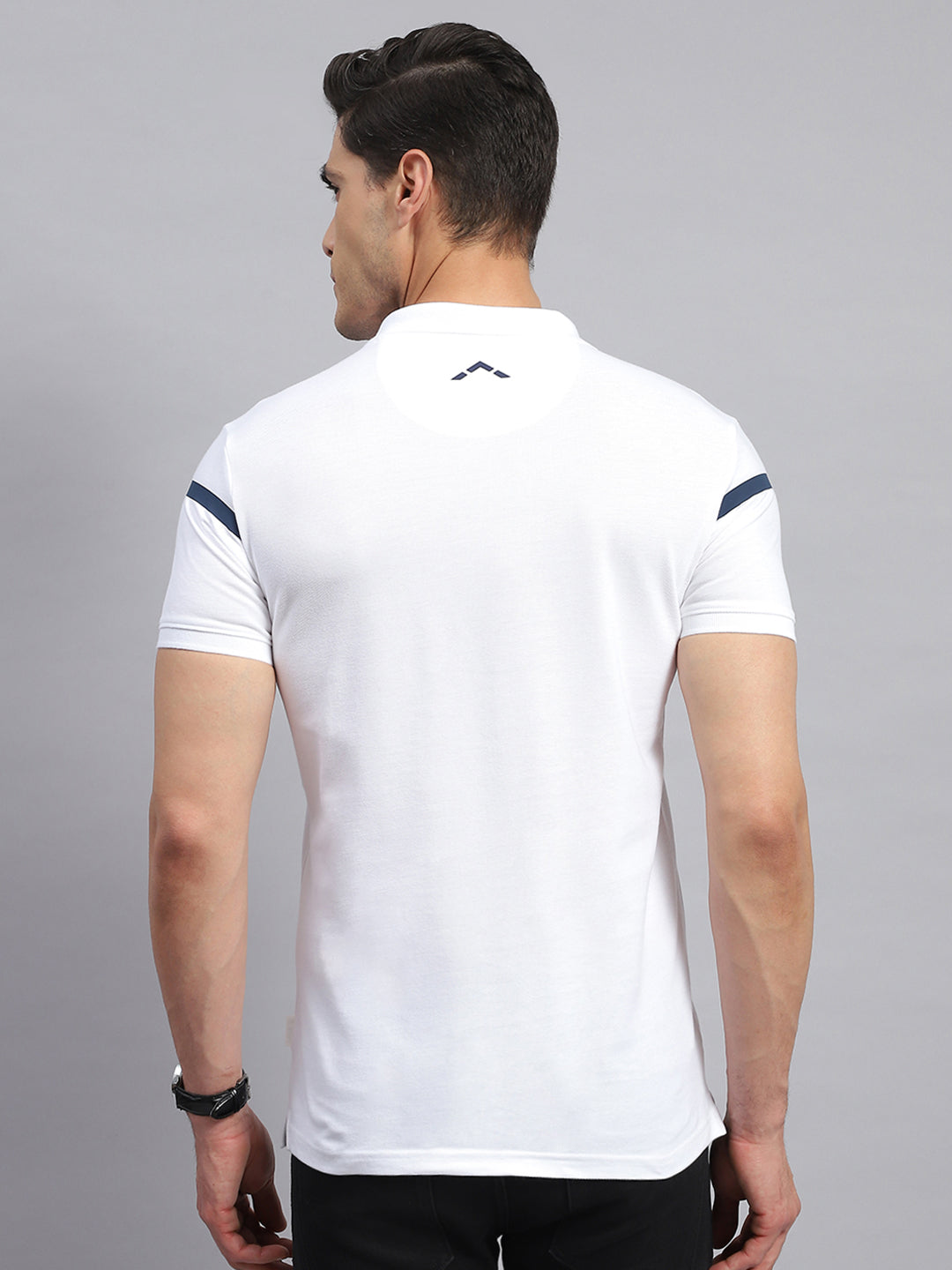 - Men White Solid Collar Half Sleeve T-Shirt