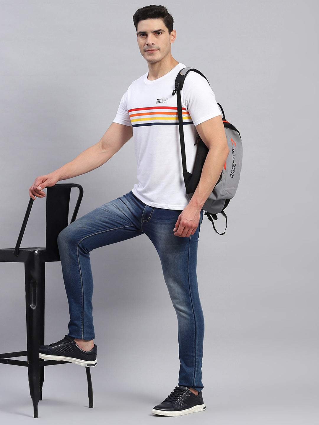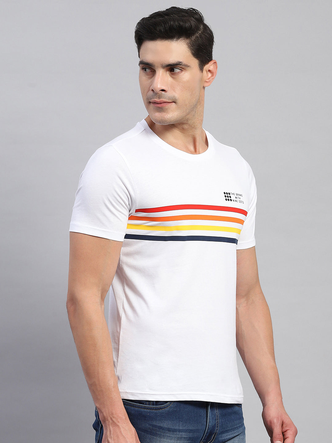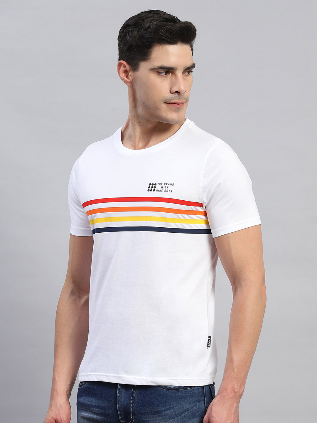 - Men White Stripe Round Neck Half Sleeve T-Shirt