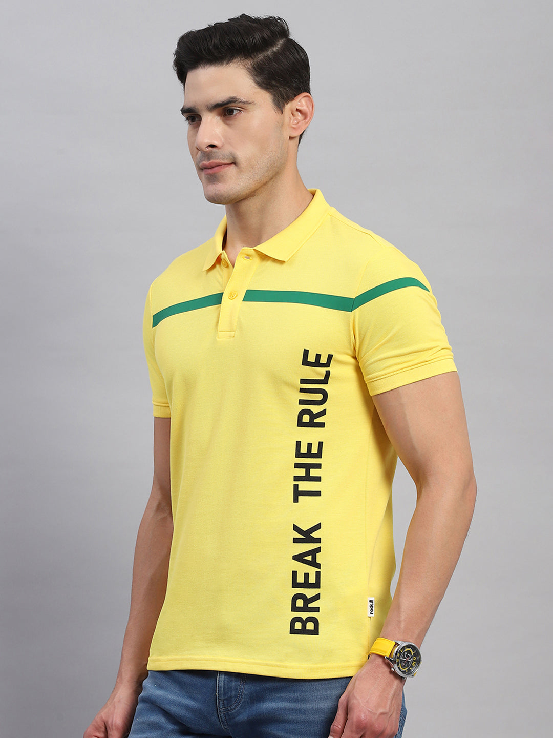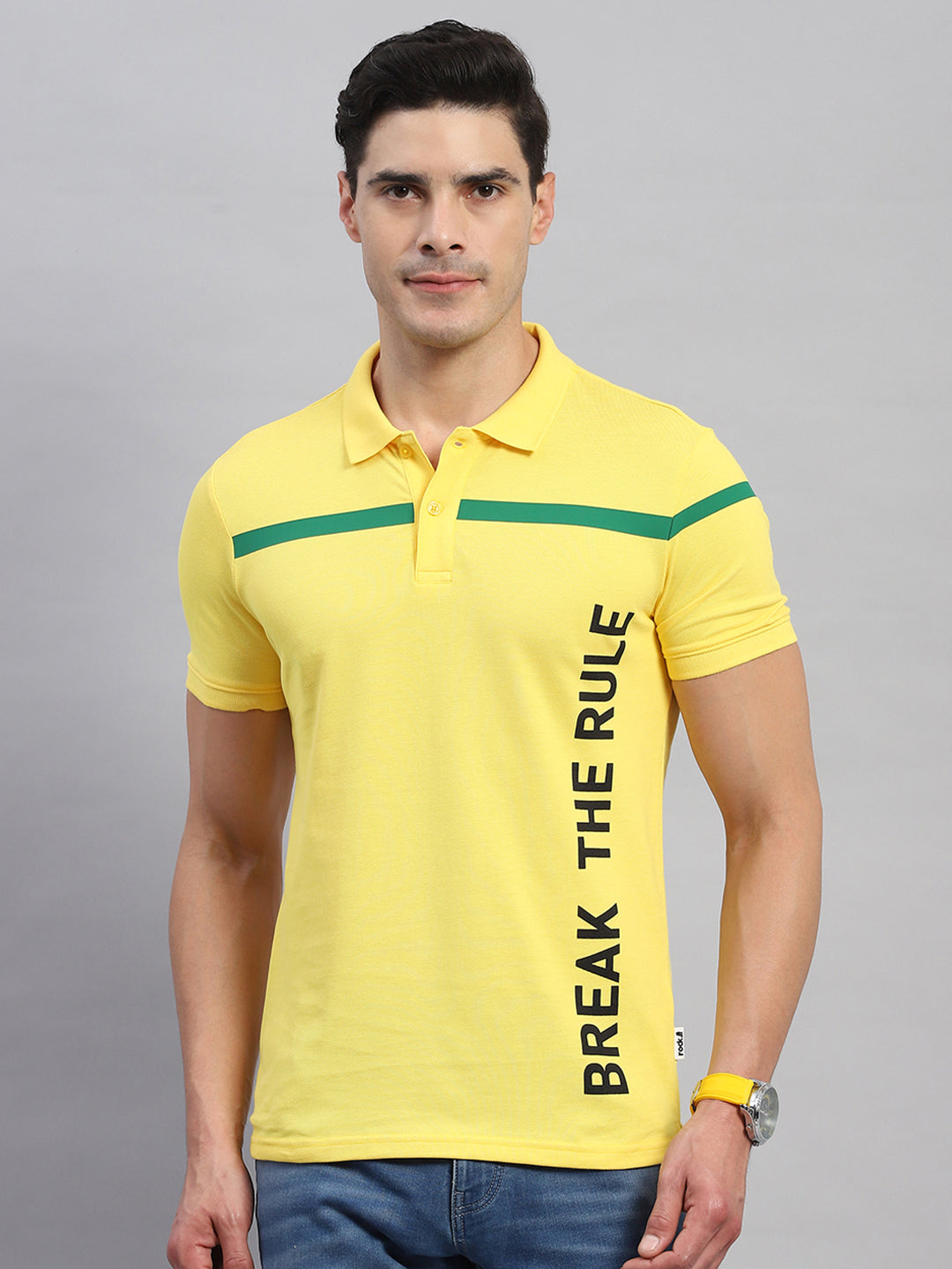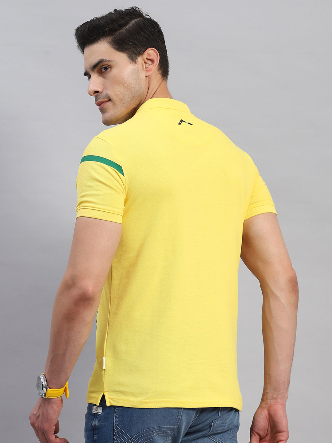 - Men Yellow Solid Collar Half Sleeve T-Shirt