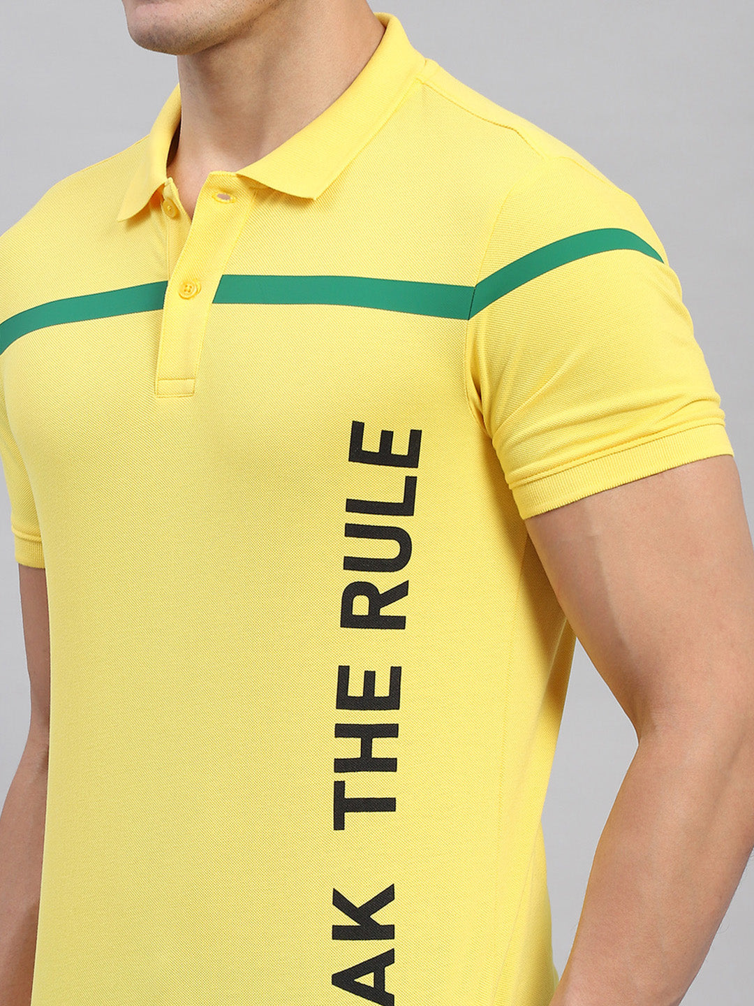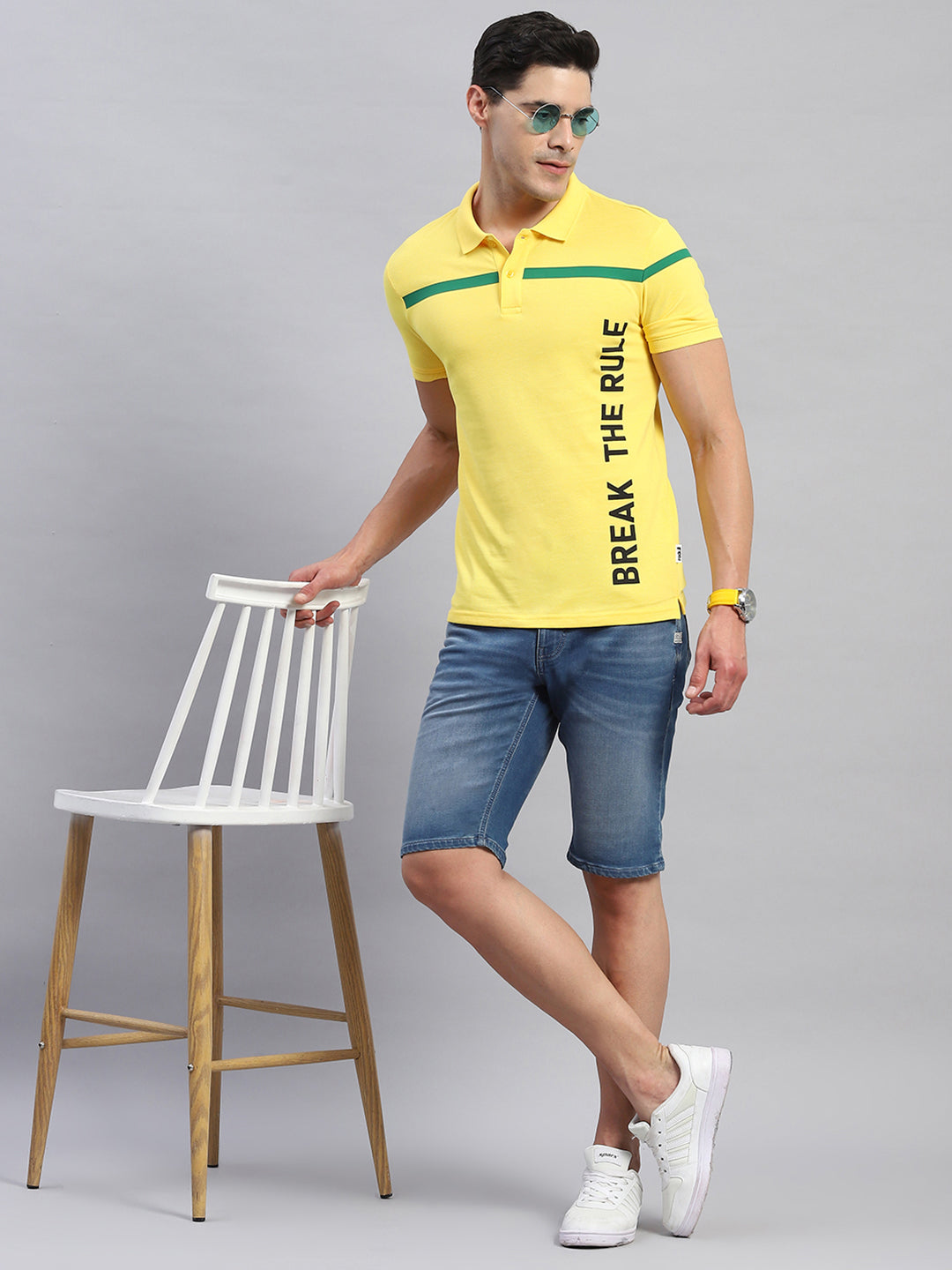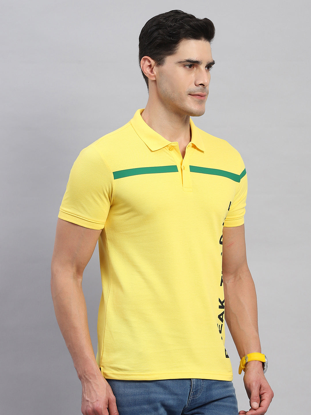 - Men Yellow Solid Collar Half Sleeve T-Shirt