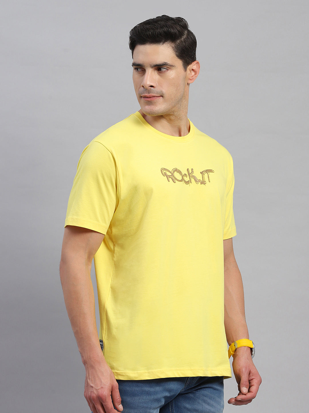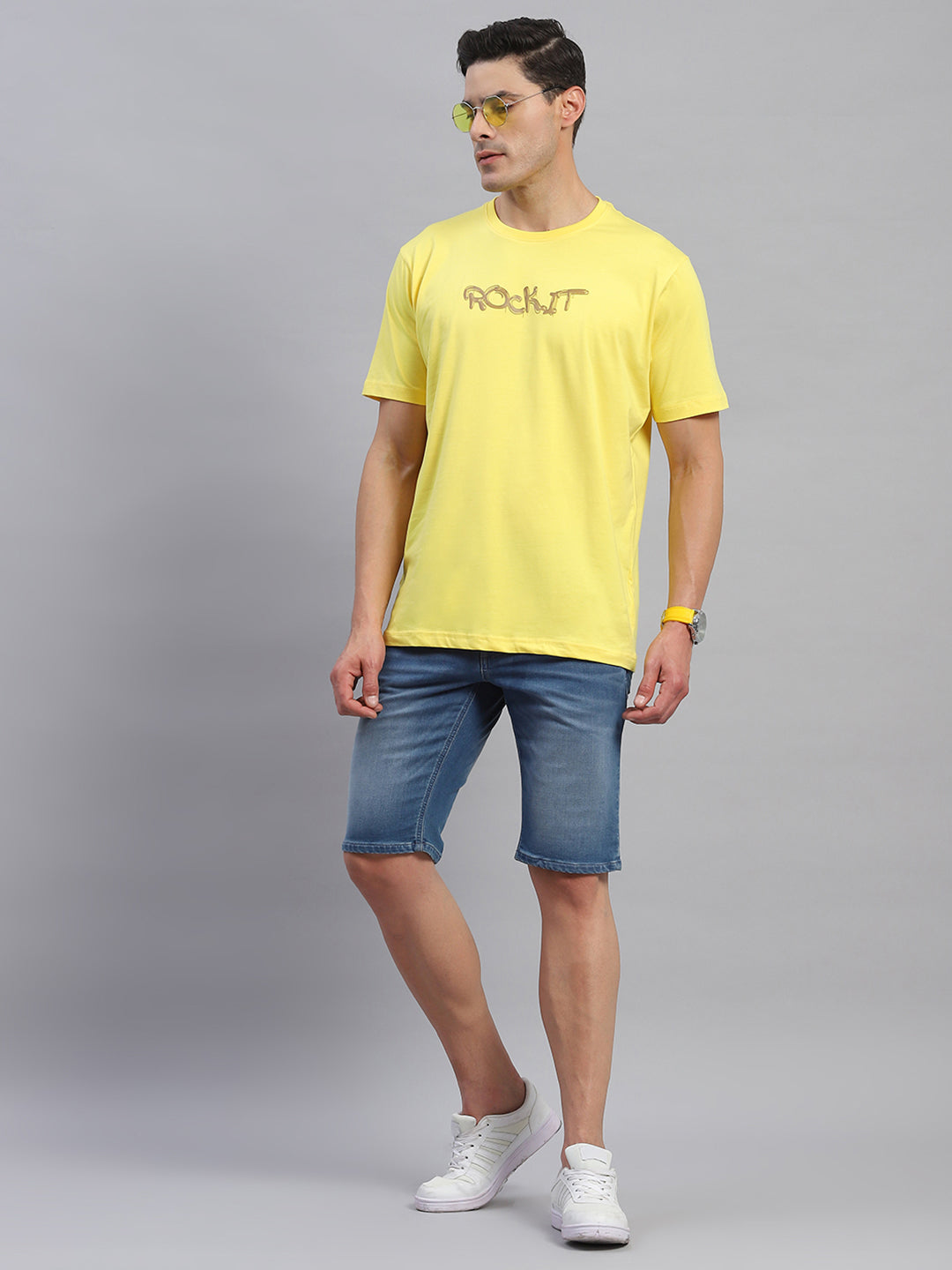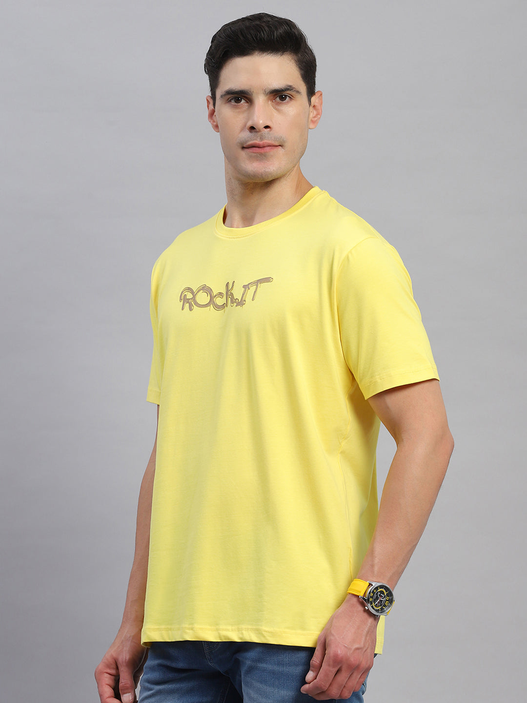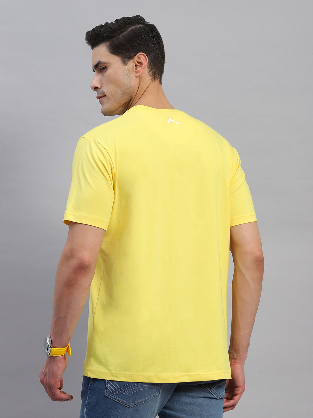 - Men Yellow Solid Round Neck Half Sleeve T-Shirt
