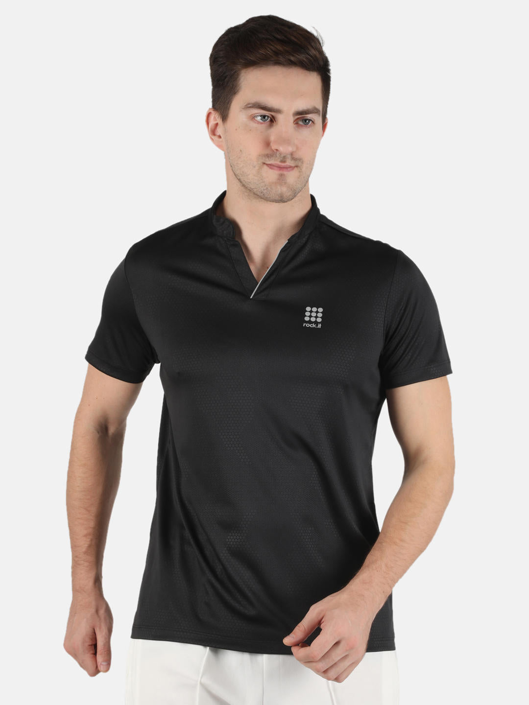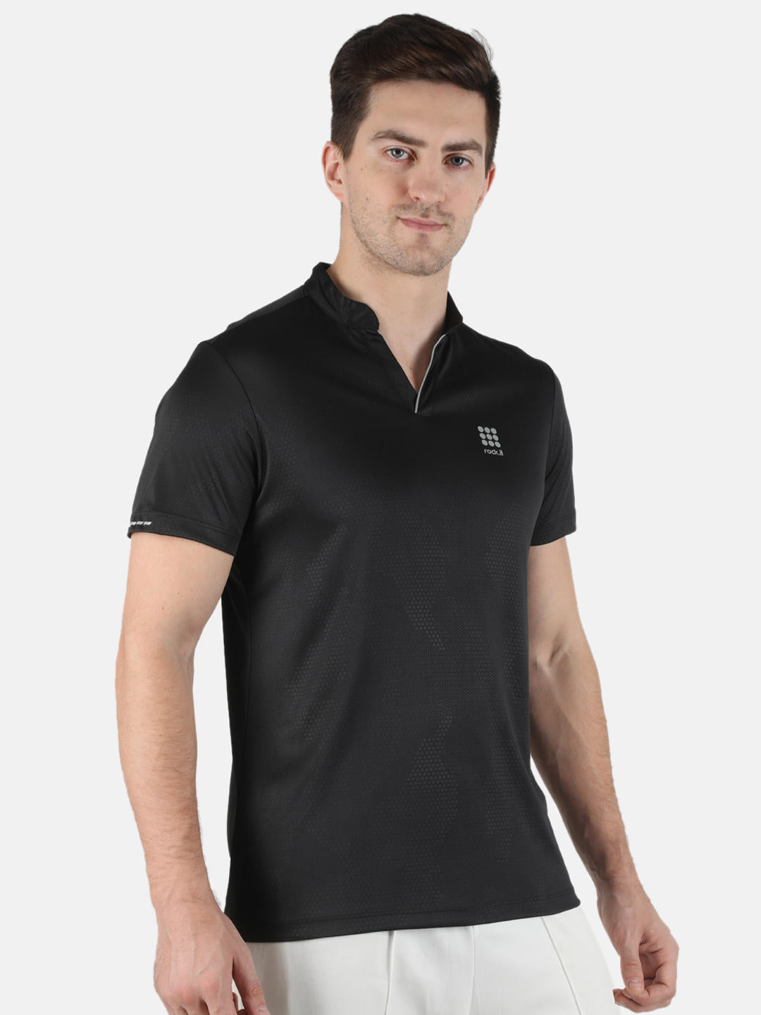 Men Black Collar Regular Fit Half Sleeve T-Shirt