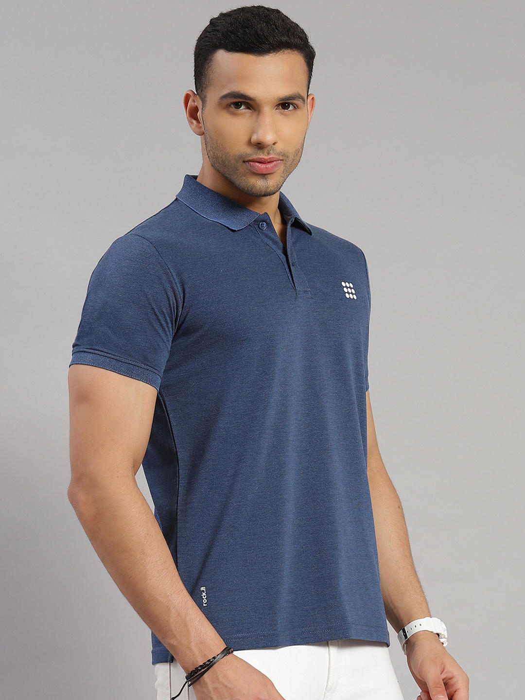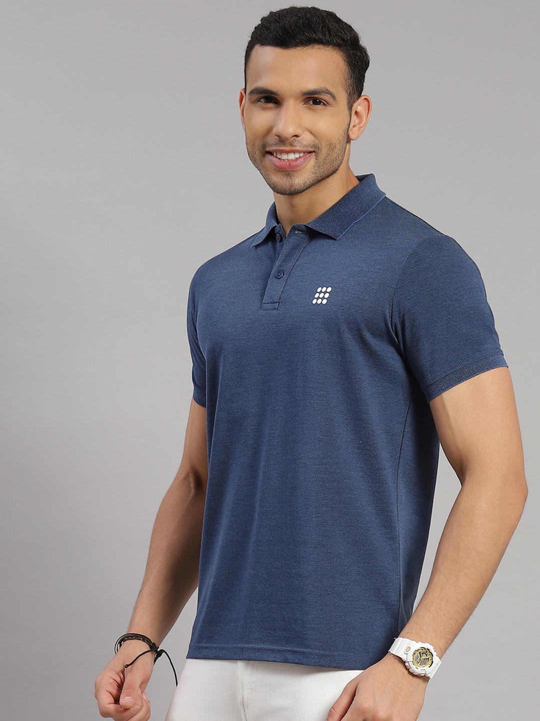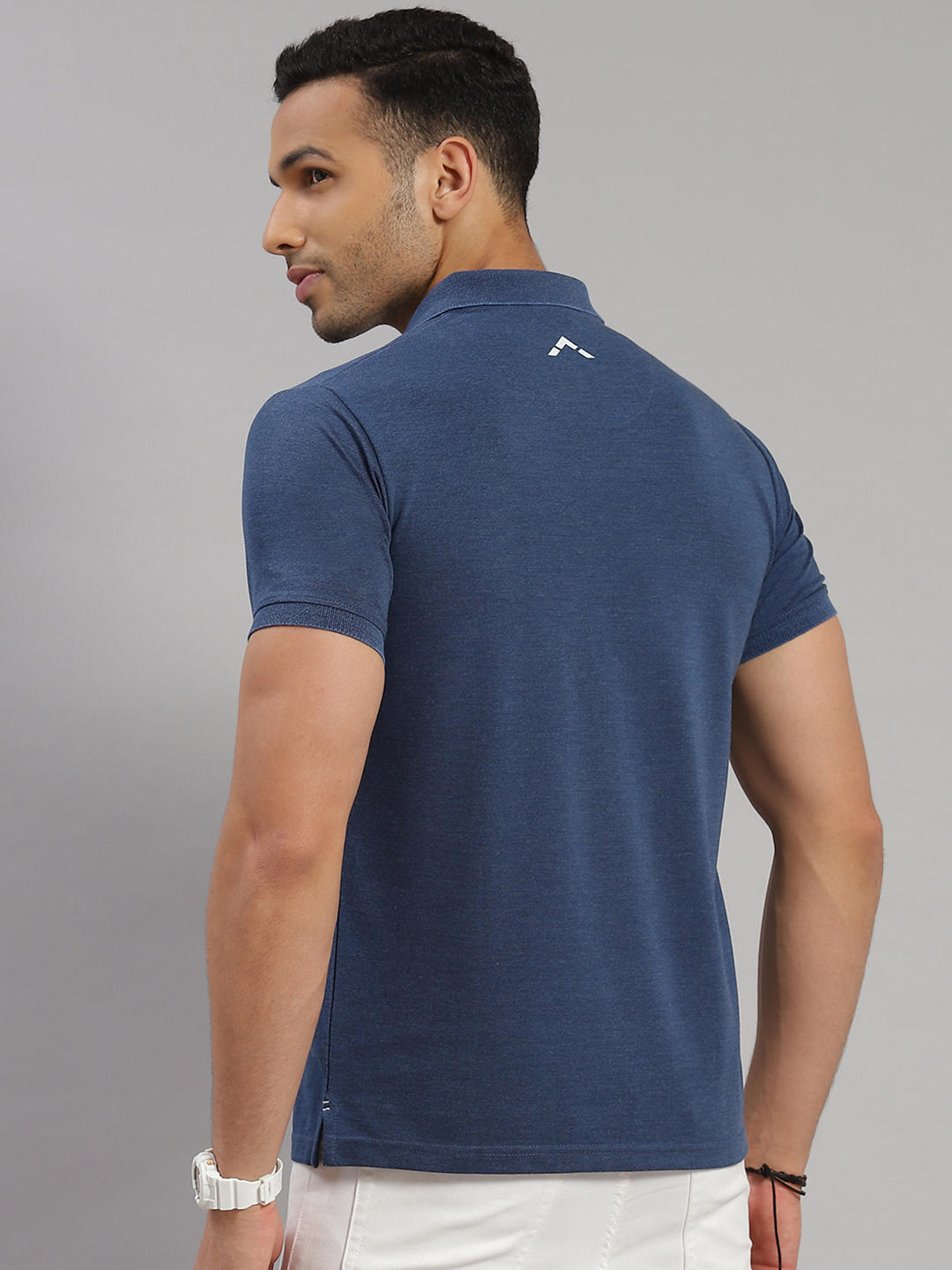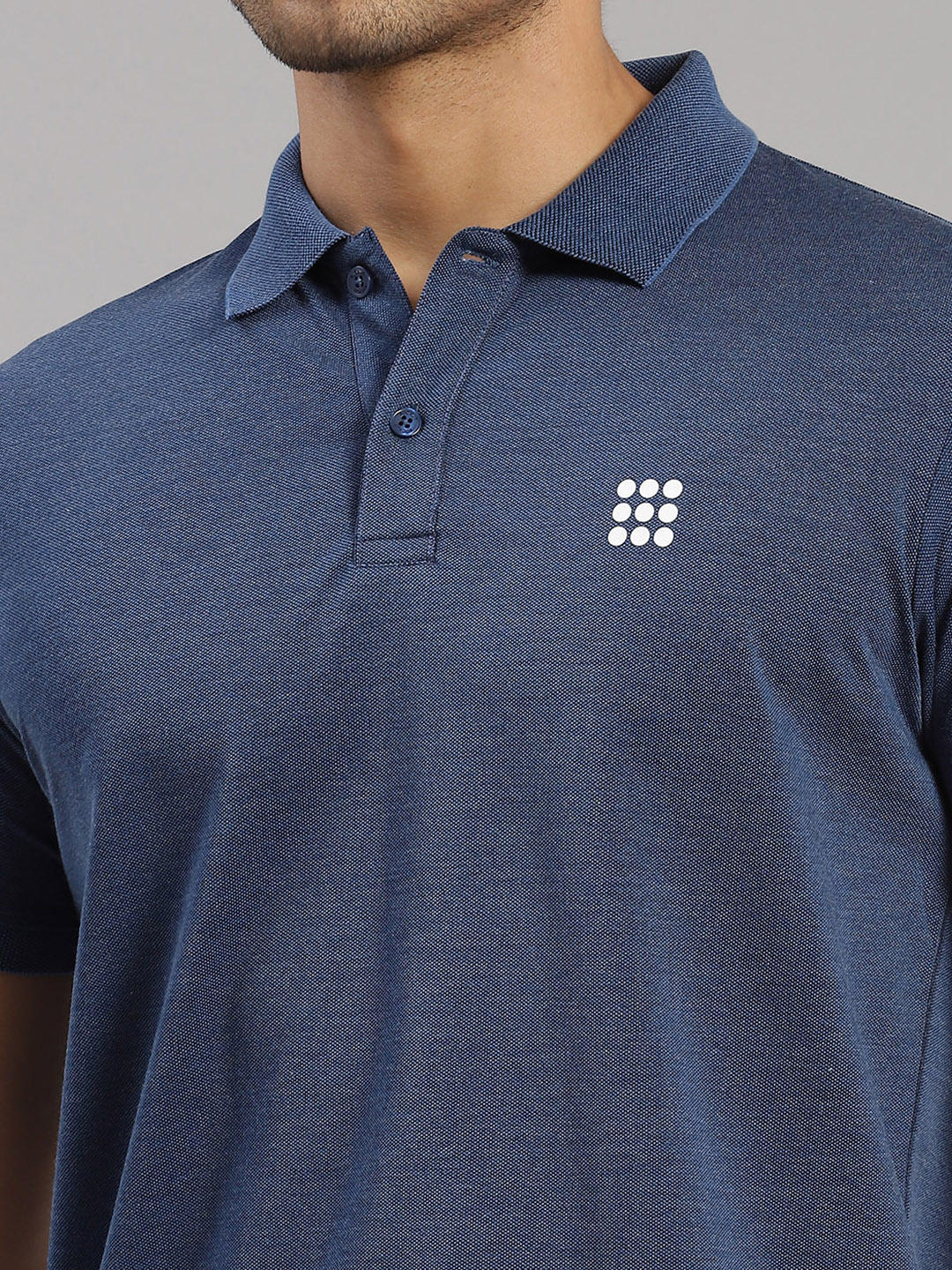 - Men Cotton Blend Blue Melange Solid Collar T-Shirt