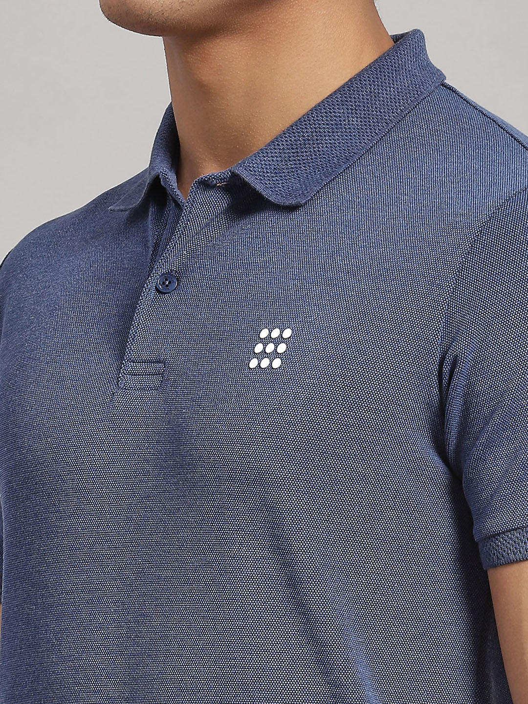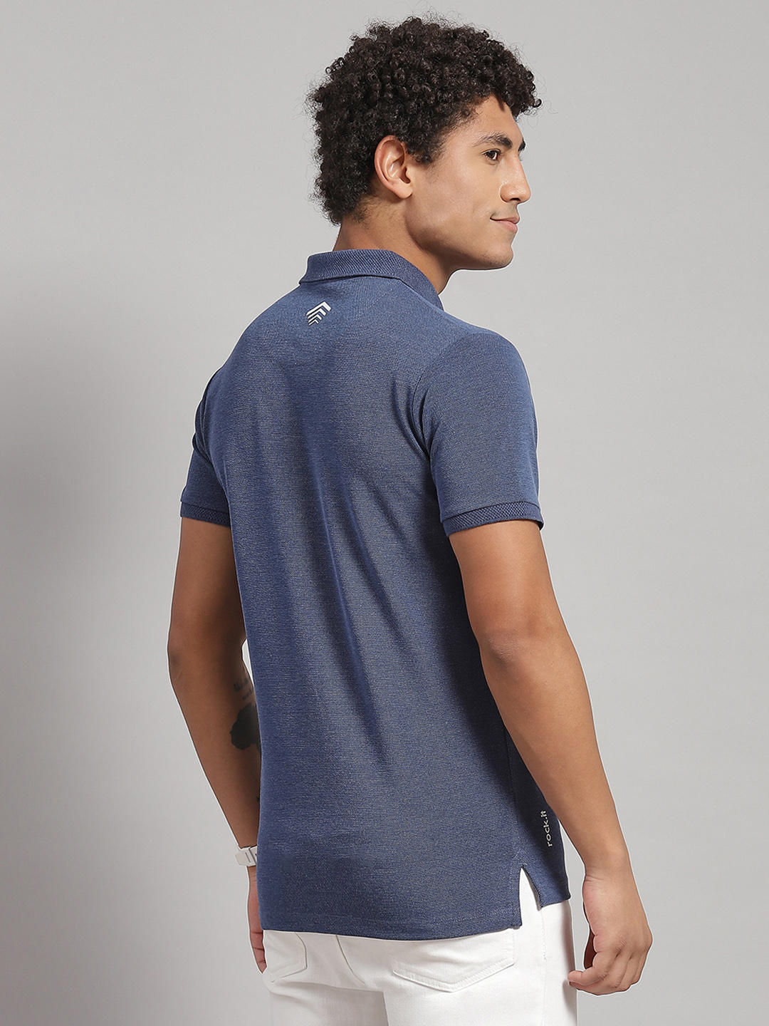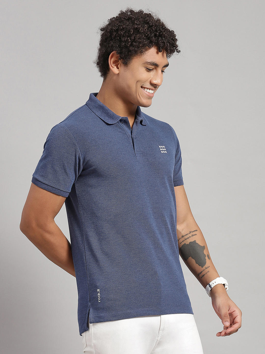 - Men Cotton Blend Blue Melange Solid T-Shirt