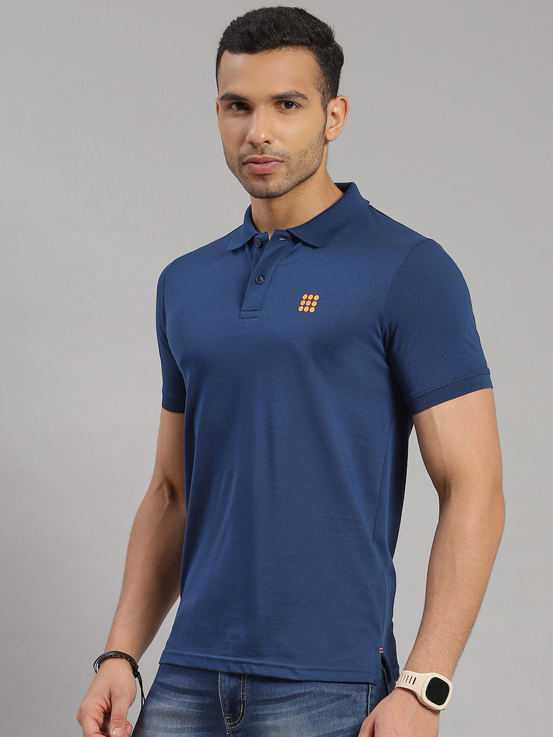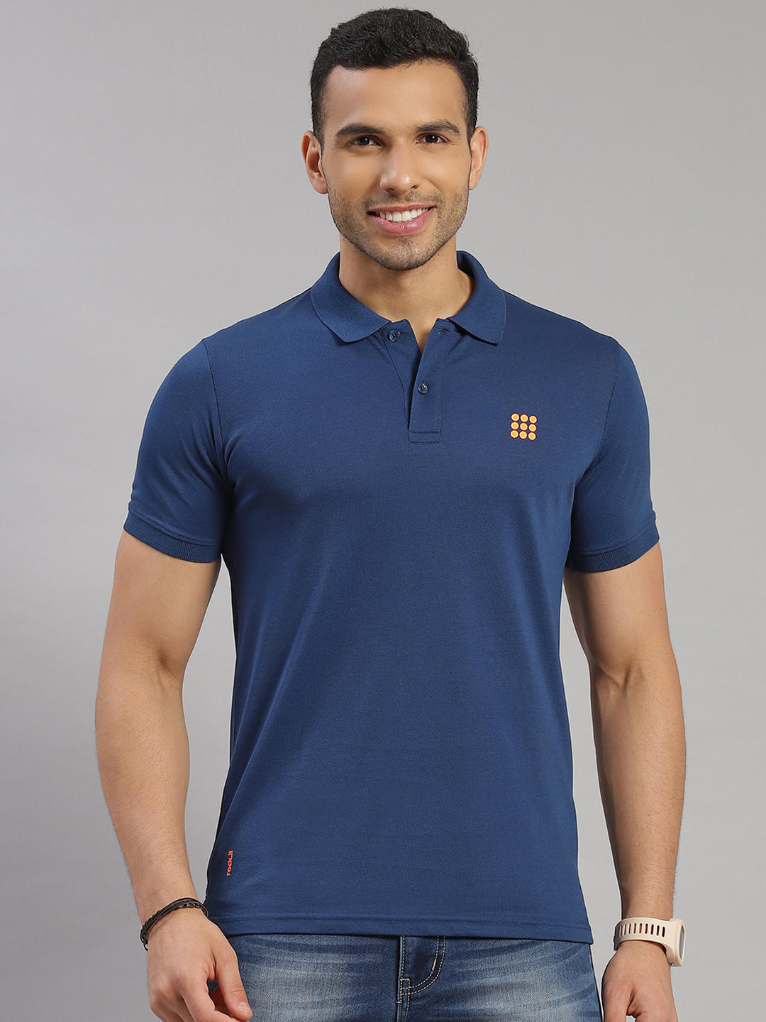 - Men Cotton Blend Denim Solid Collar T-Shirt