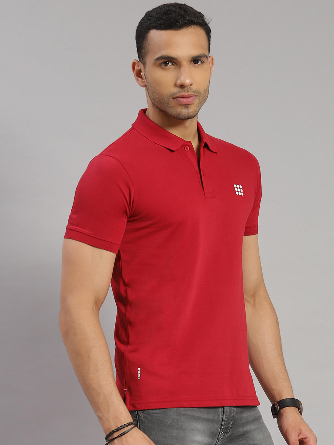 - Men Cotton Blend Maroon Solid Collar T-Shirt