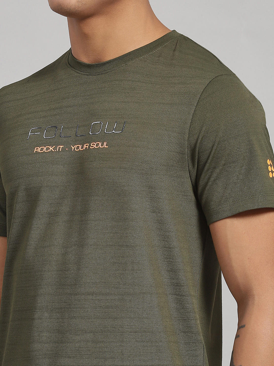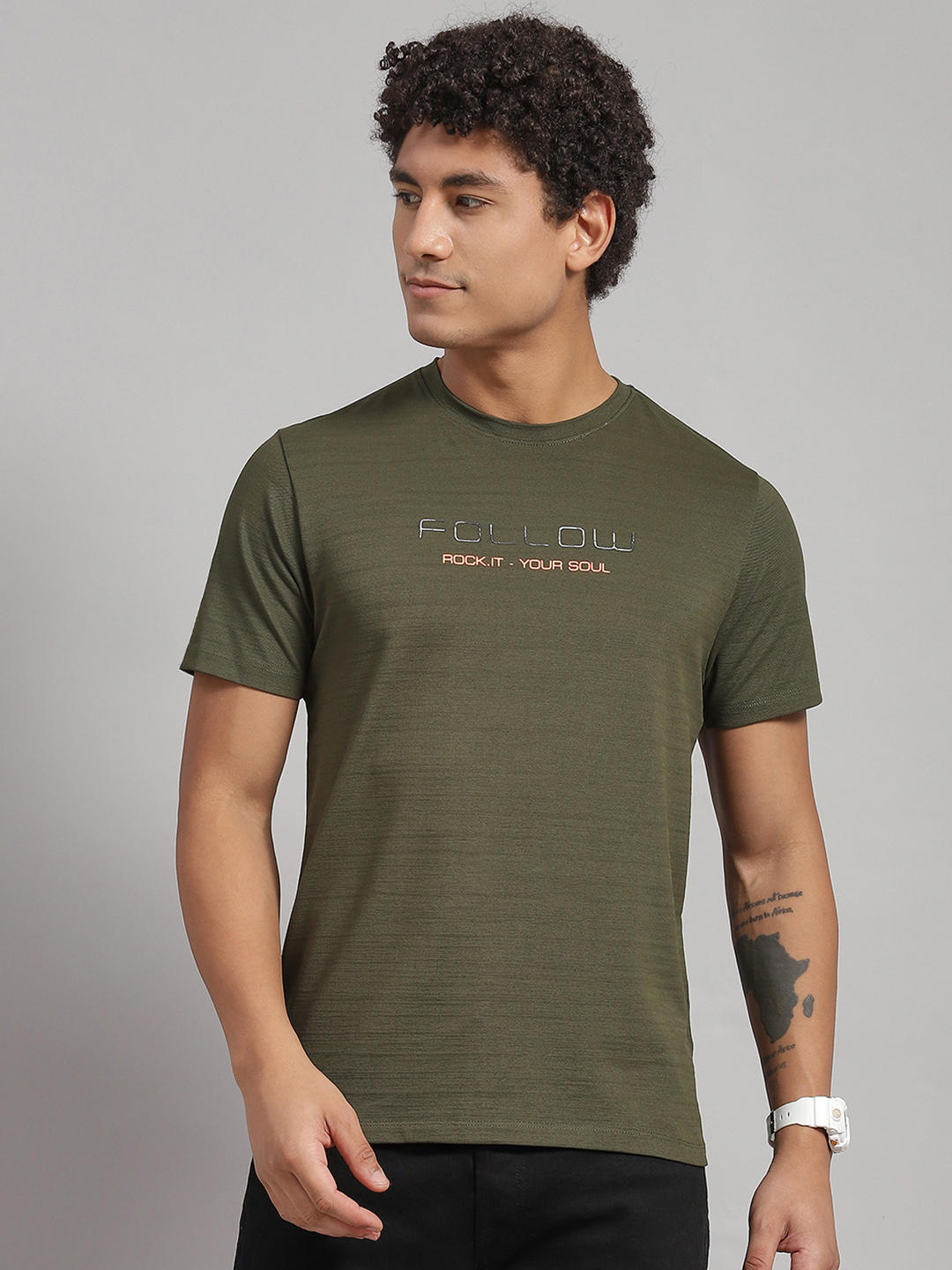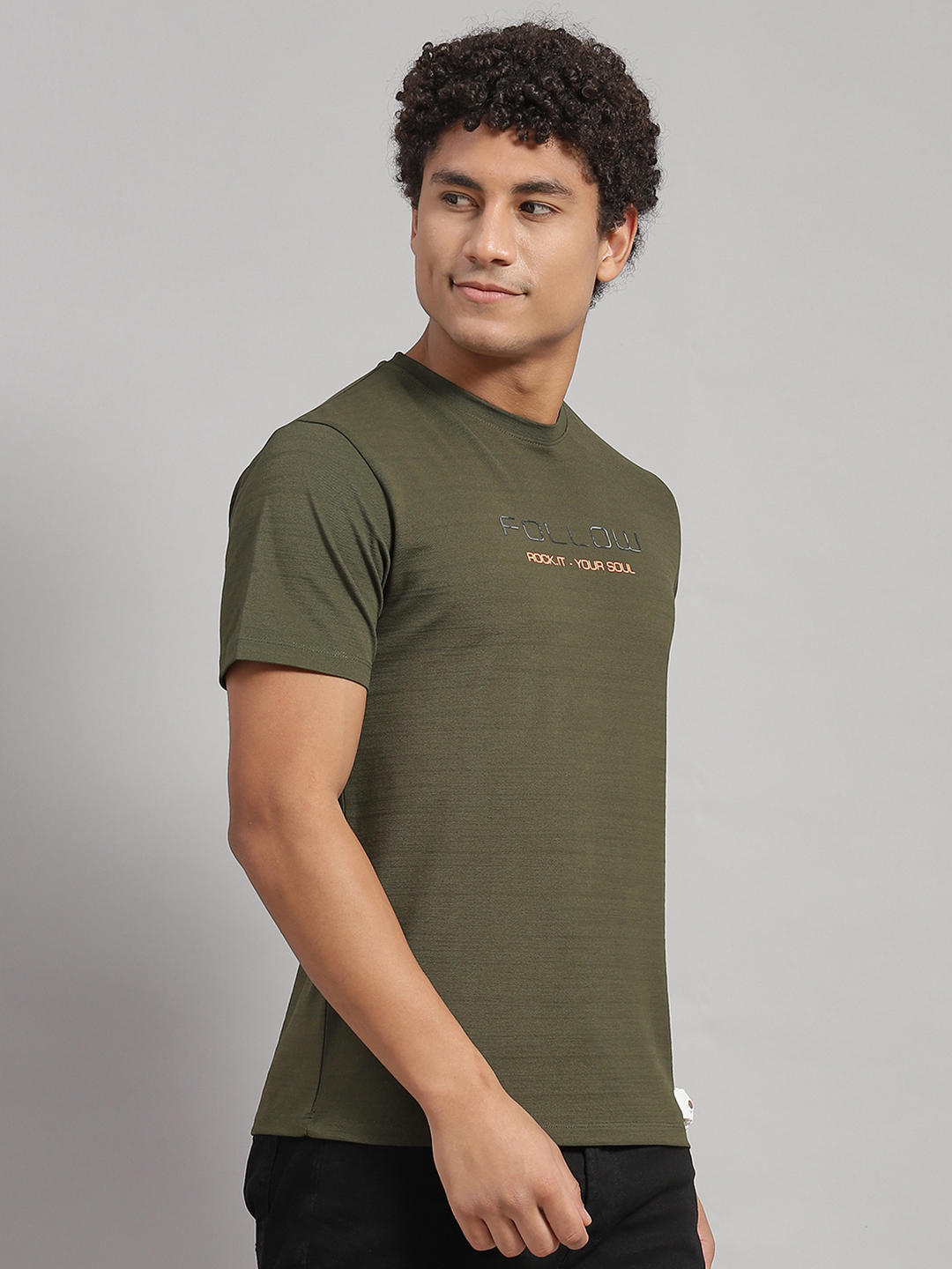 - Men Cotton Blend Olive Printed T-Shirt