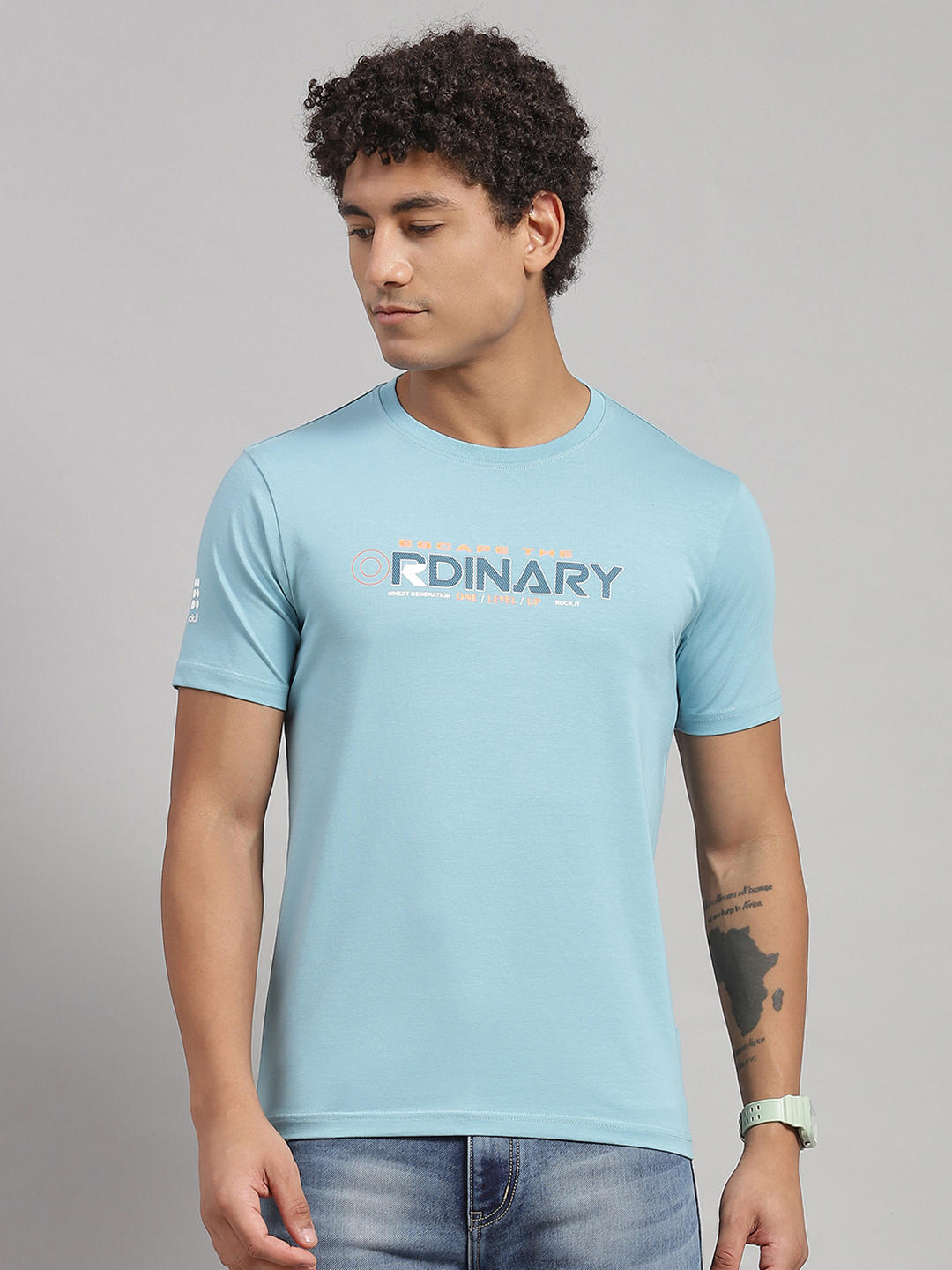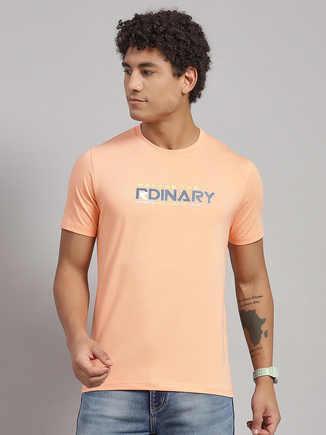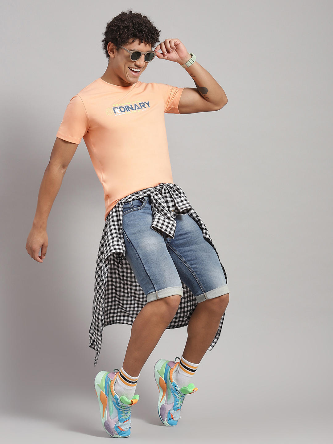 - Men Cotton Blend Peach/Teal Printed T-Shirt 2 Pc Set