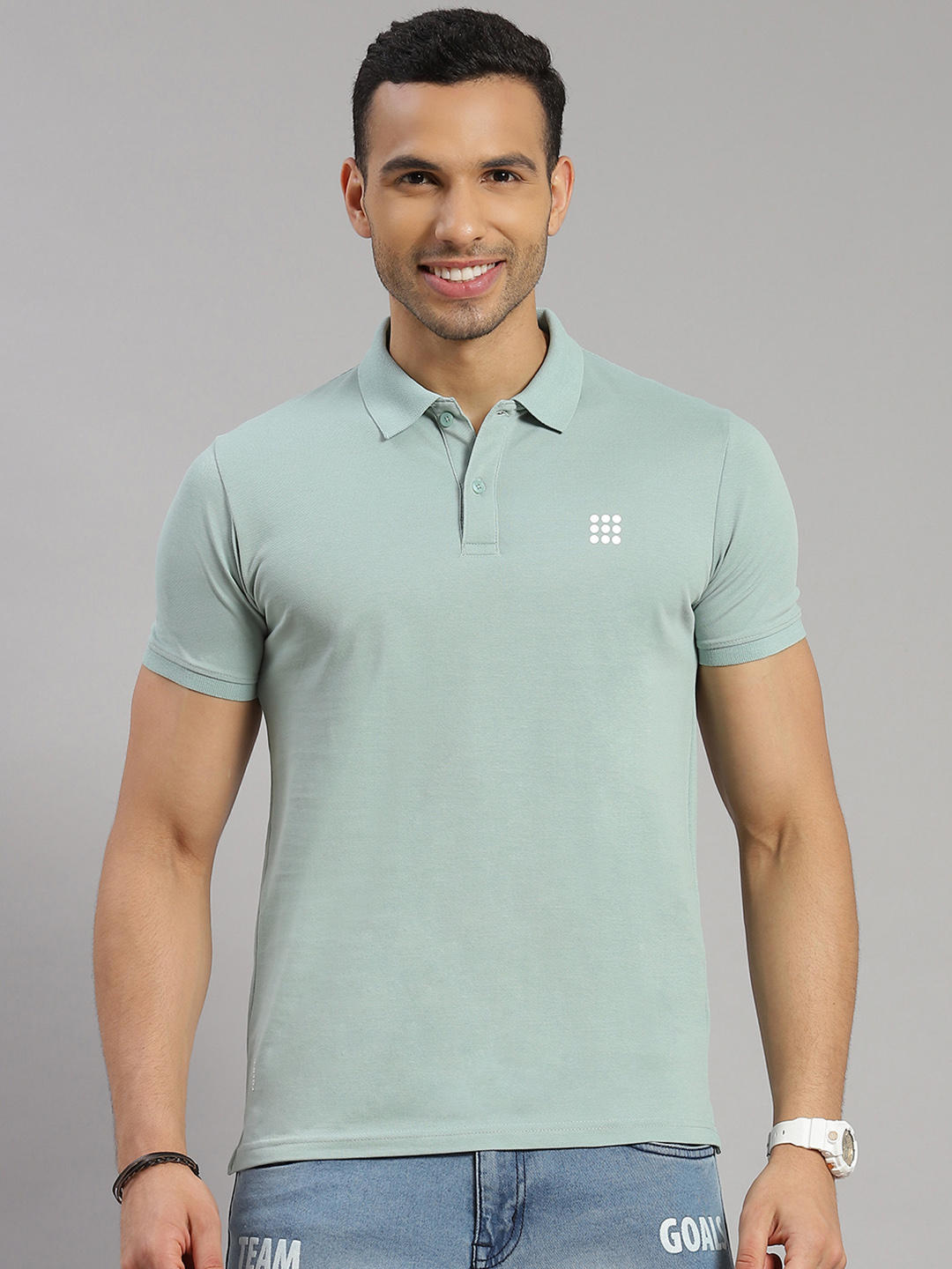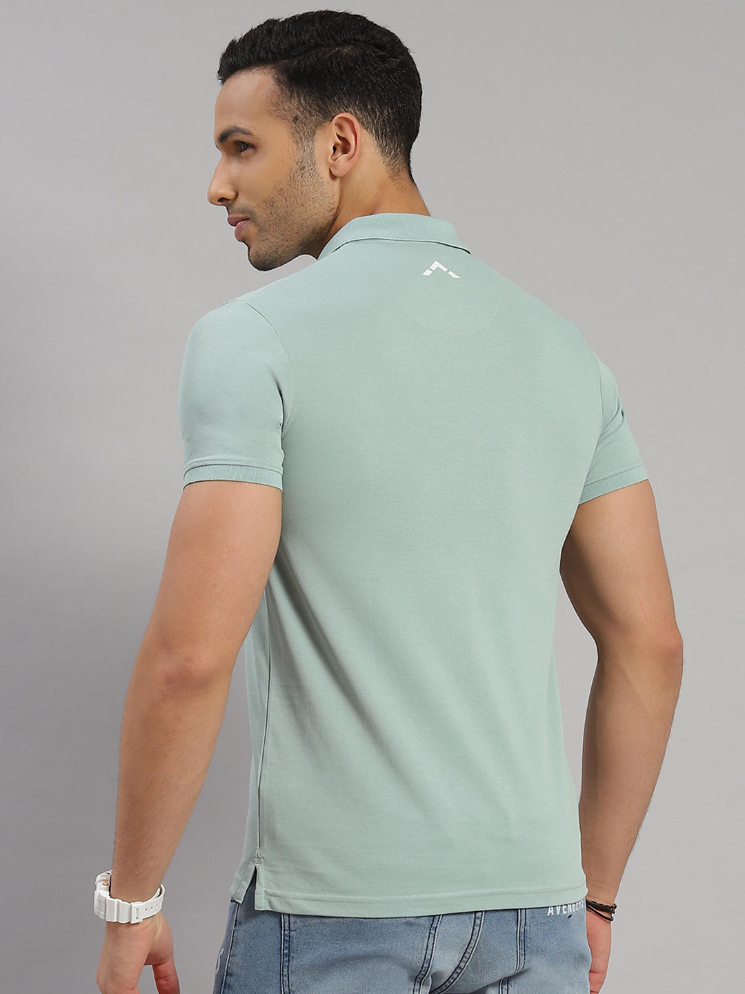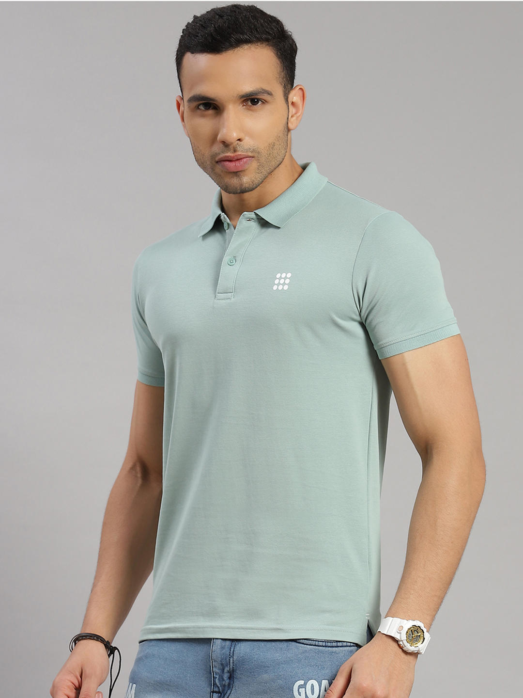 - Men Cotton Blend Sea Green Solid Collar T-Shirt