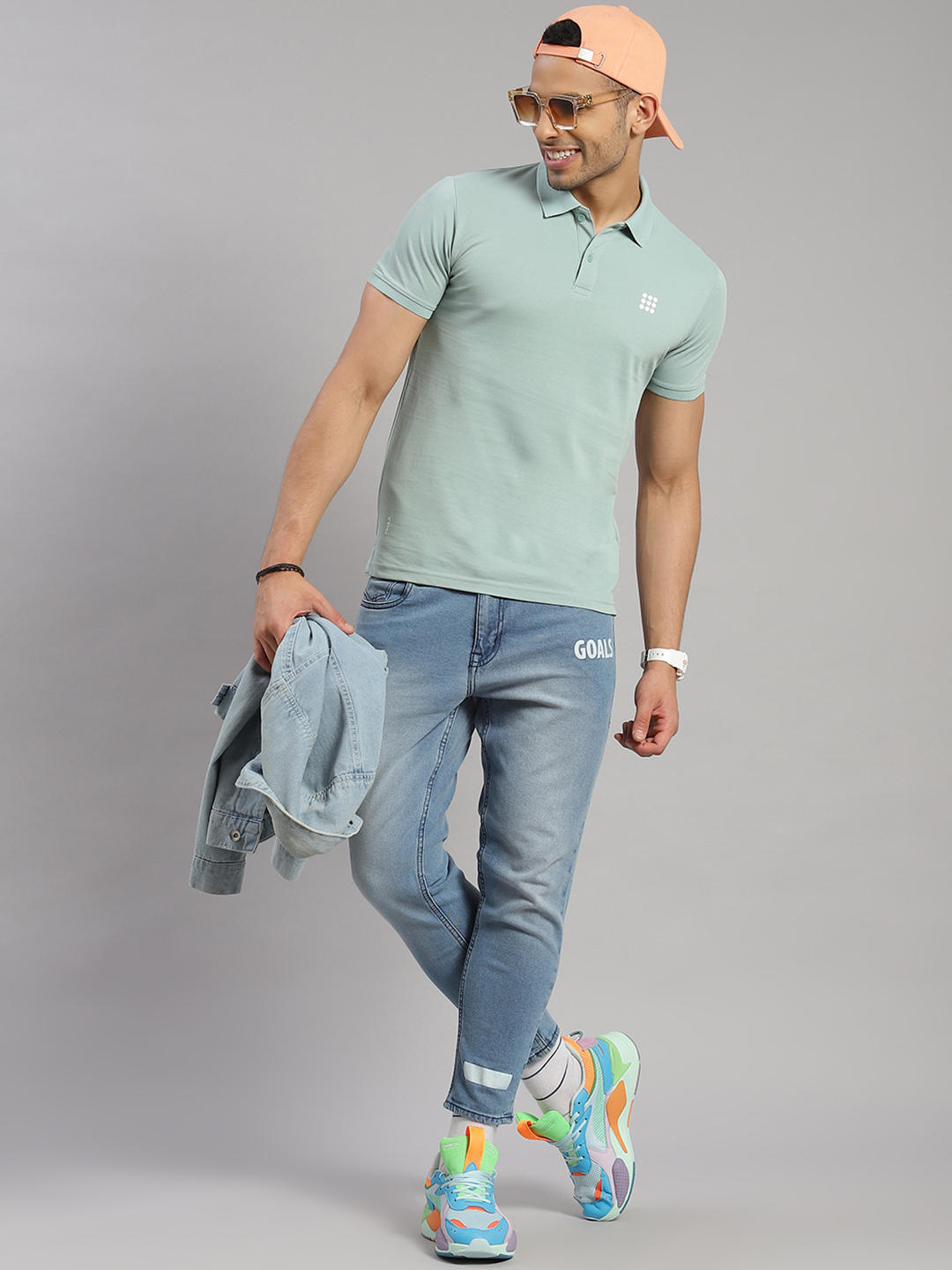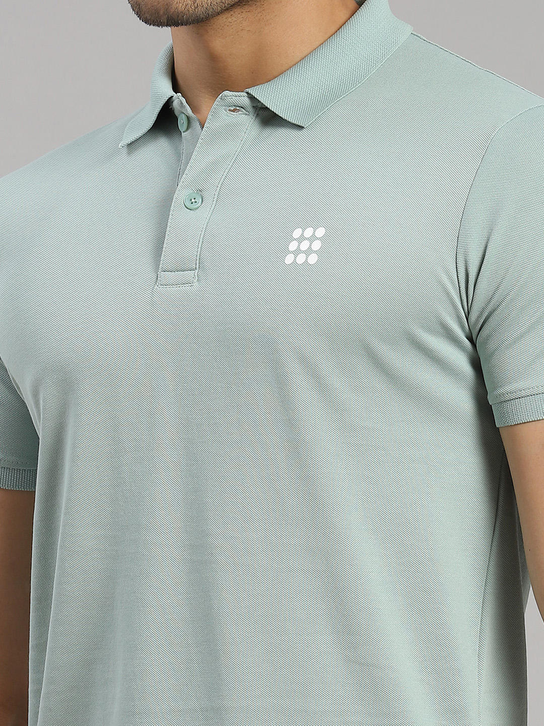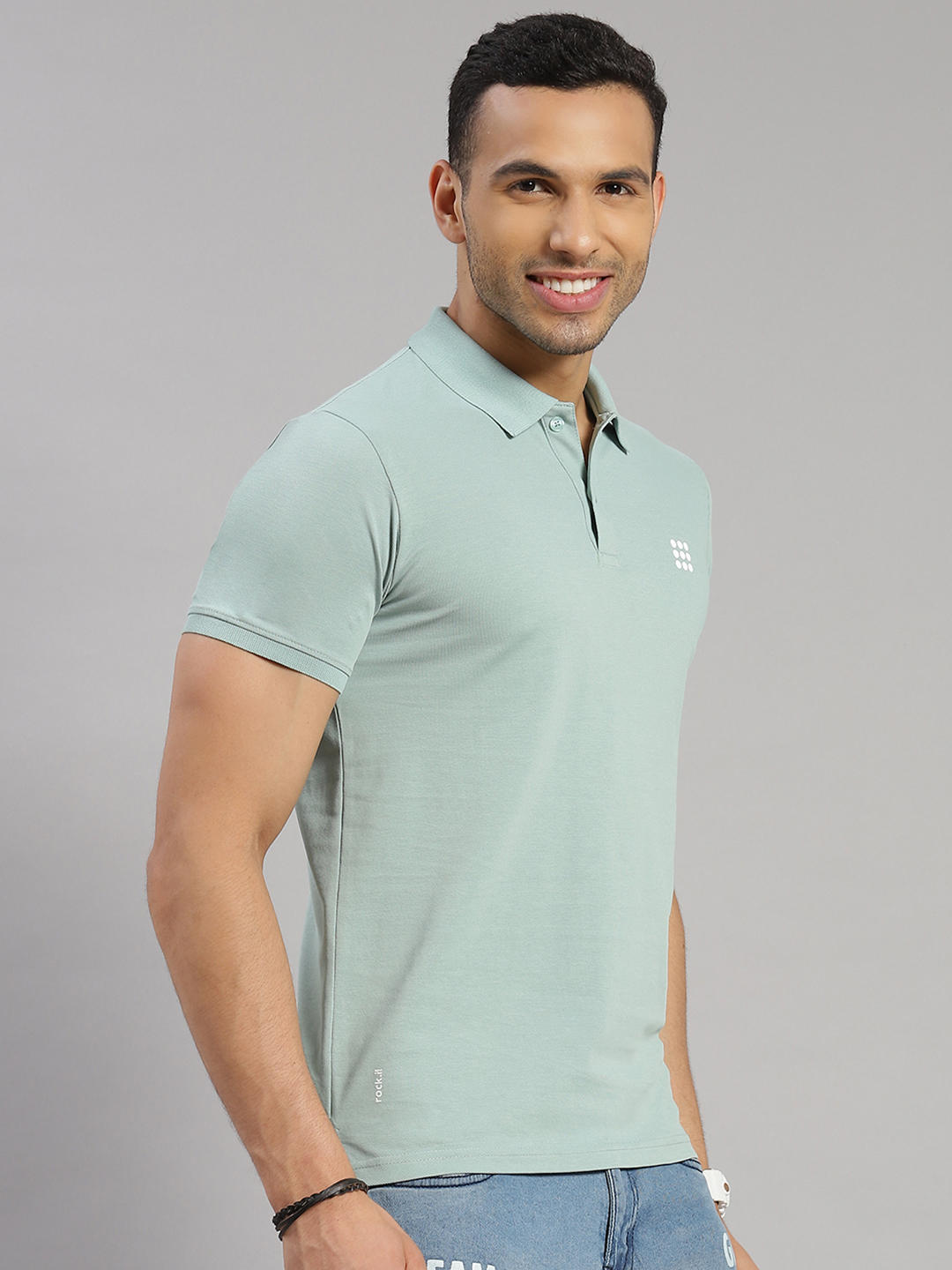 - Men Cotton Blend Sea Green Solid Collar T-Shirt