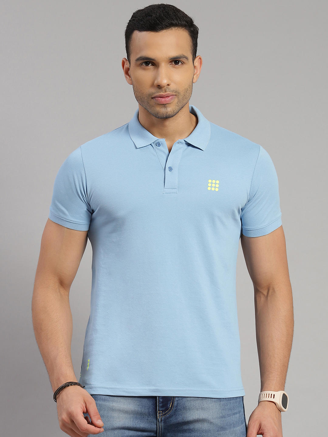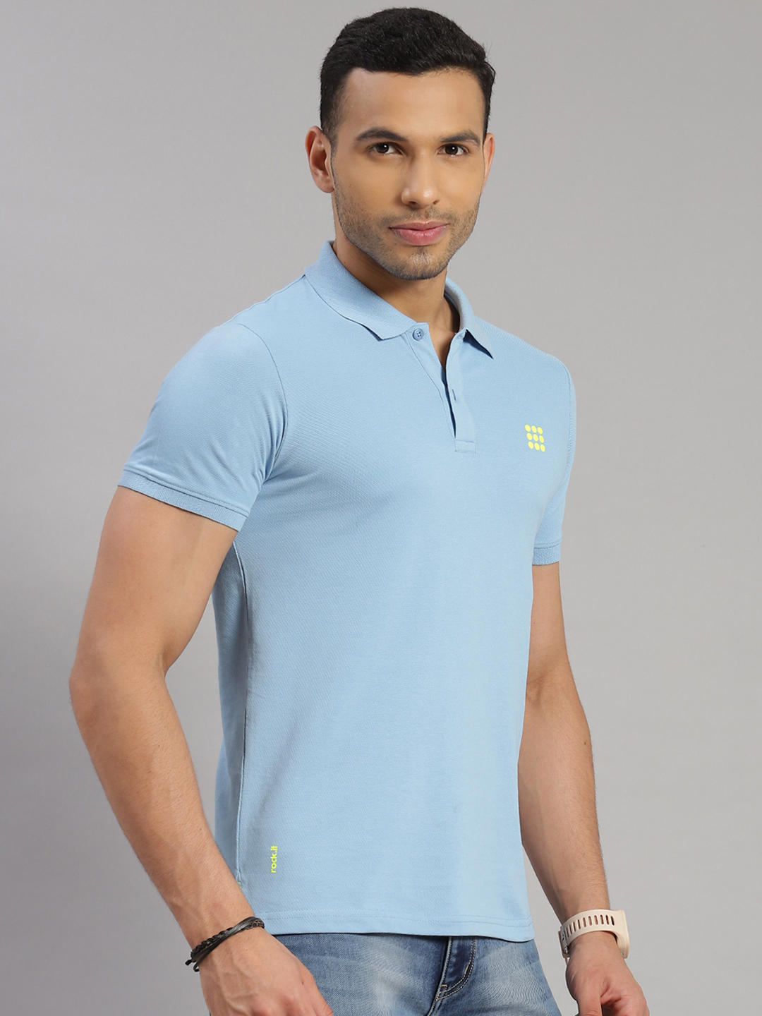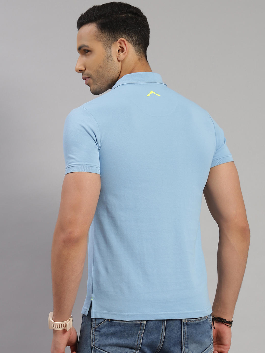 - Men Cotton Blend Sky Blue Solid Collar T-Shirt