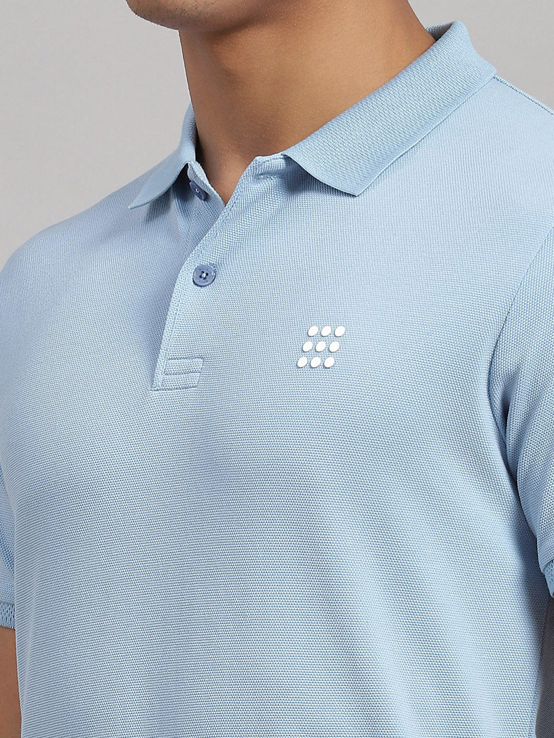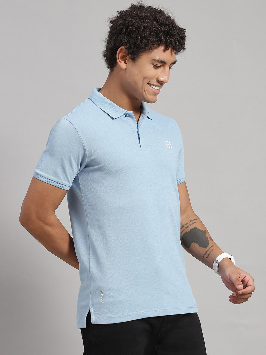- Men Cotton Blend Sky Blue Solid T-Shirt