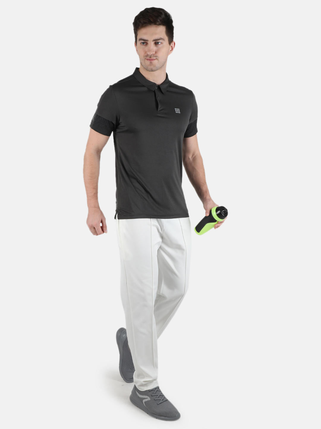 - Men Grey Collar Regular Fit Half Sleeve T-Shirt