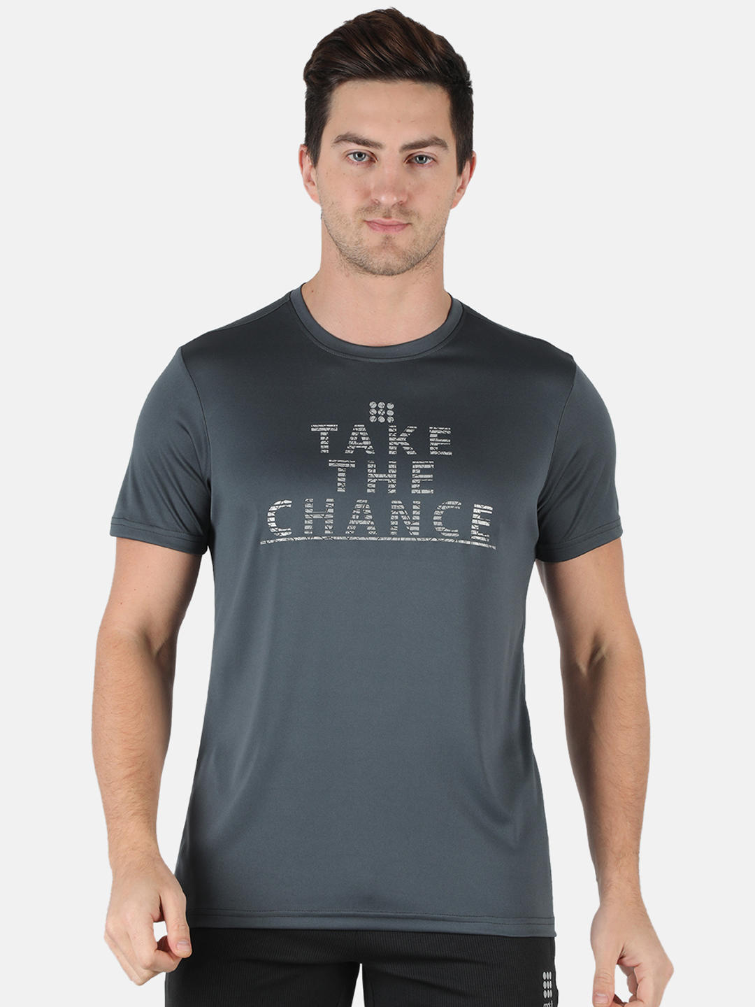 Men Grey Round Neck Regular Fit Half Sleeve T-shirt