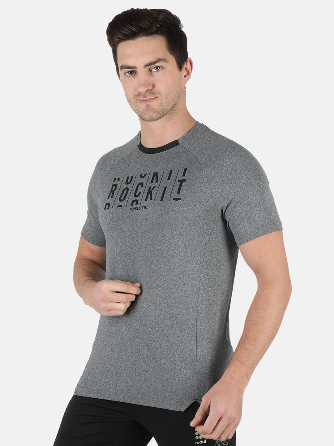 Men Grey Round Neck Smart Fit Half Sleeve T-shirt