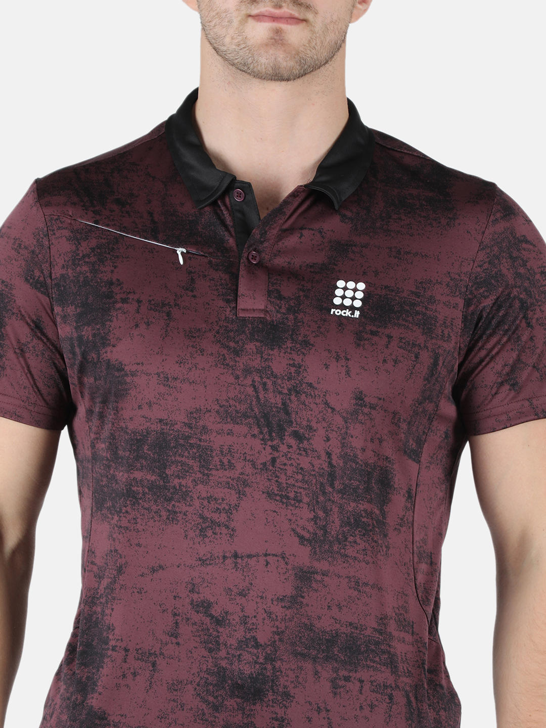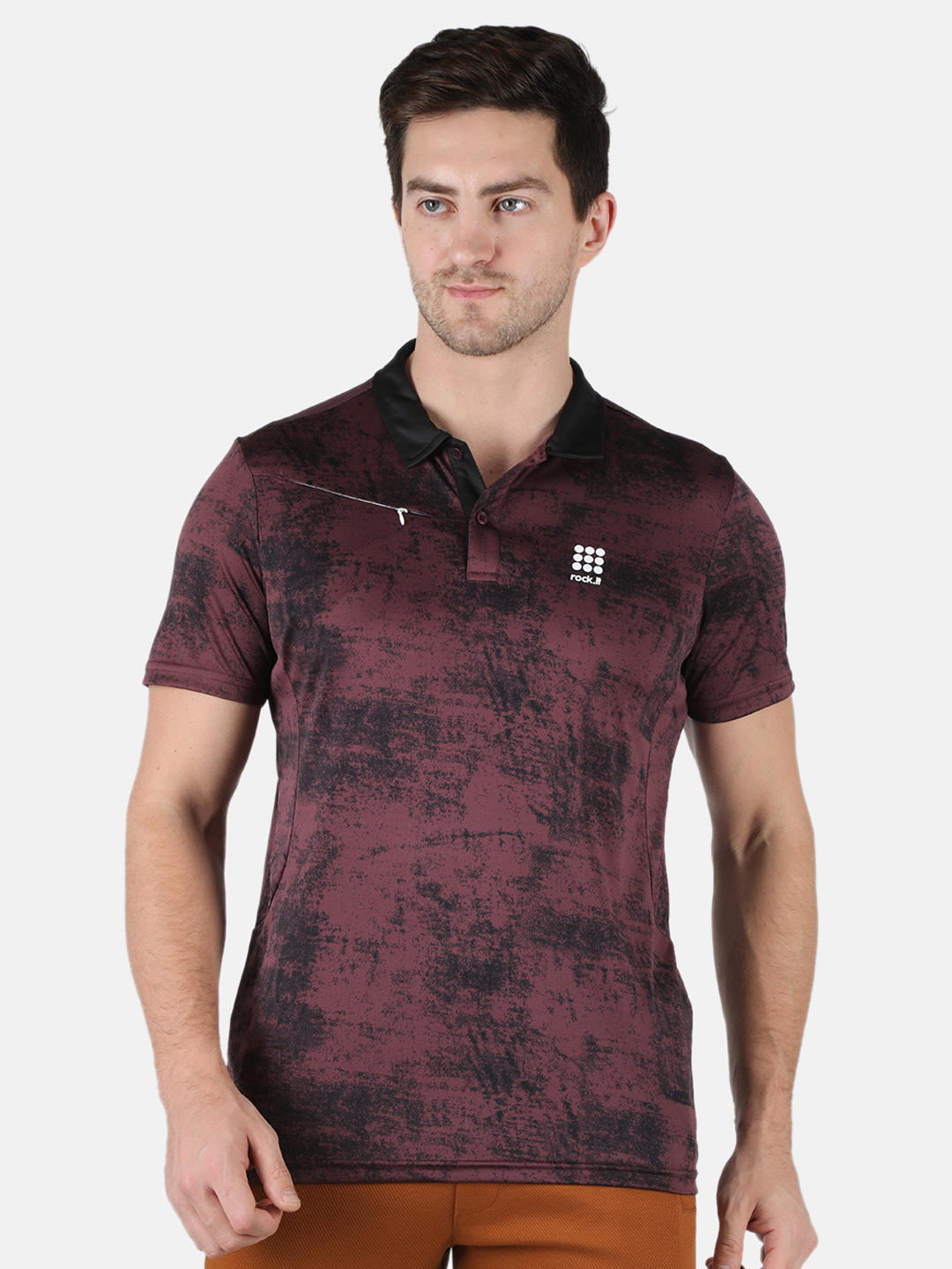 - Men Maroon Collar Smart Fit Half Sleeve T-Shirt