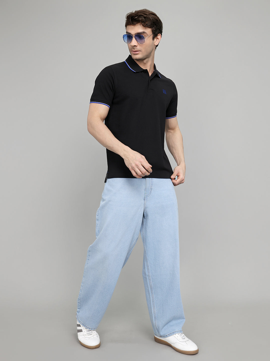 - Men Black Self Design Collar Half Sleeve T-Shirt