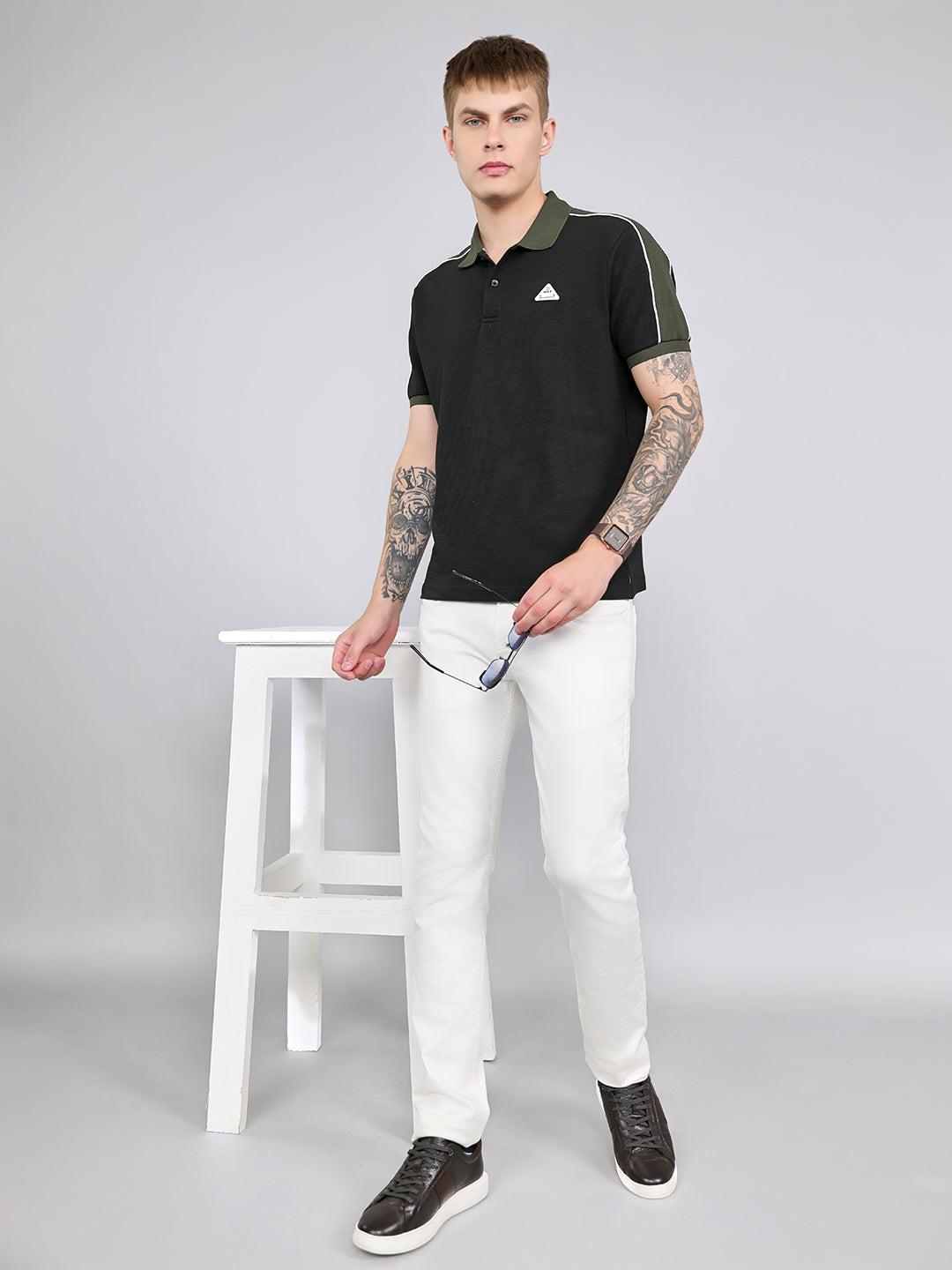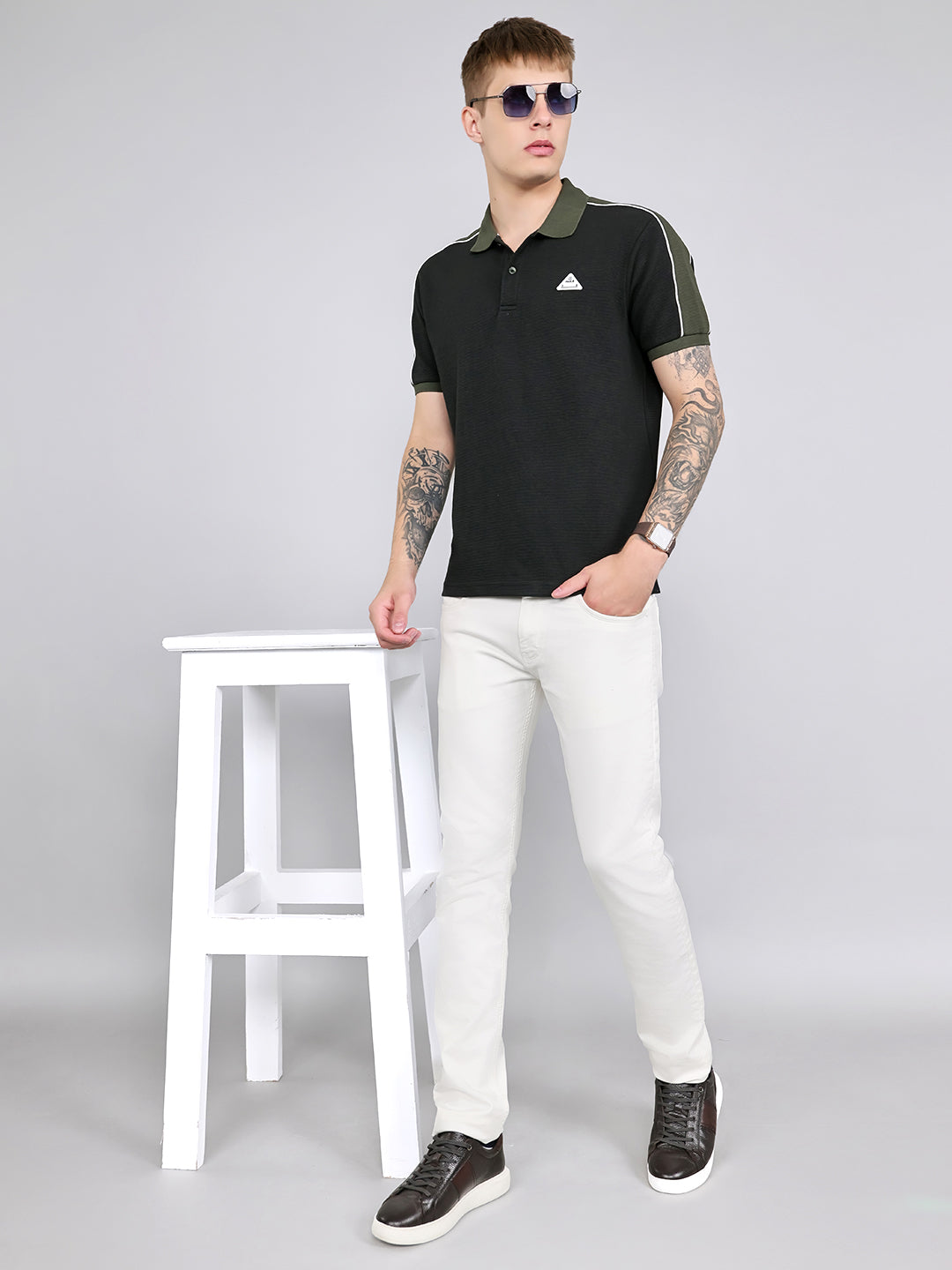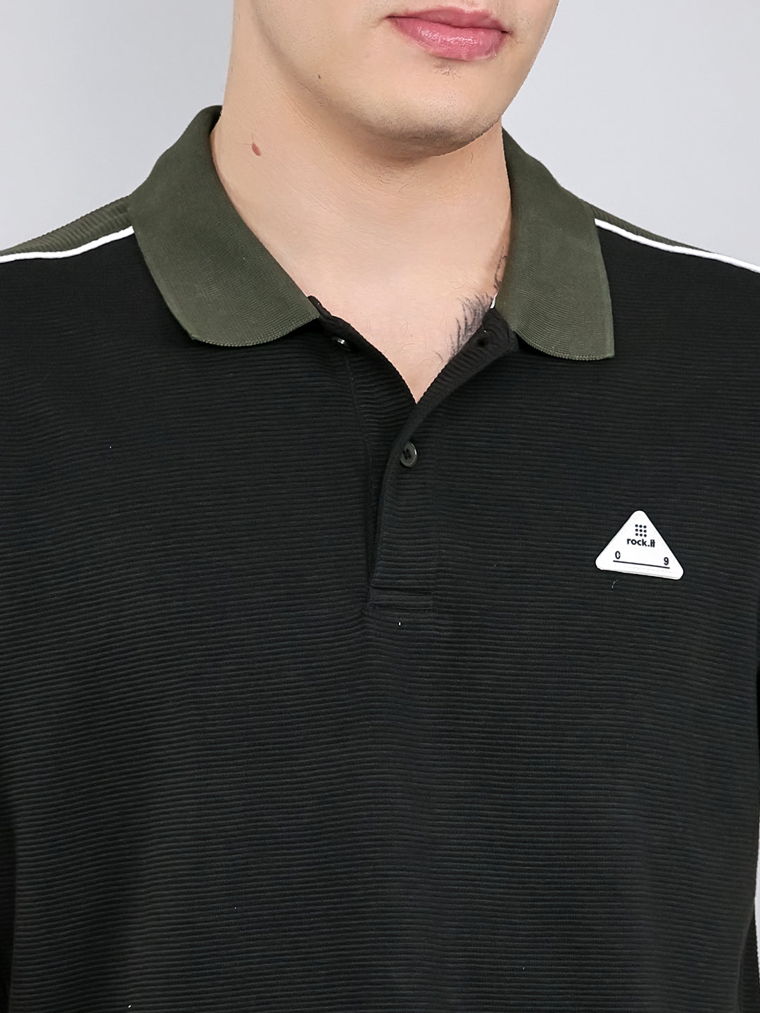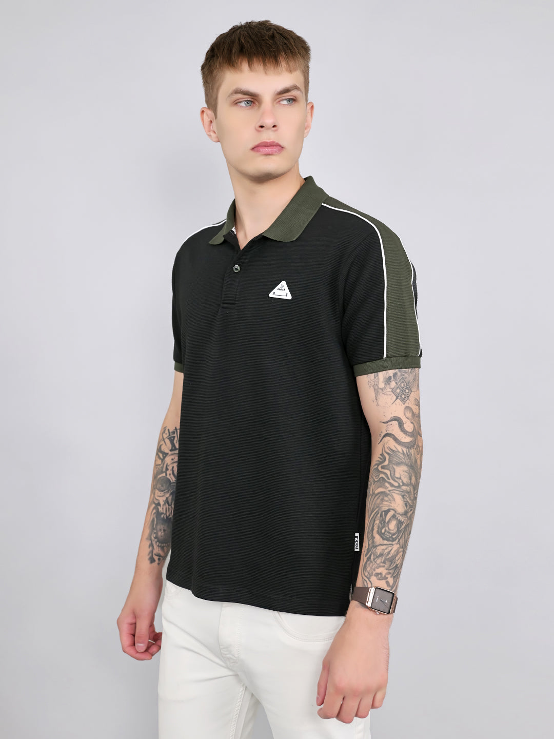 - Men Black Self Design Collar Half Sleeve T-Shirt