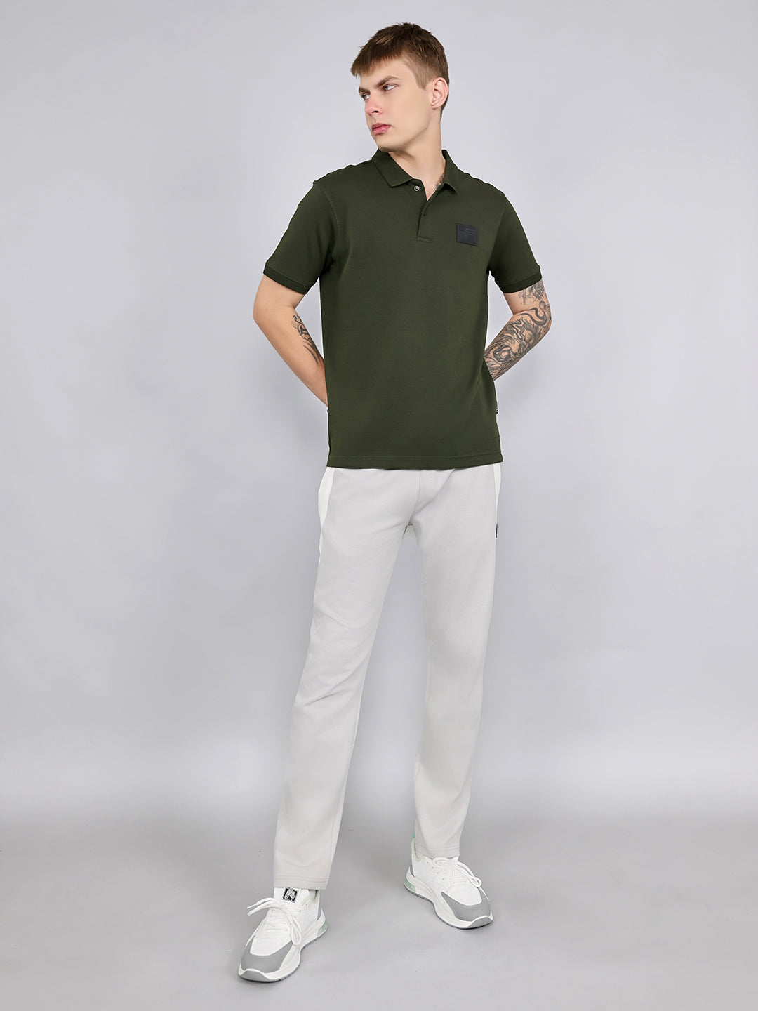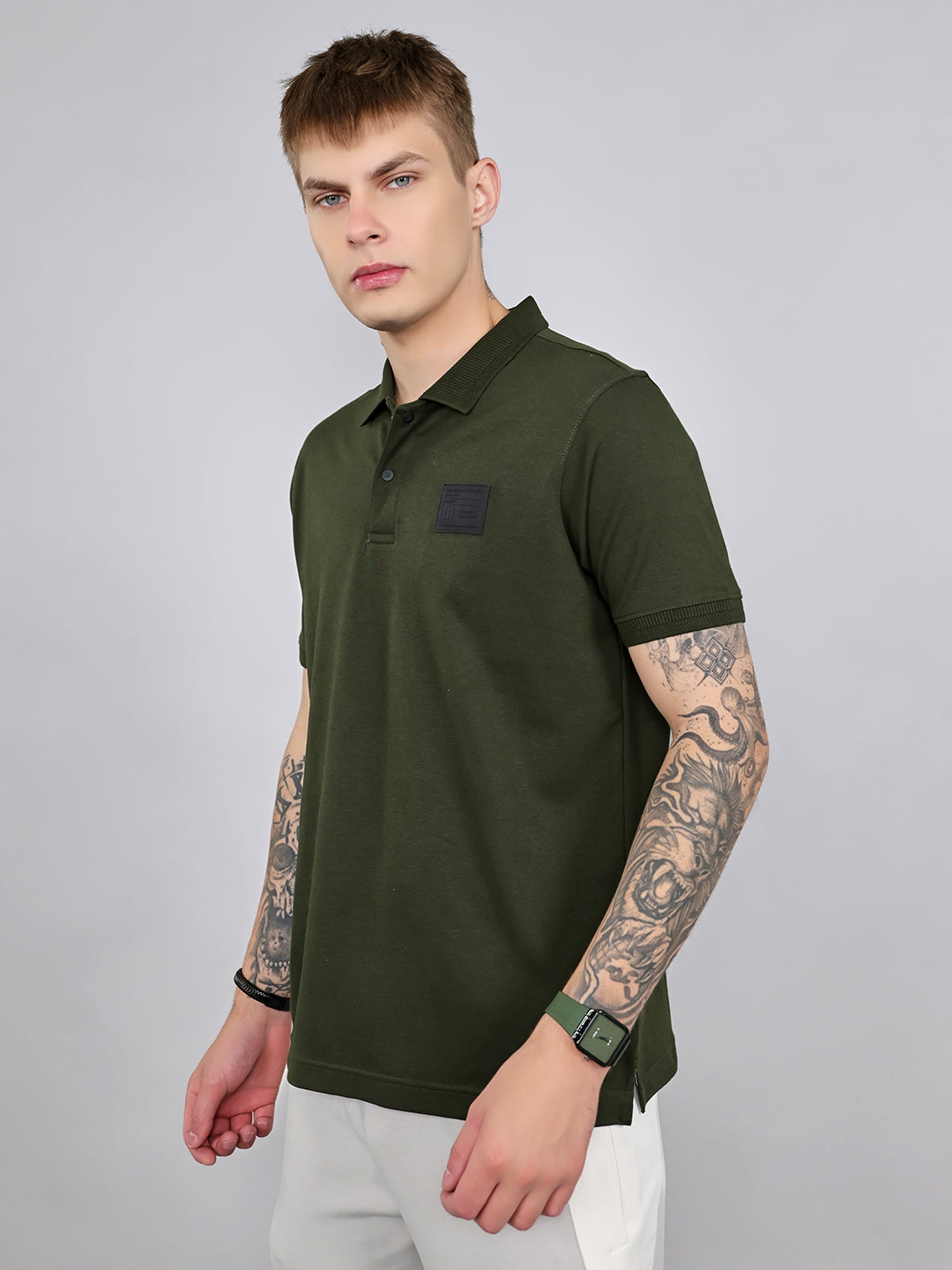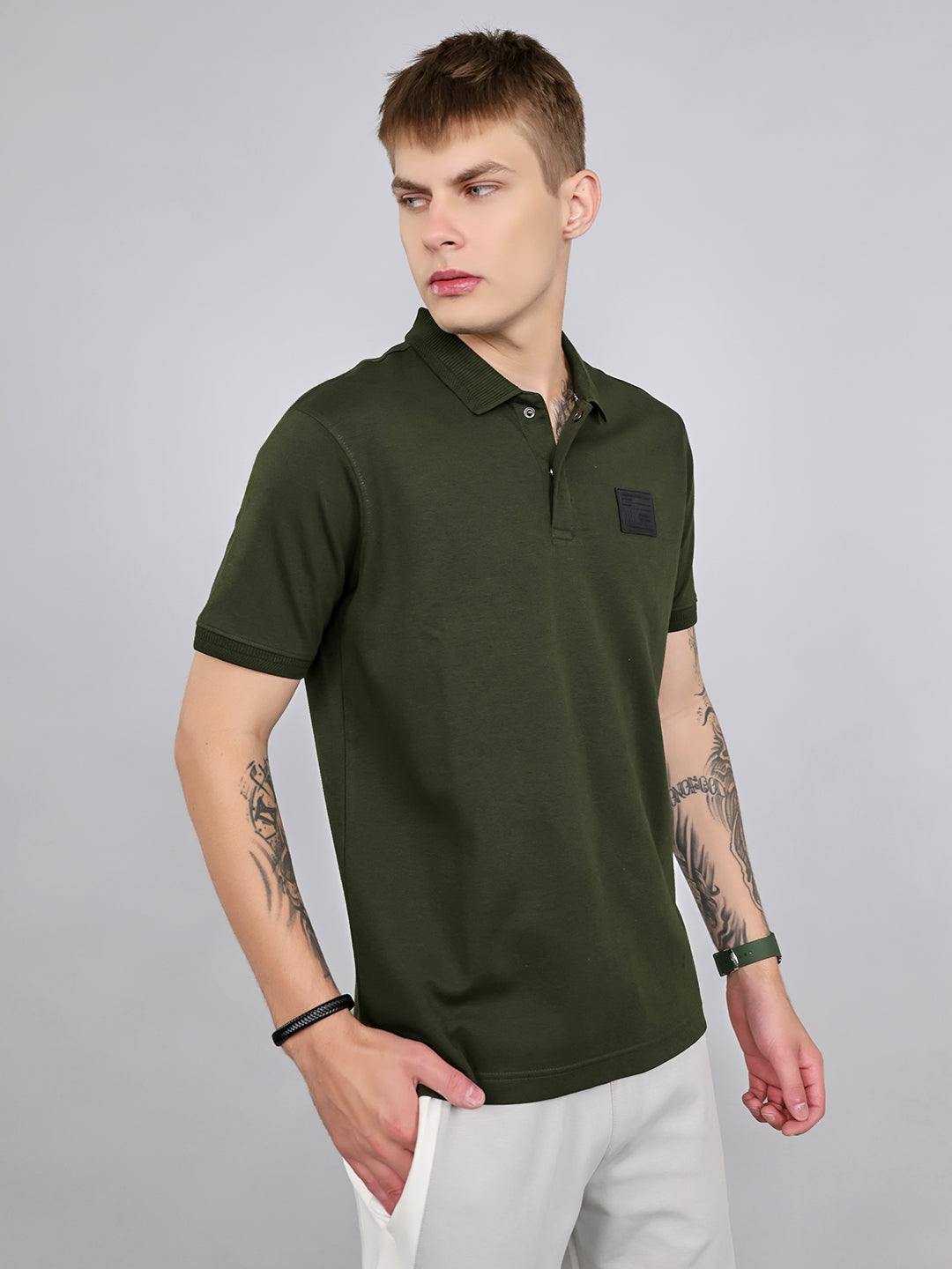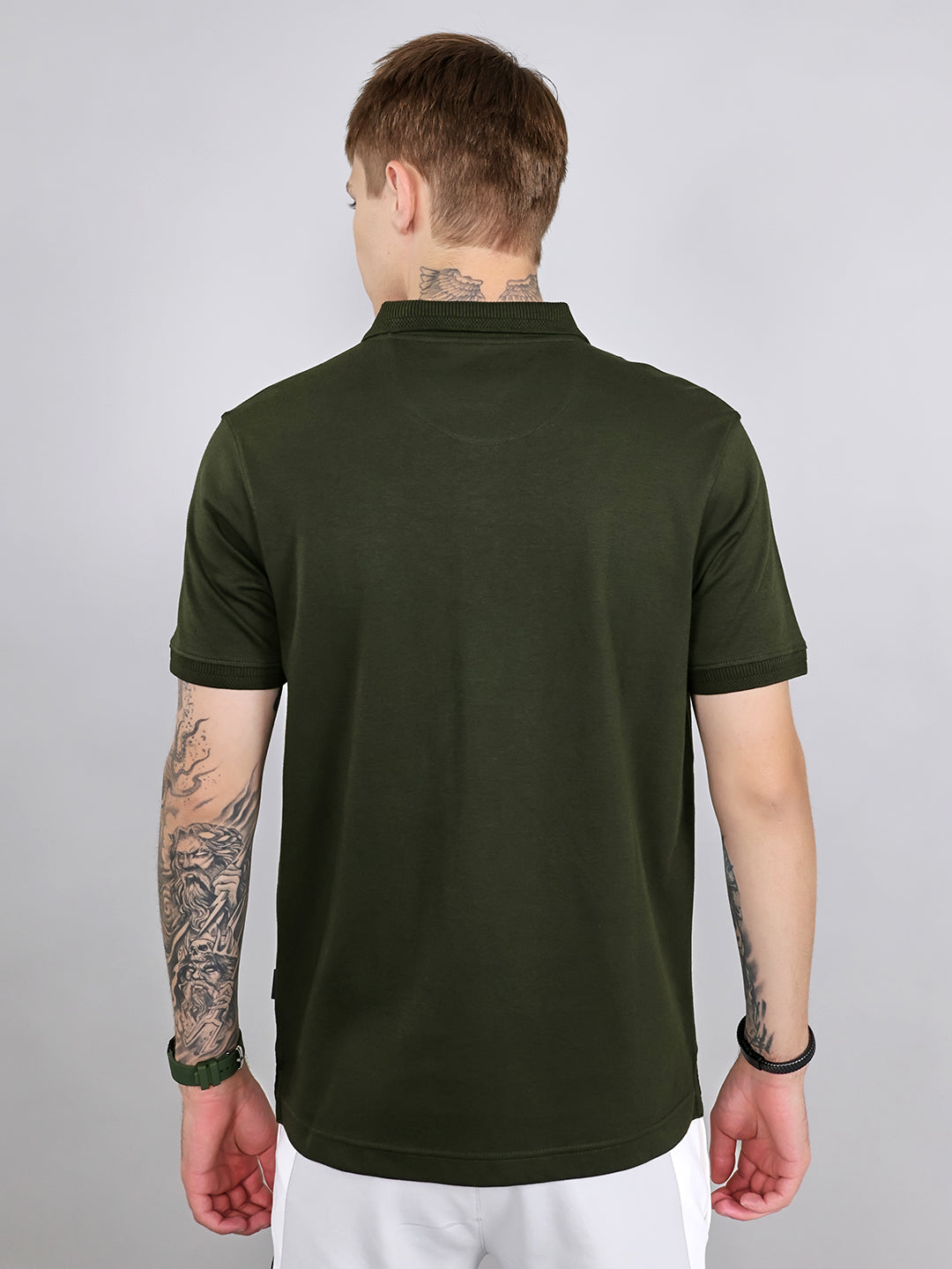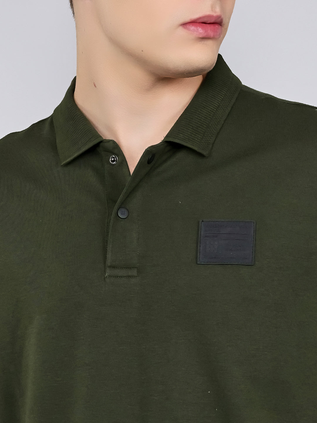 - Men Olive Solid Collar Half Sleeve T-Shirt